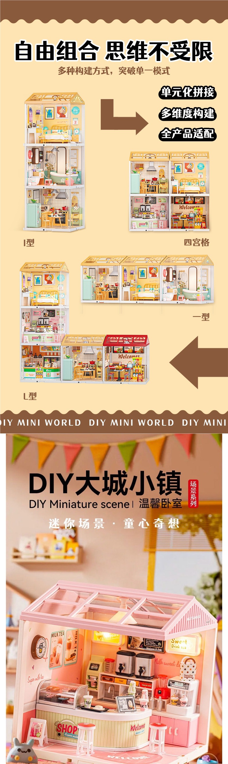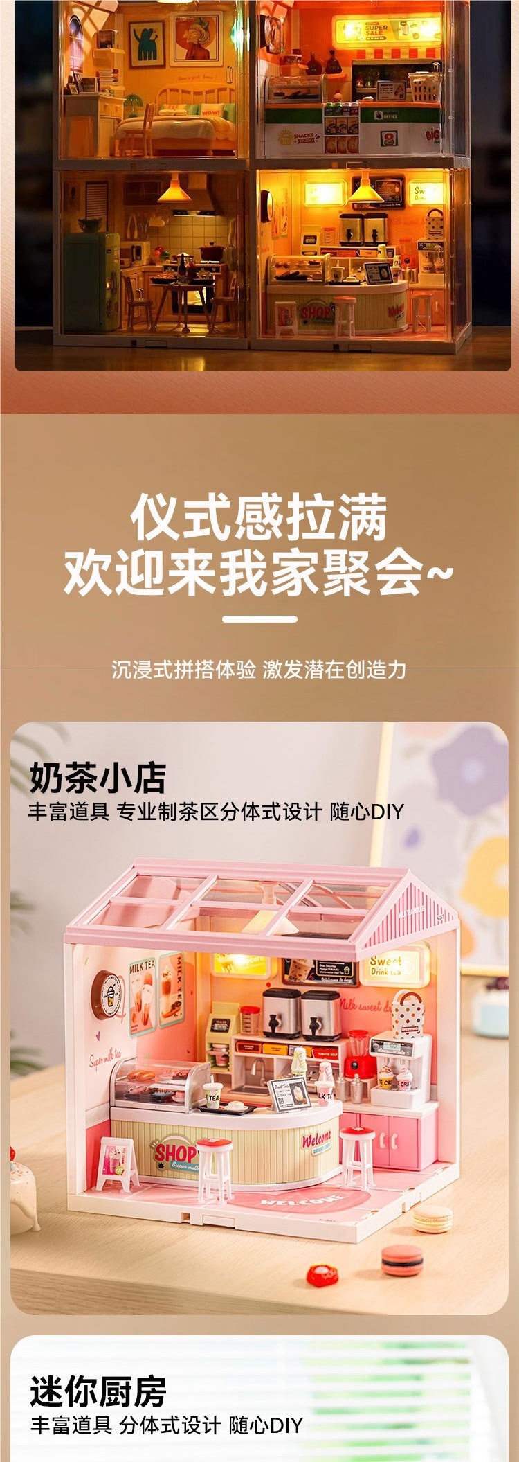 DIY 캐빈 빌라 손으로 조립한 미니 하우스 모델 세계 빌딩 블록 장난감 여성을위한 생일 선물스토어 가기