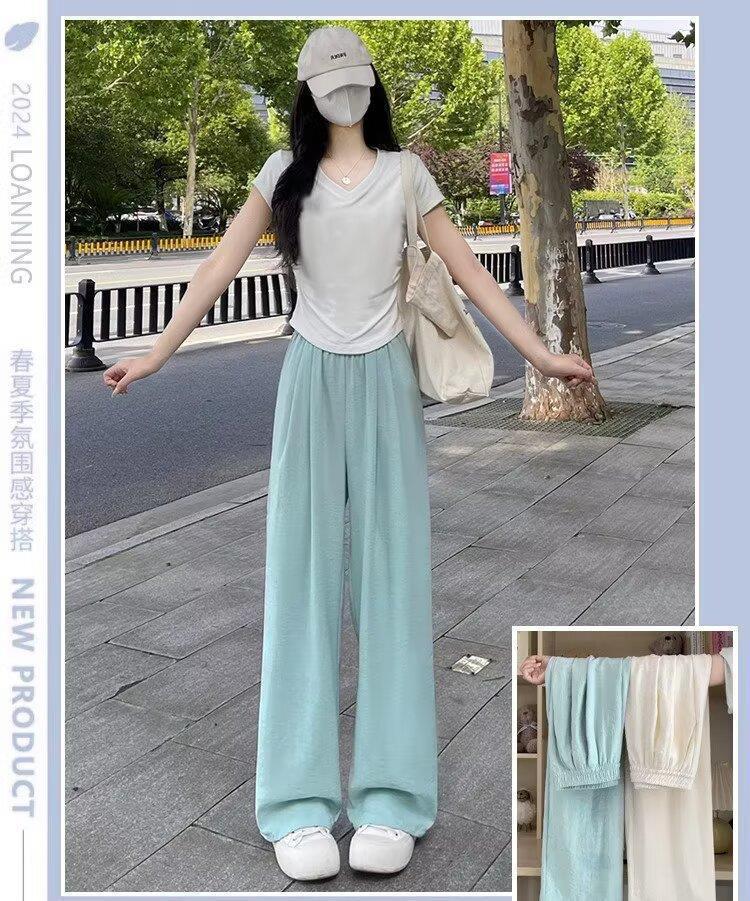 여아 바지 여름 얇은 도매 새로운 어린이 스트레이트 와이드 팬츠 아이스 실크 모기 방지 바지 여름 바지 큰 소녀를위한스토어 가기