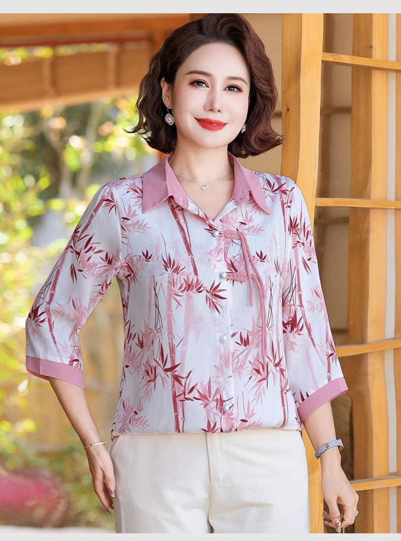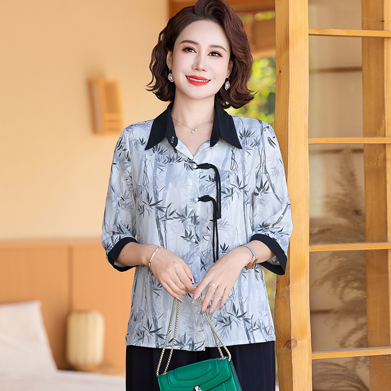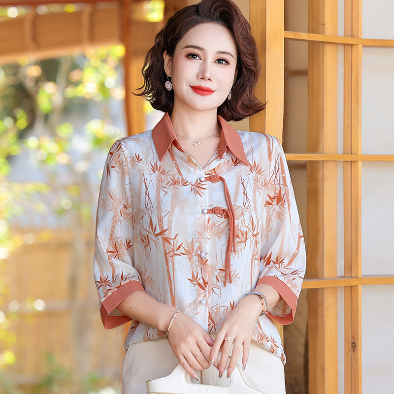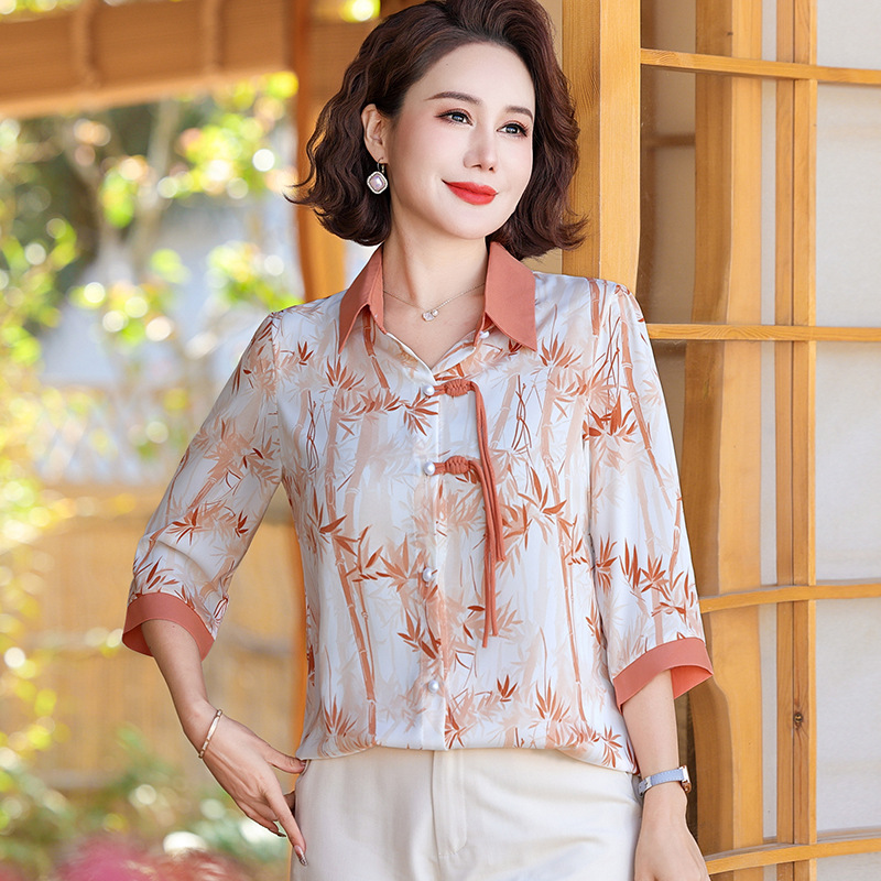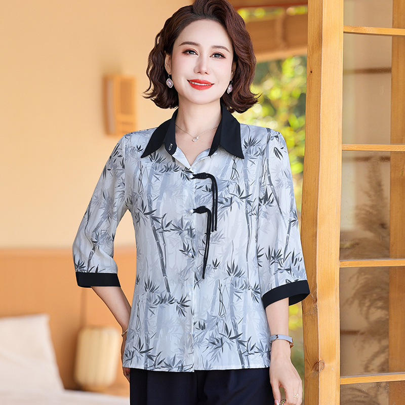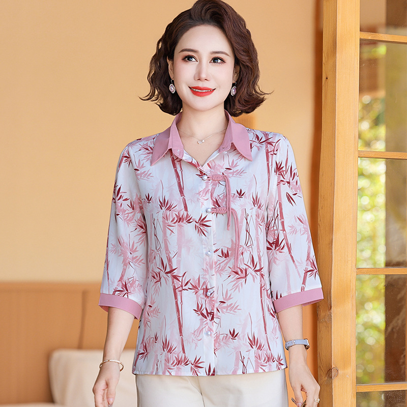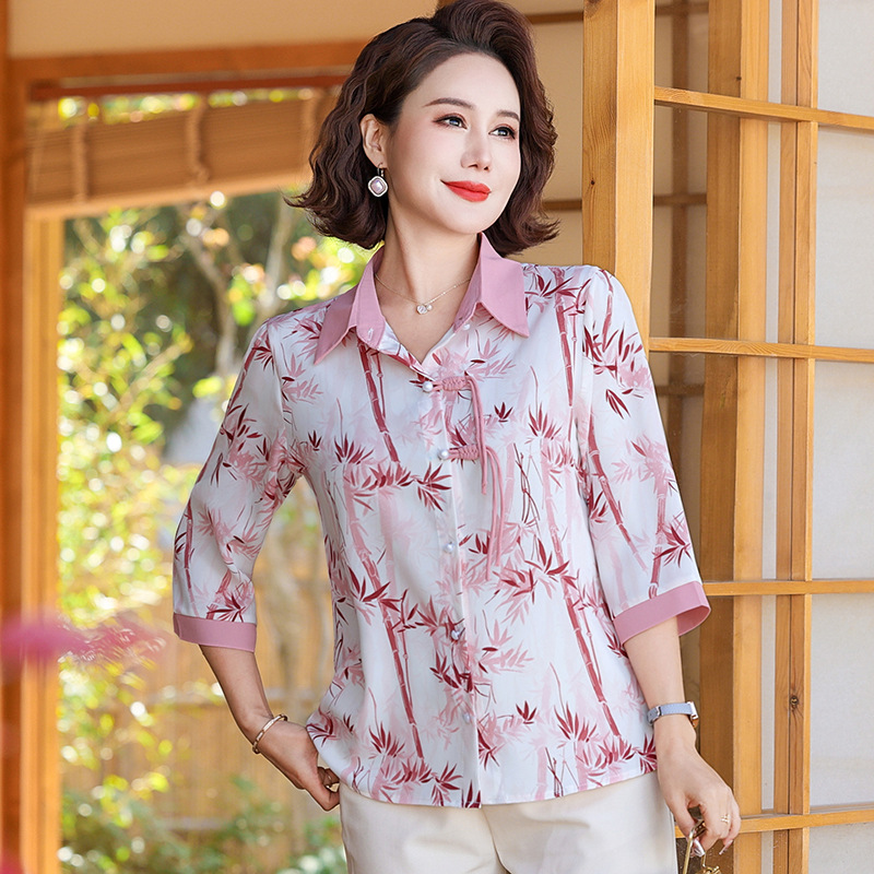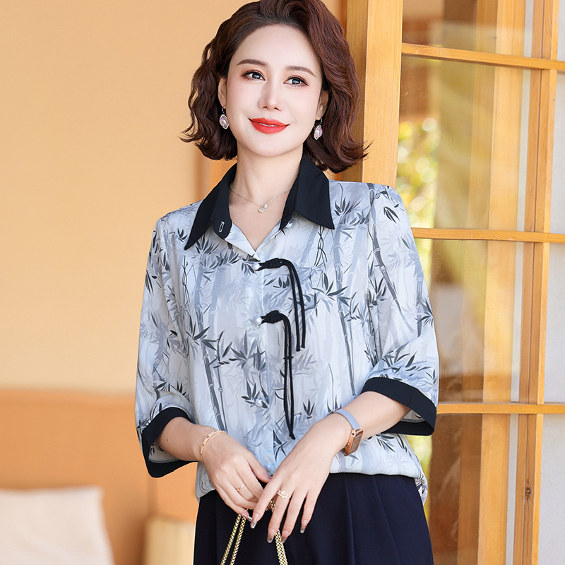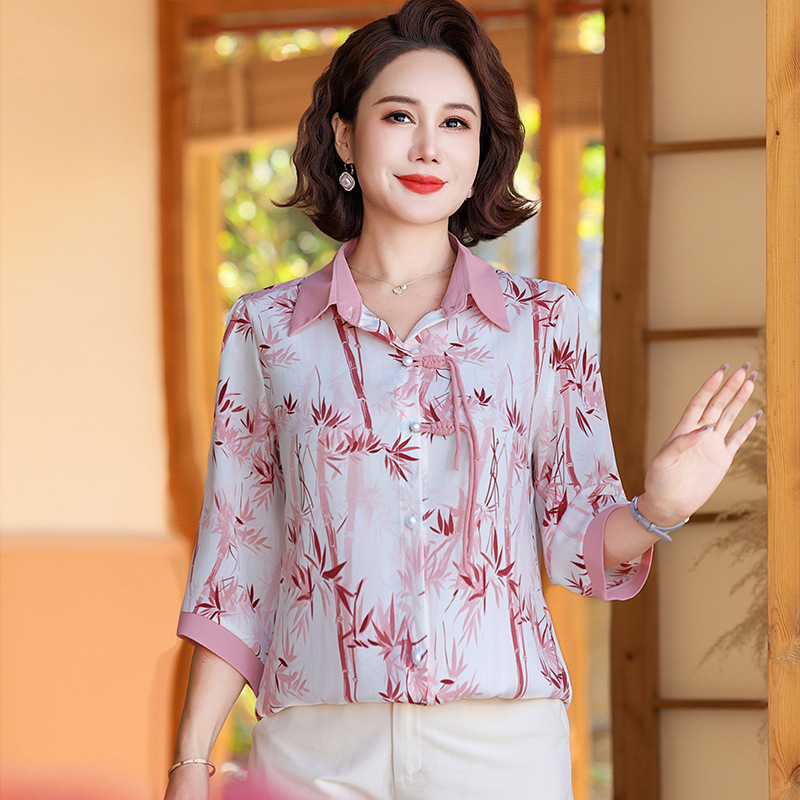 여성을위한 꽃 무늬 쉬폰 셔츠 여름 2025 새로운 스타일 중국 스타일 서양식 어머니 셔츠 7부 소매 탑