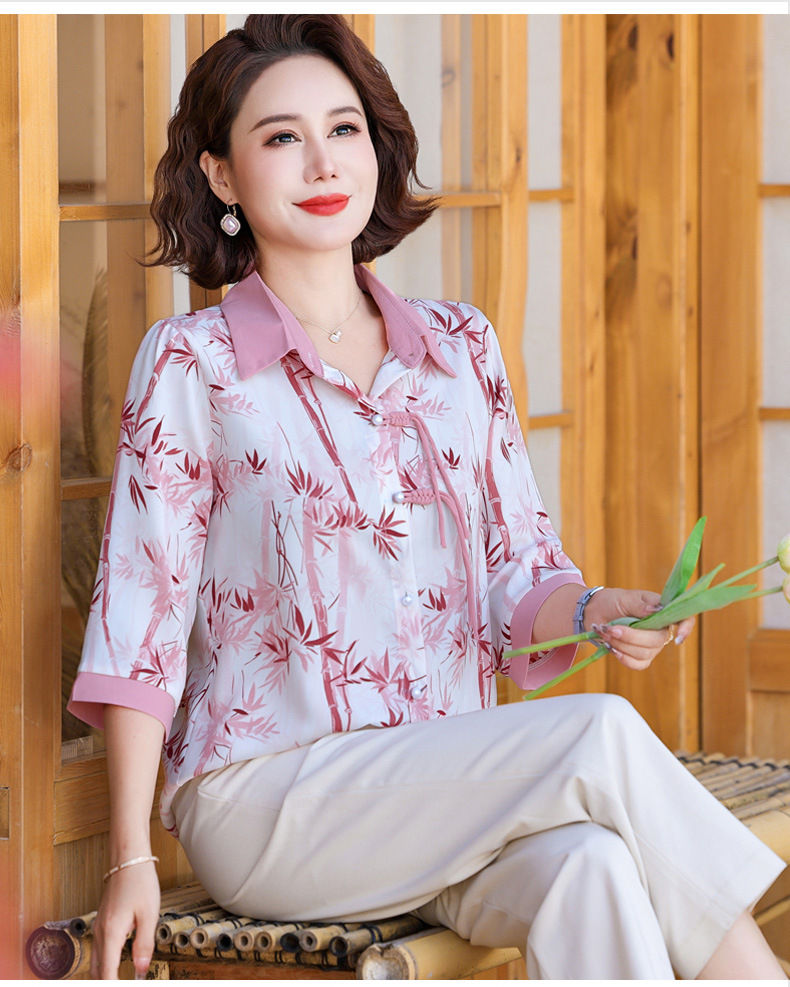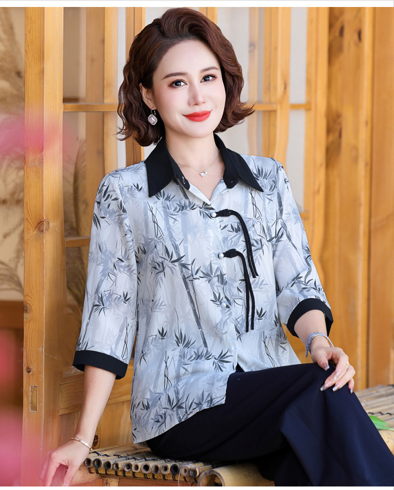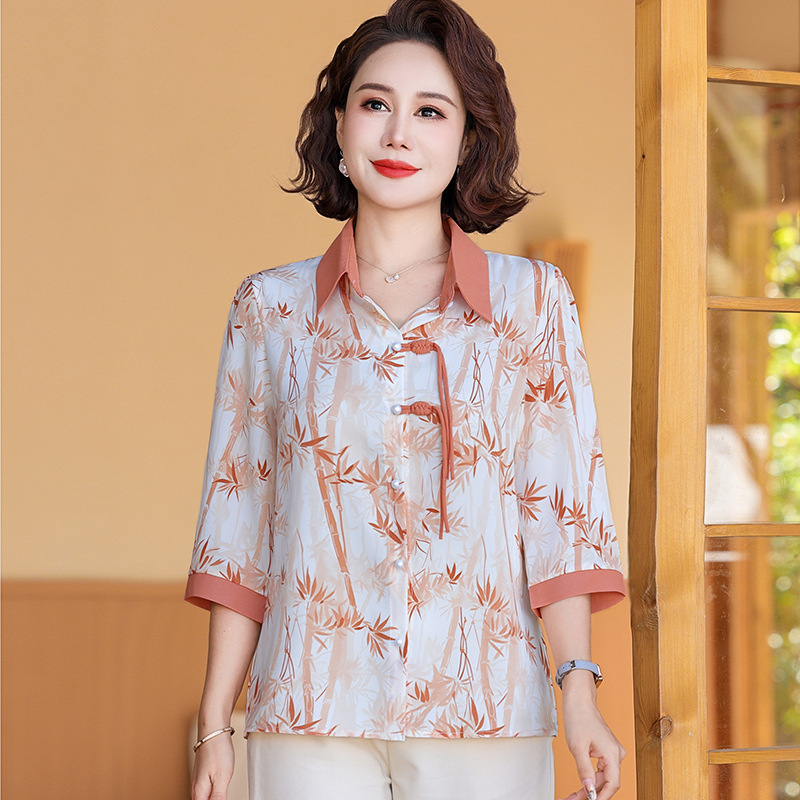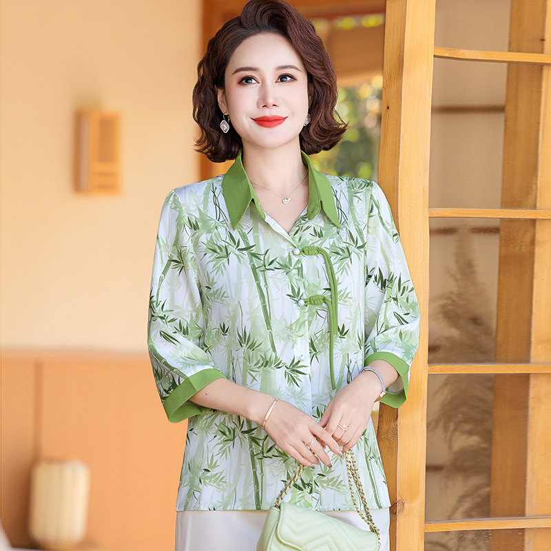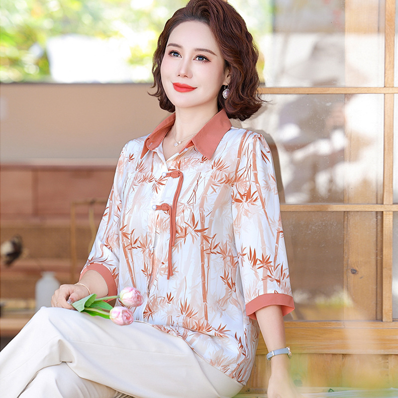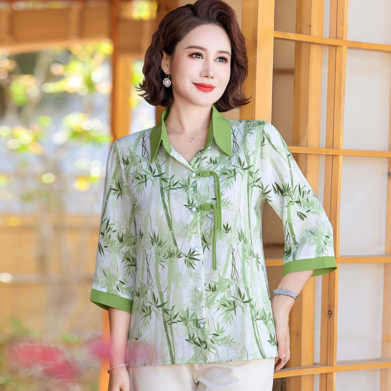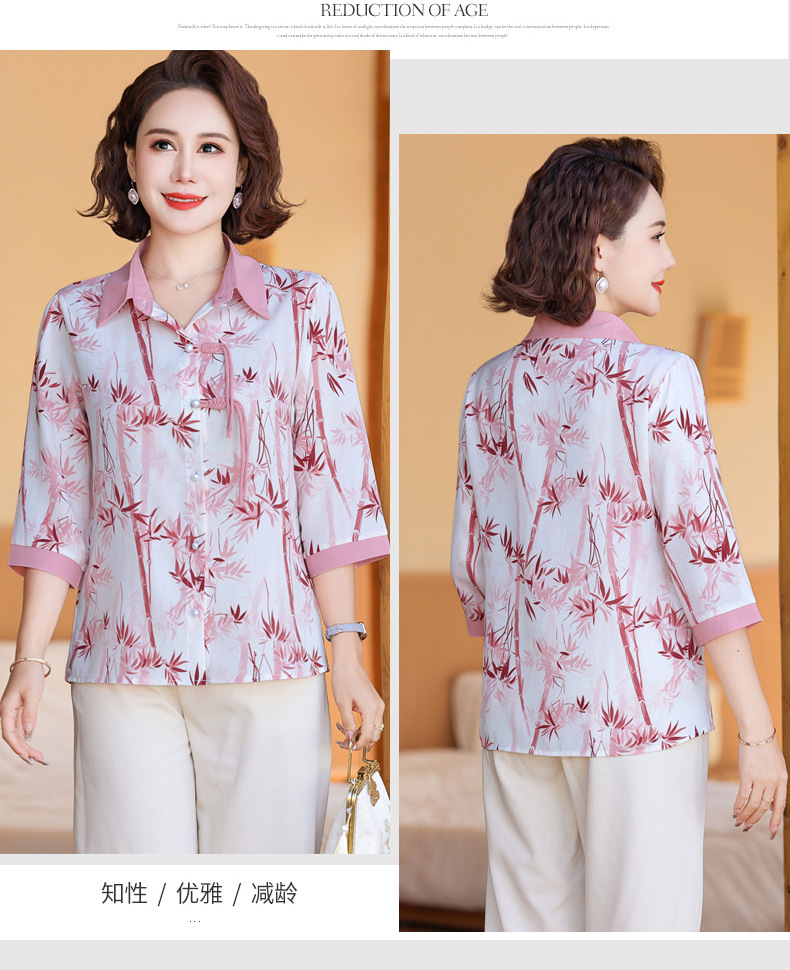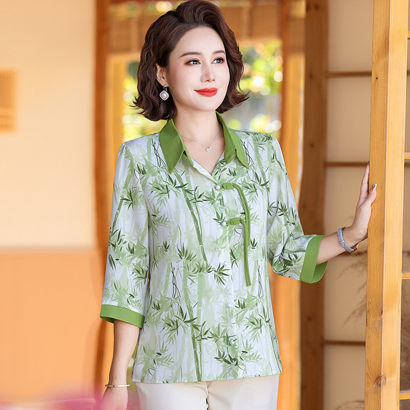 여성을위한 꽃 무늬 쉬폰 셔츠 여름 2025 새로운 스타일 중국 스타일 서양식 어머니 셔츠 7부 소매 탑