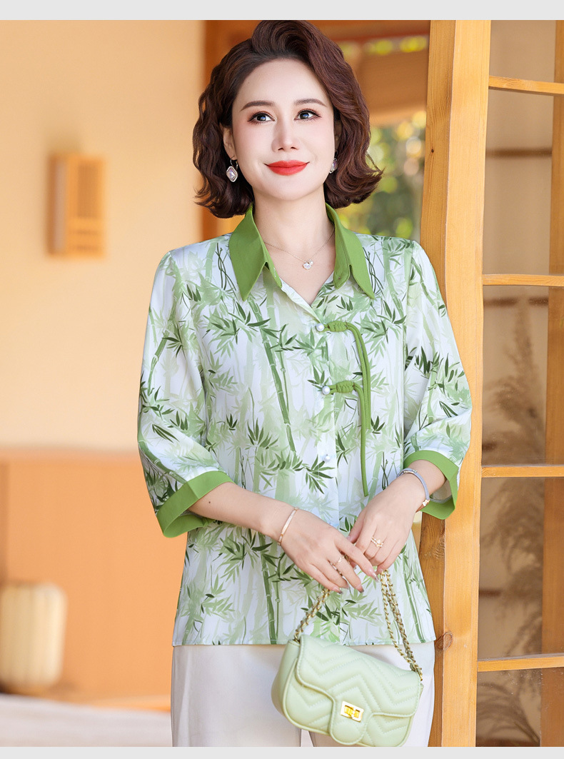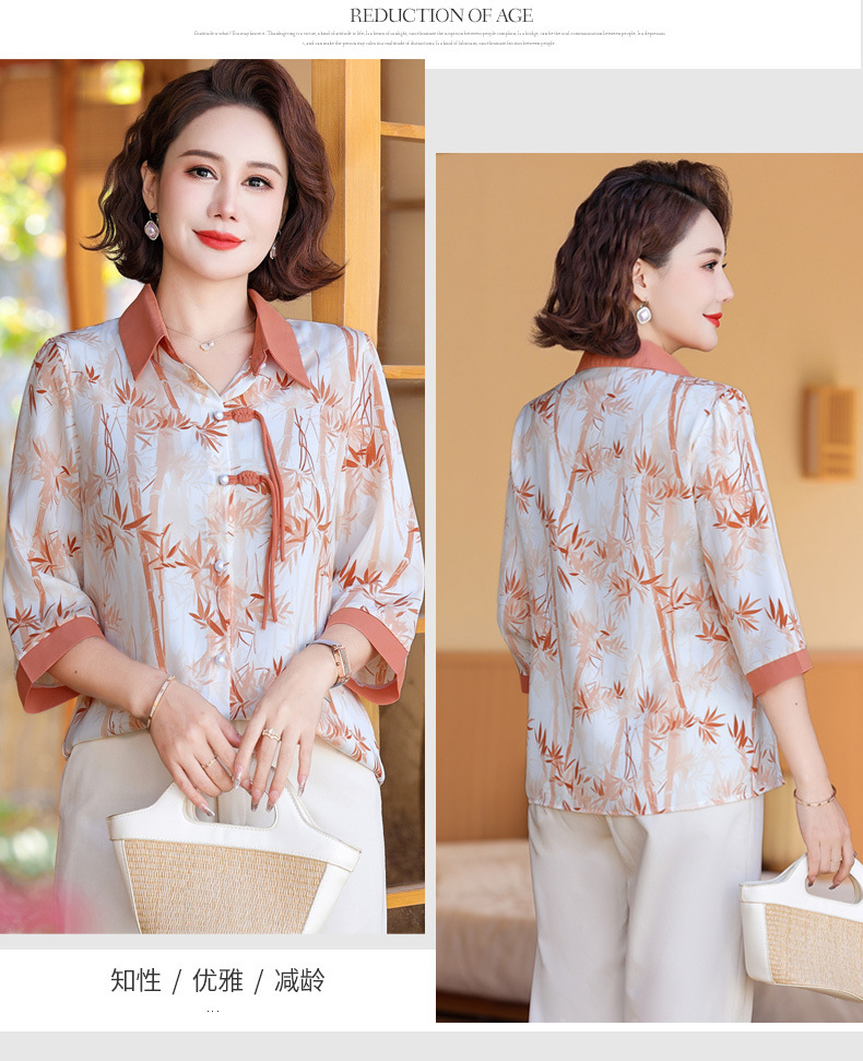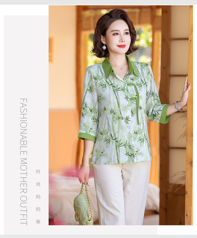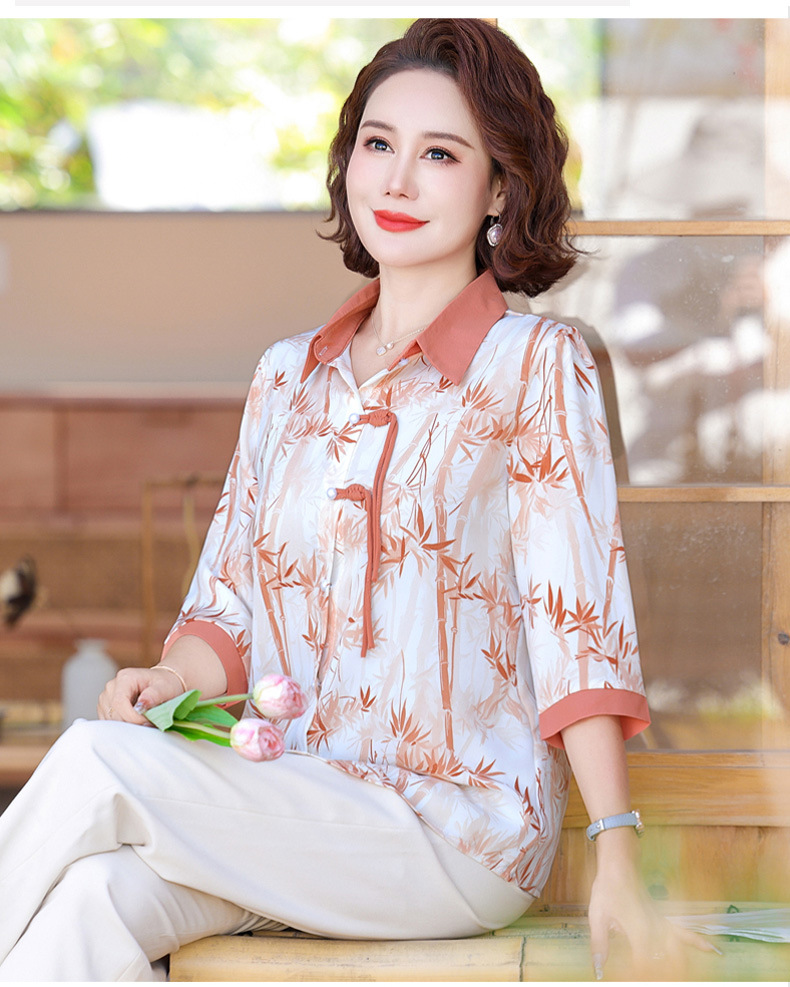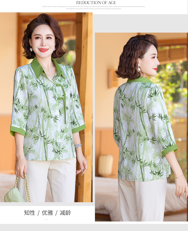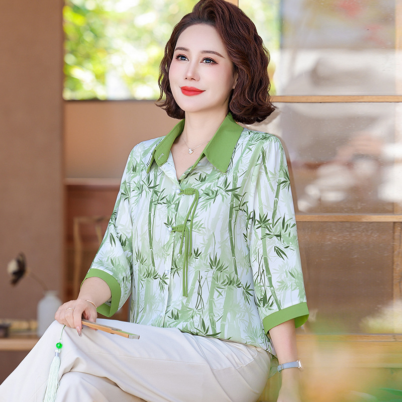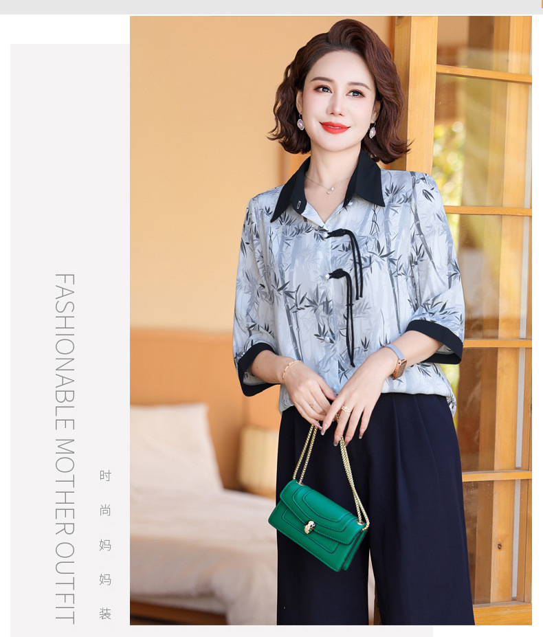 여성을위한 꽃 무늬 쉬폰 셔츠 여름 2025 새로운 스타일 중국 스타일 서양식 어머니 셔츠 7부 소매 탑