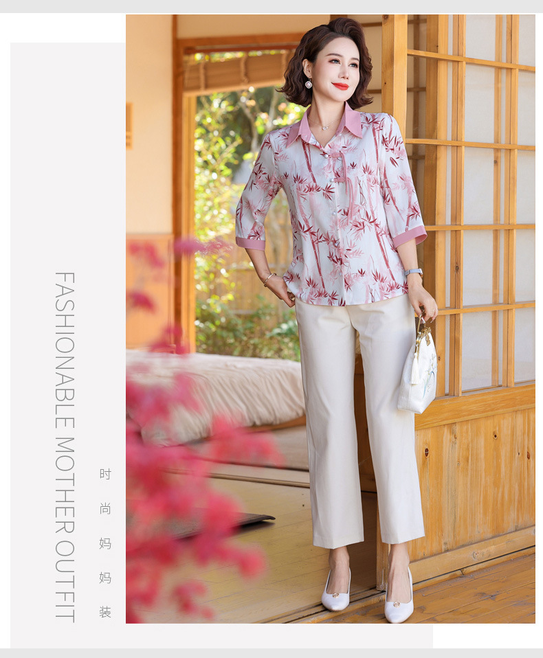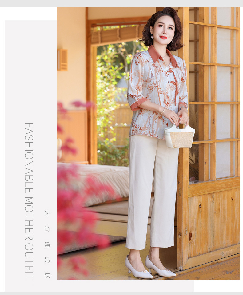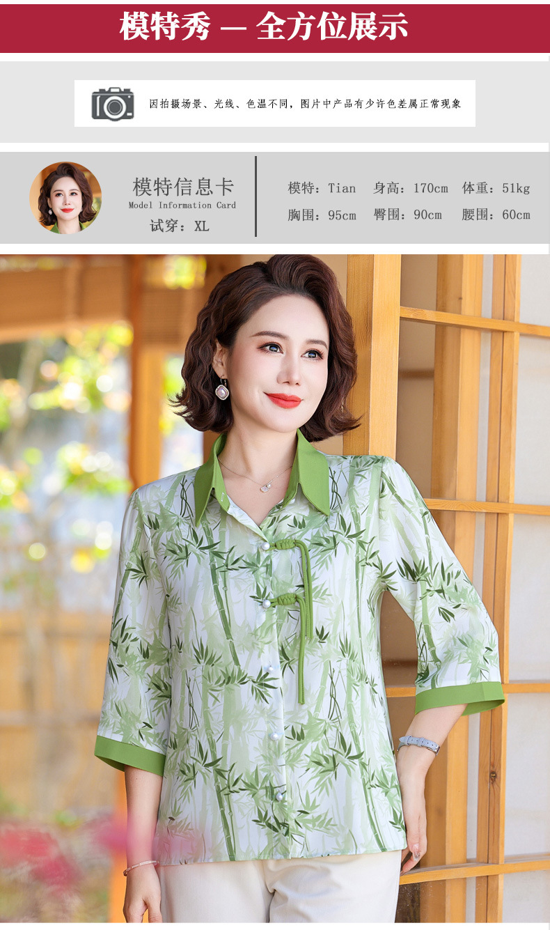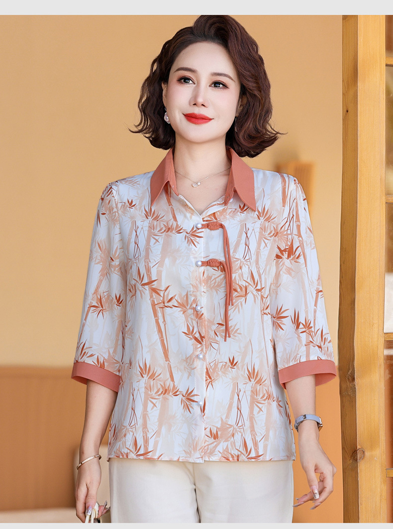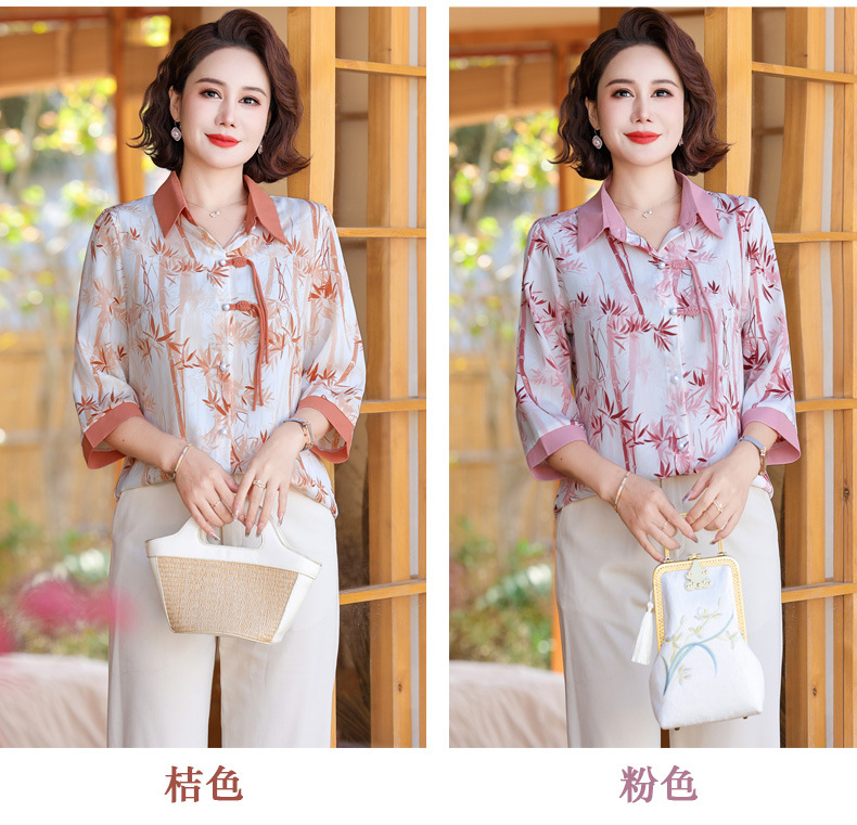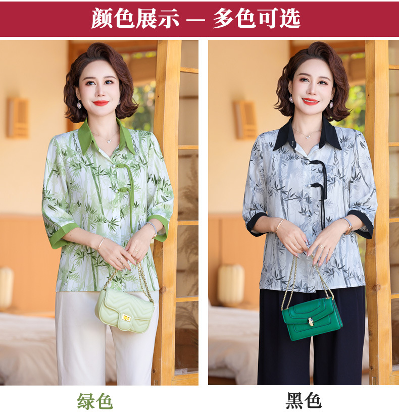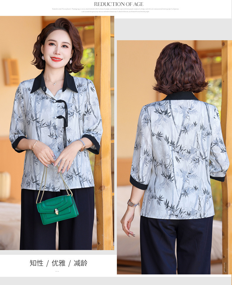 여성을위한 꽃 무늬 쉬폰 셔츠 여름 2025 새로운 스타일 중국 스타일 서양식 어머니 셔츠 7부 소매 탑