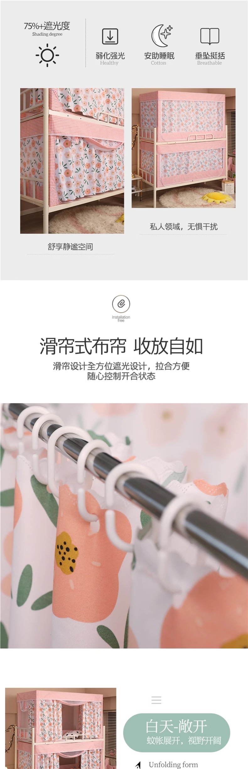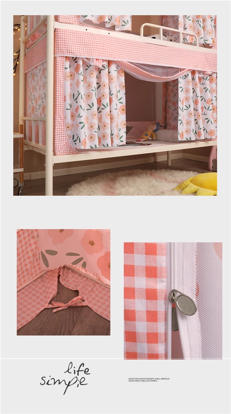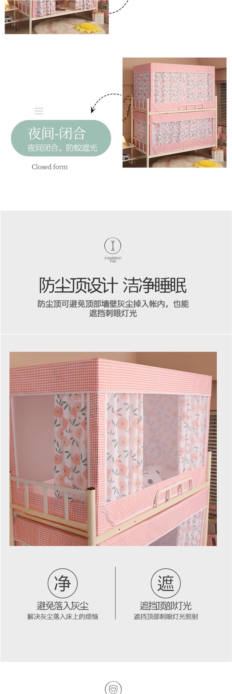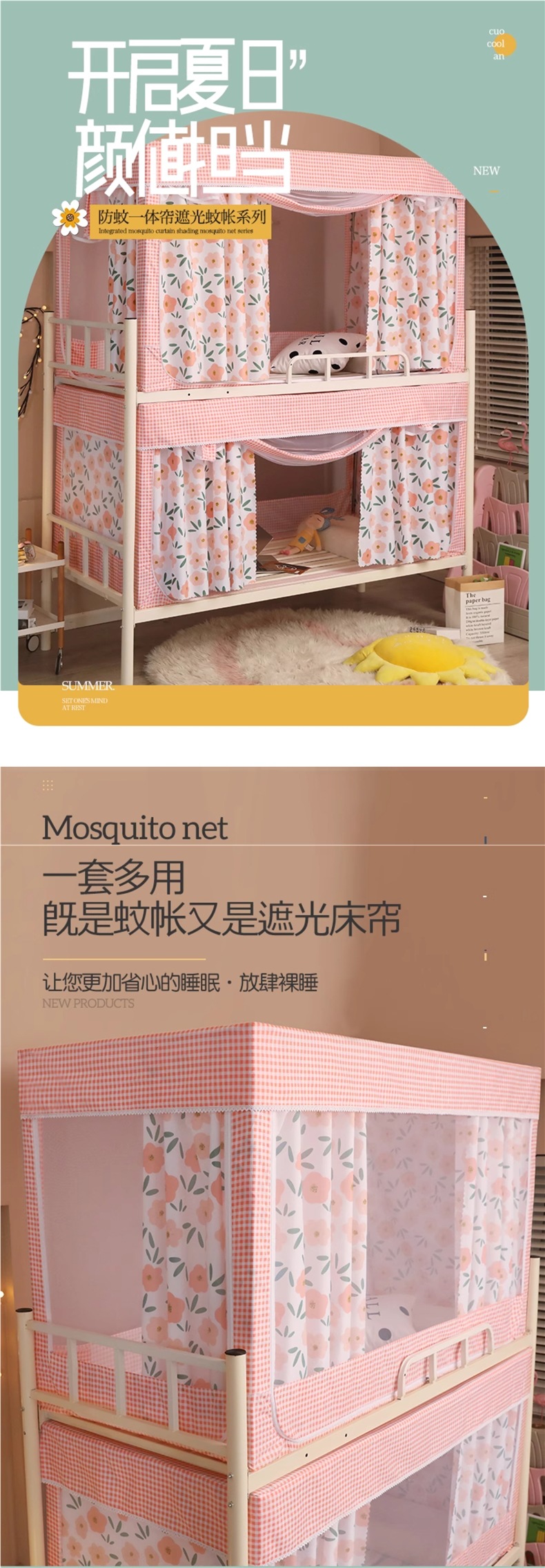 기숙사 학생 꽃무늬 침대 커튼 모기장 차광 일체형 지퍼 완전 밀폐형 이층 침대 여성 기숙사(스탠드 포함)스토어 가기