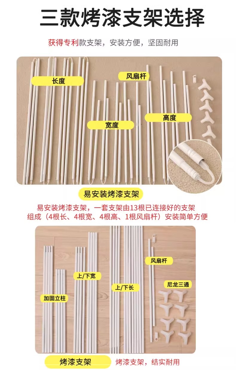 • 보관 가방 모델 Bidetu(5면 쉐이딩 + 브래킷 + 상단 + 모기장)에는 팬 로드가 함께 제공됩니다.