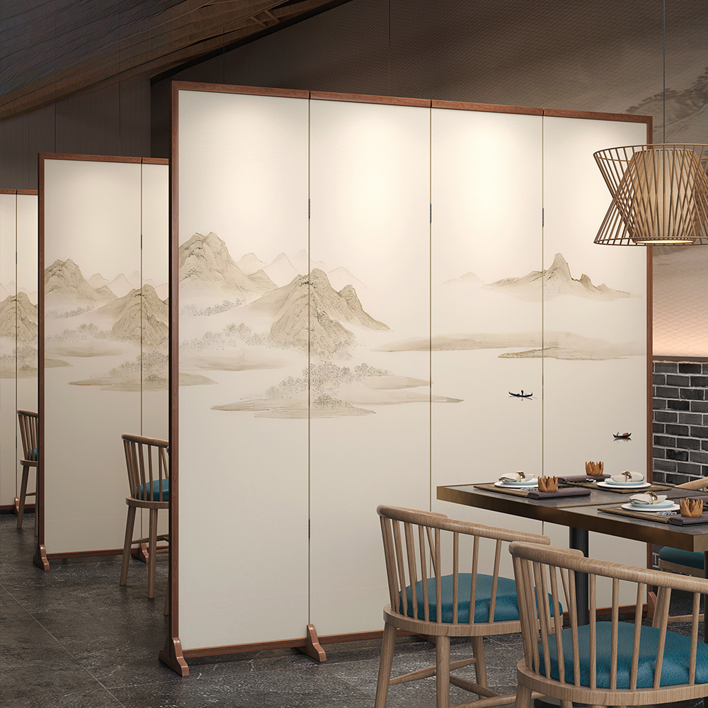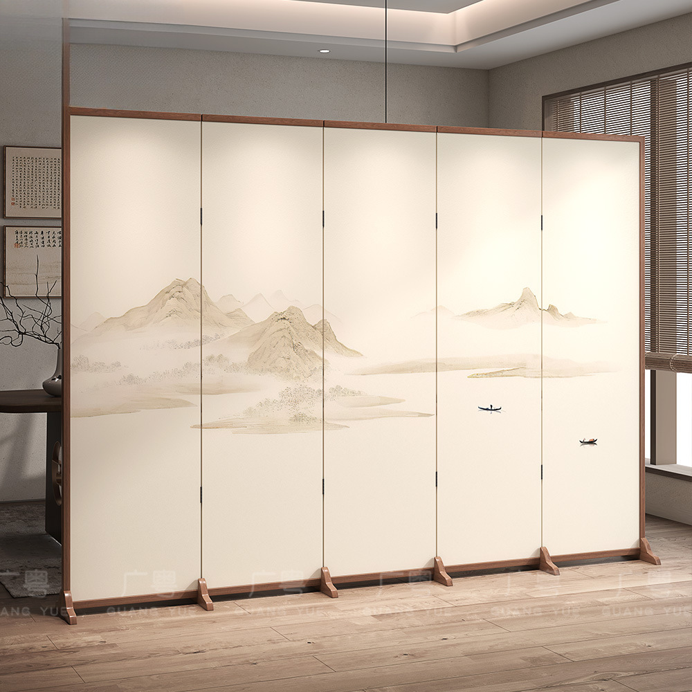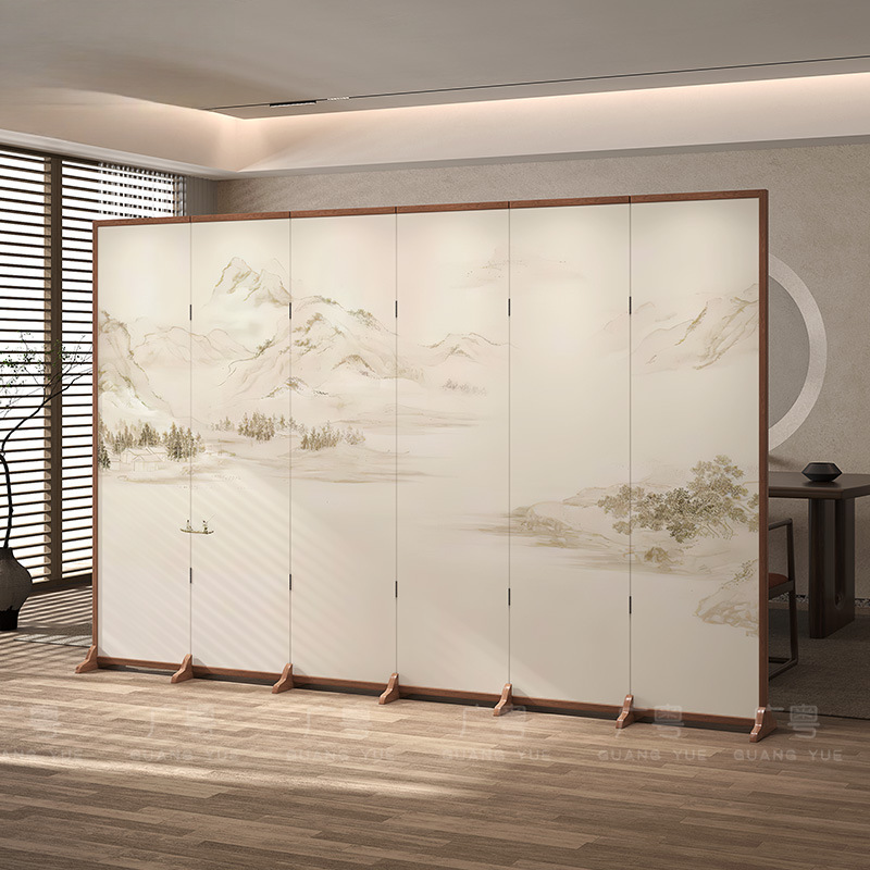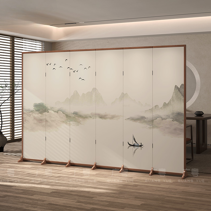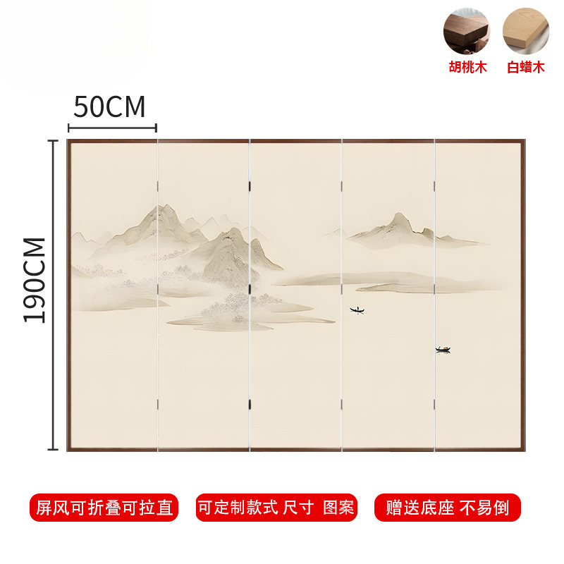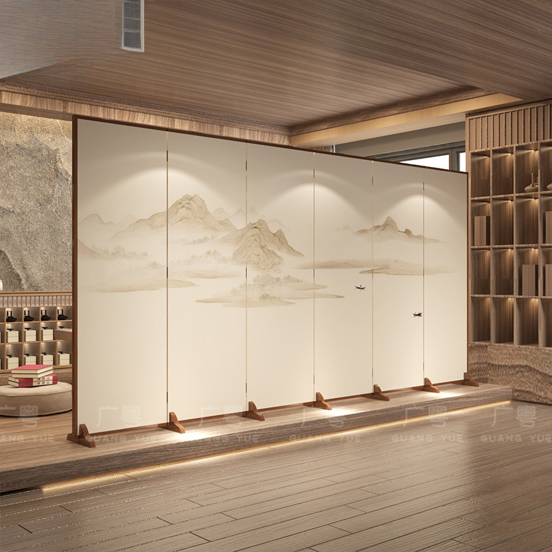 새로운 중국 스타일 단단한 나무 스크린 파티션 거실 입구 침실 접이식 모바일 차단 입구 사무실 레스토랑 찻집