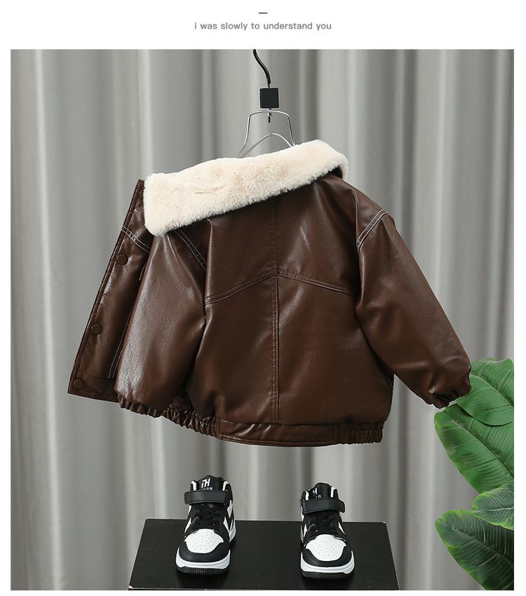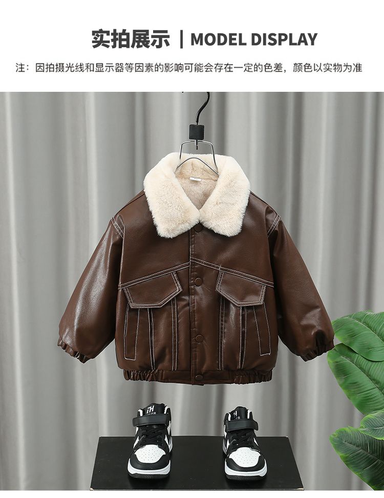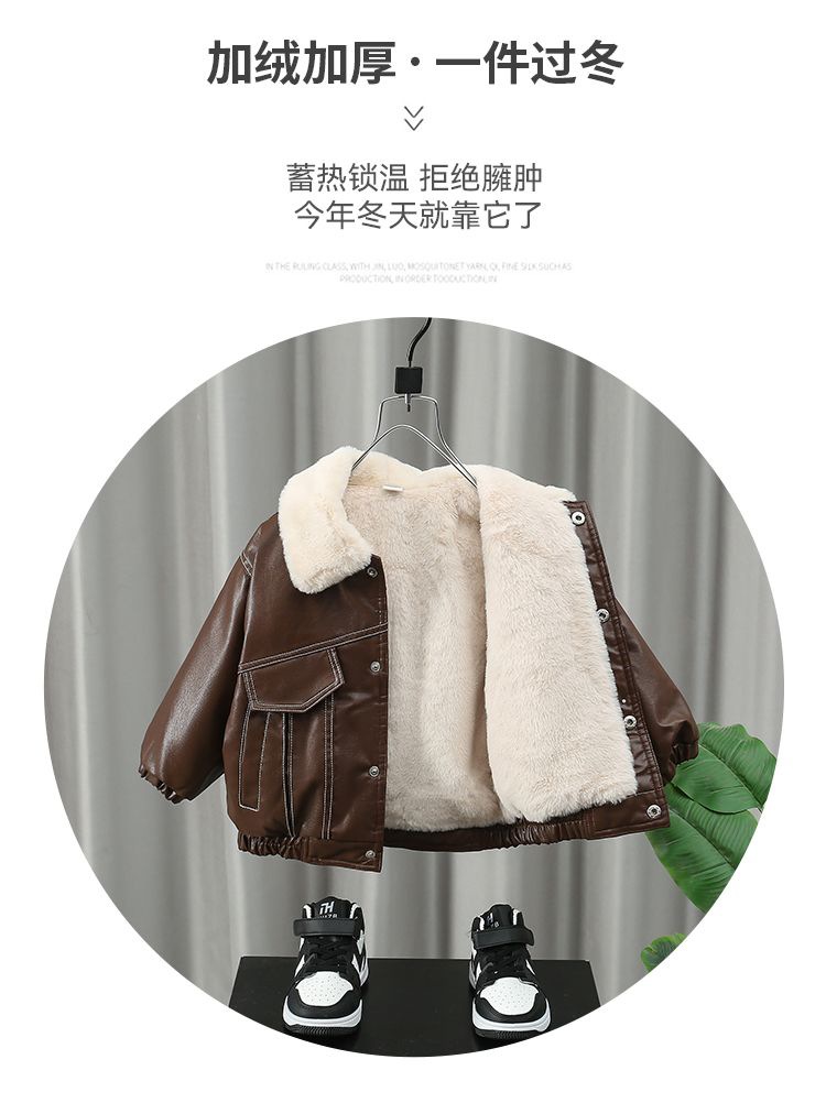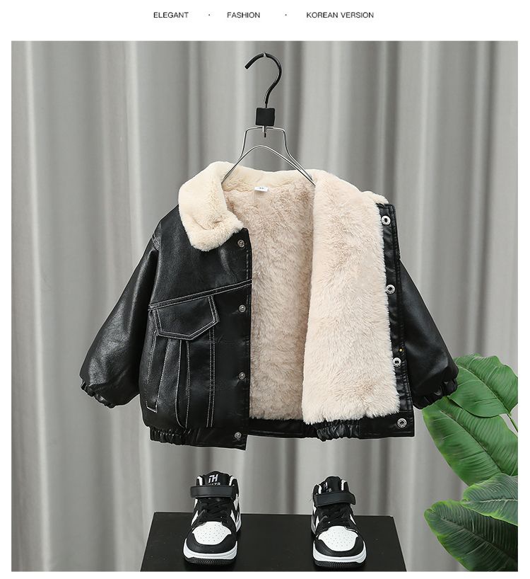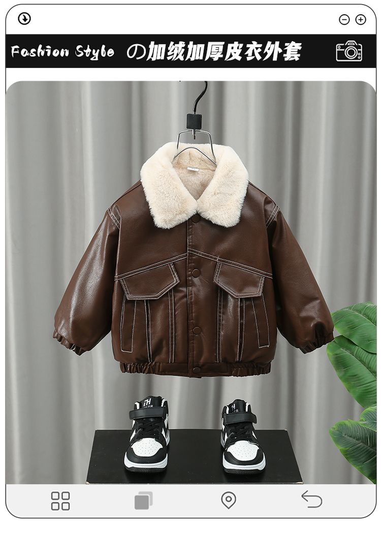 아동복 소년의 멋진 가죽 자켓 새로운 스타일의 아기 가을, 겨울 의류 아동 한국 스타일 벨벳 두꺼운 자켓 가죽 자켓스토어 가기