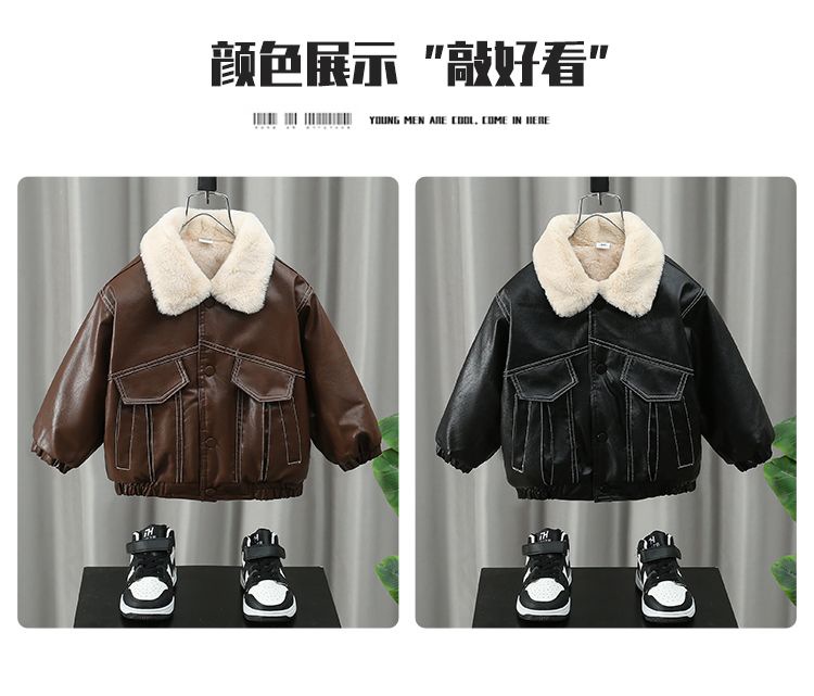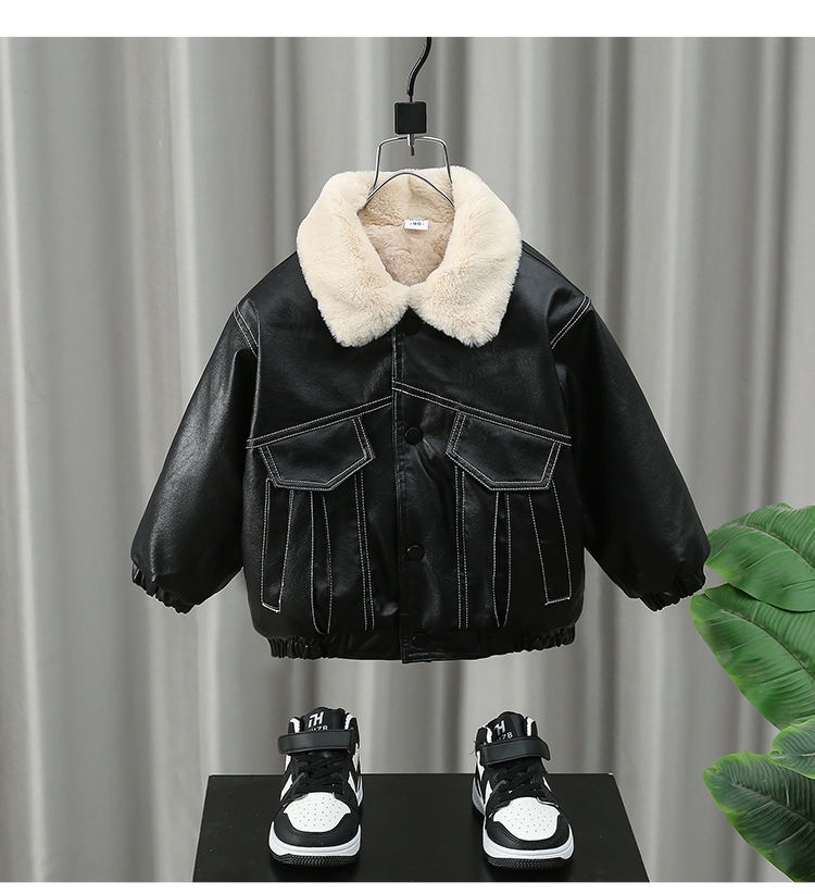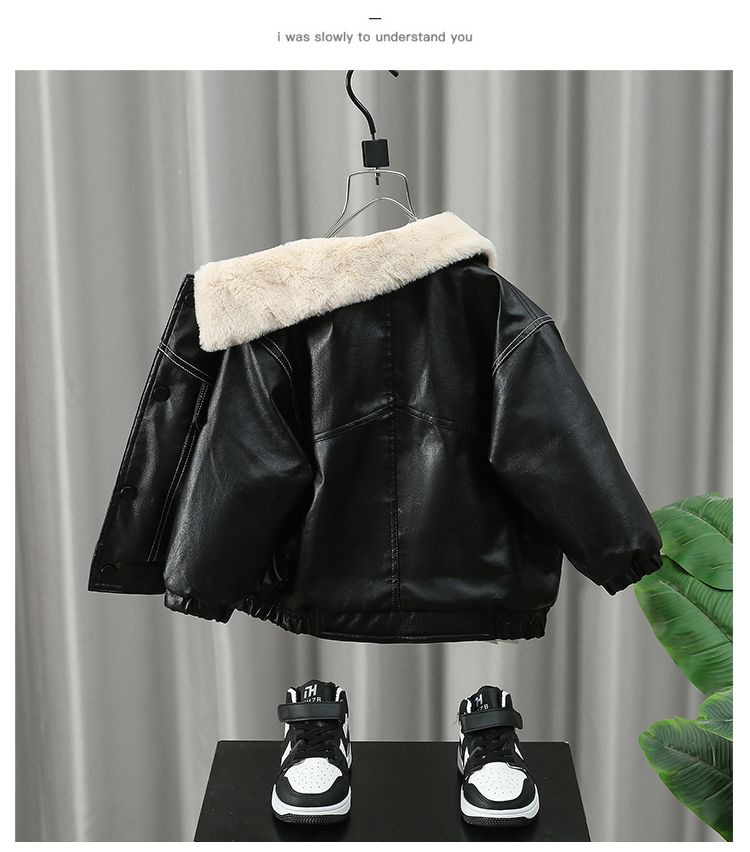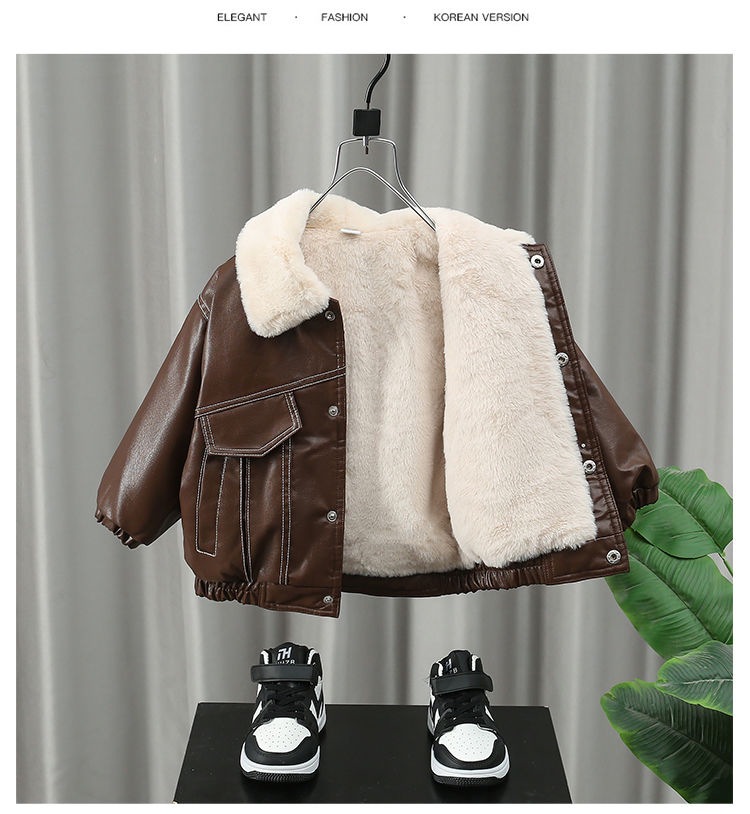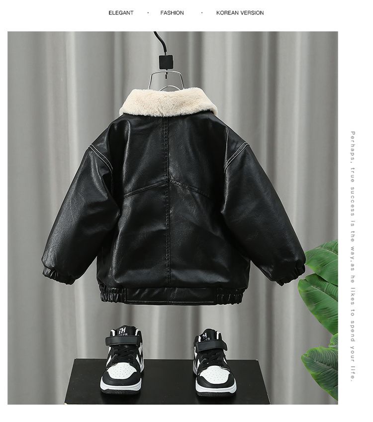 아동복 소년의 멋진 가죽 자켓 새로운 스타일의 아기 가을, 겨울 의류 아동 한국 스타일 벨벳 두꺼운 자켓 가죽 자켓스토어 가기