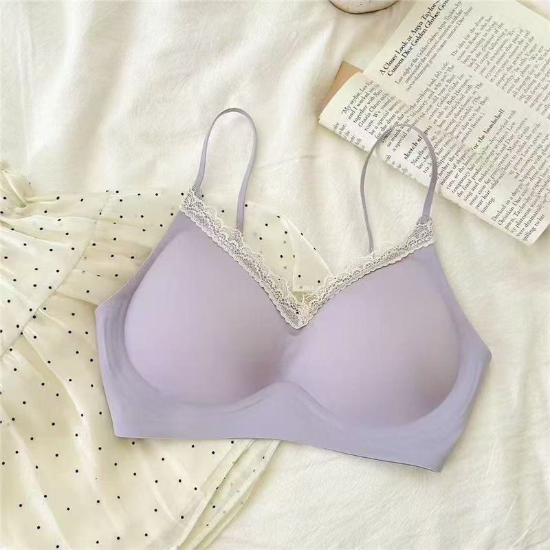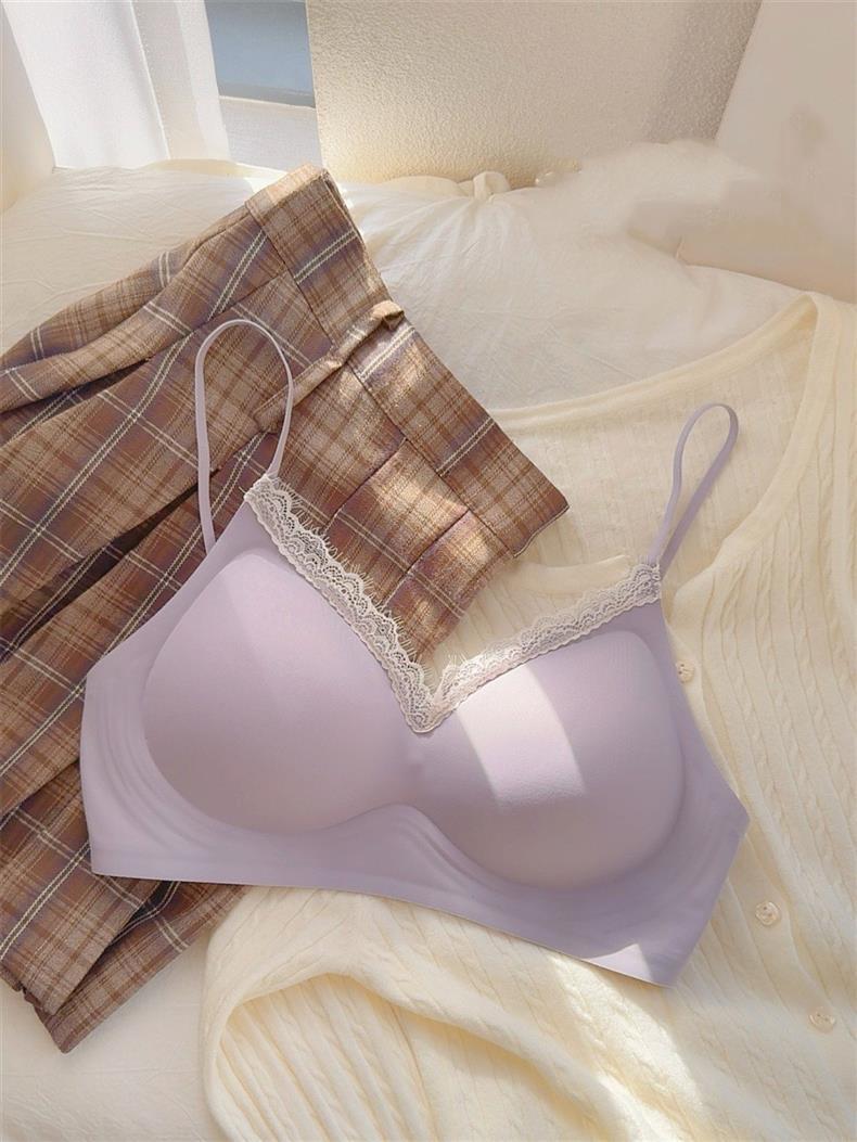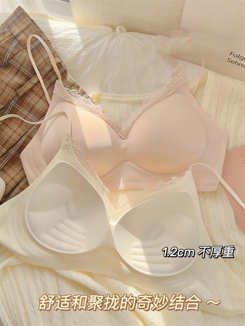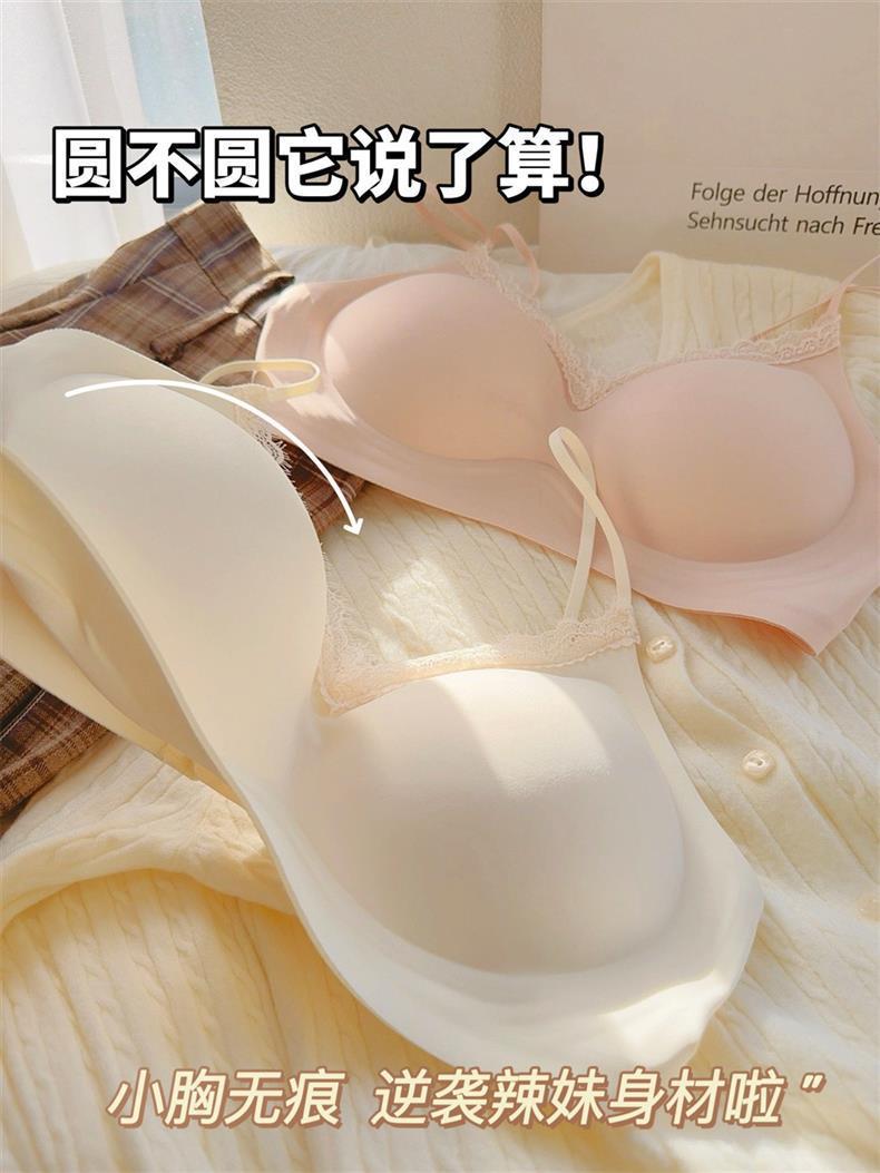 얇은 어깨끈, 심리스 컵, 레이스 엣지, 손바닥 내부 컵, 작은 가슴 푸쉬업, 스타일리시하고 확대된 노와이어 가슴 수축 브라