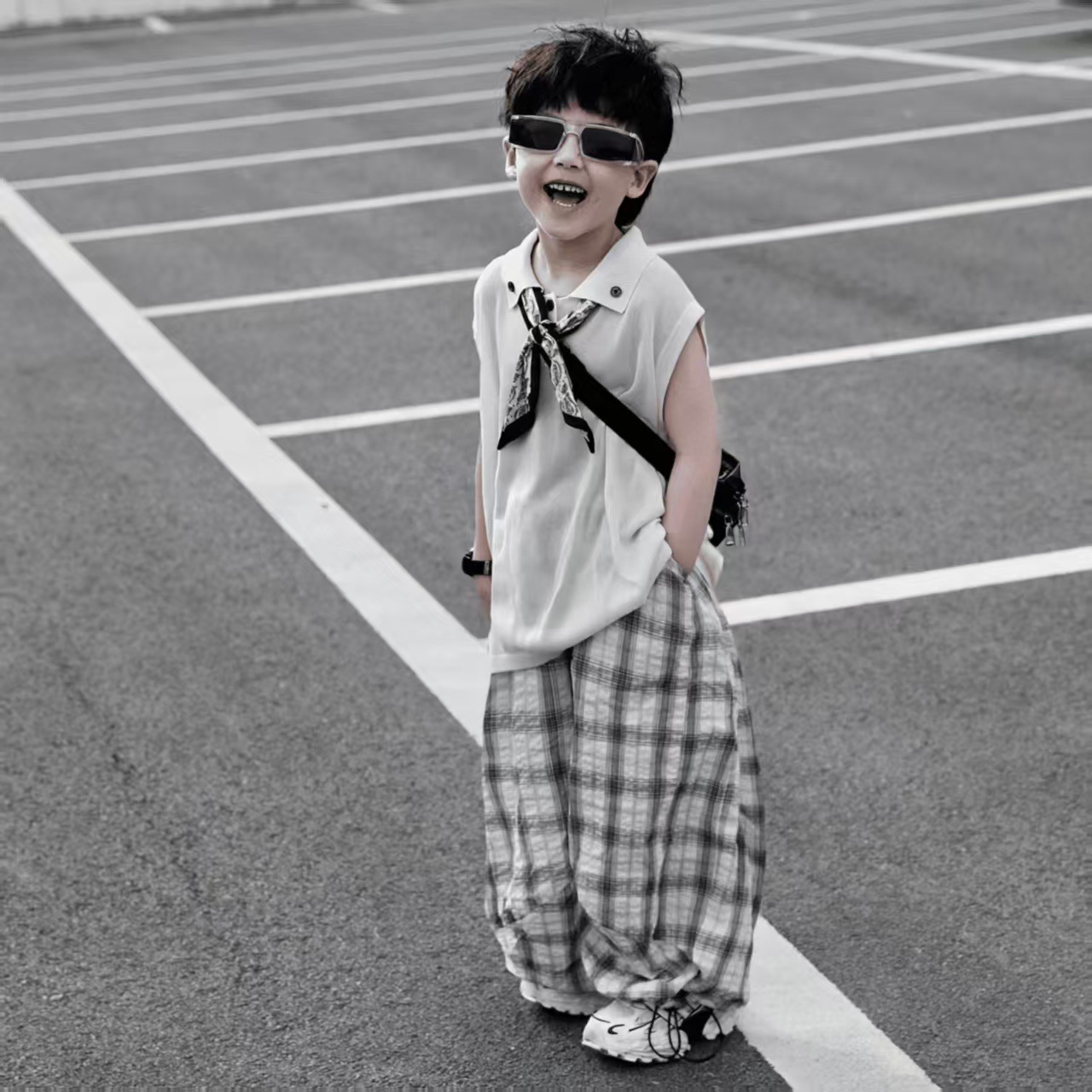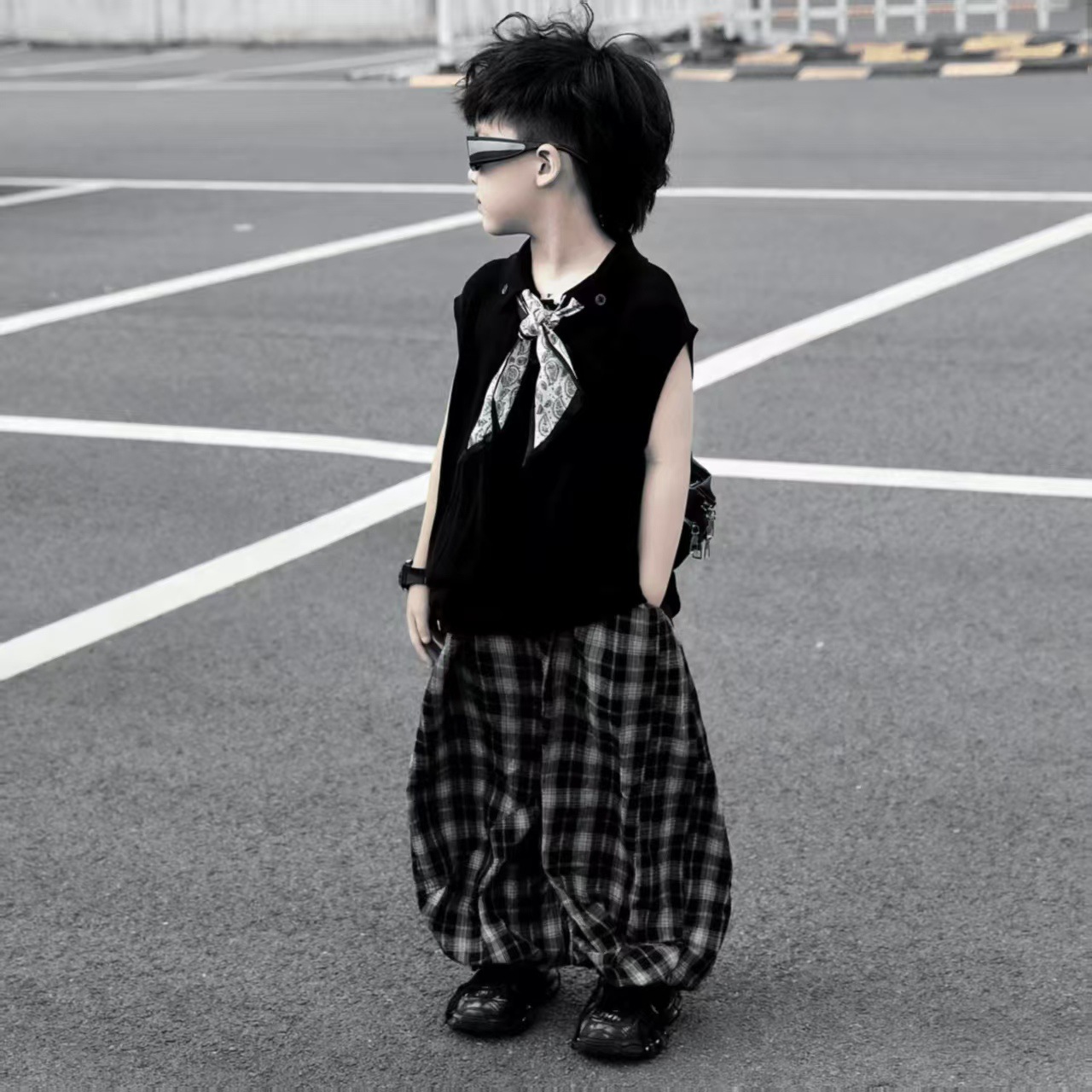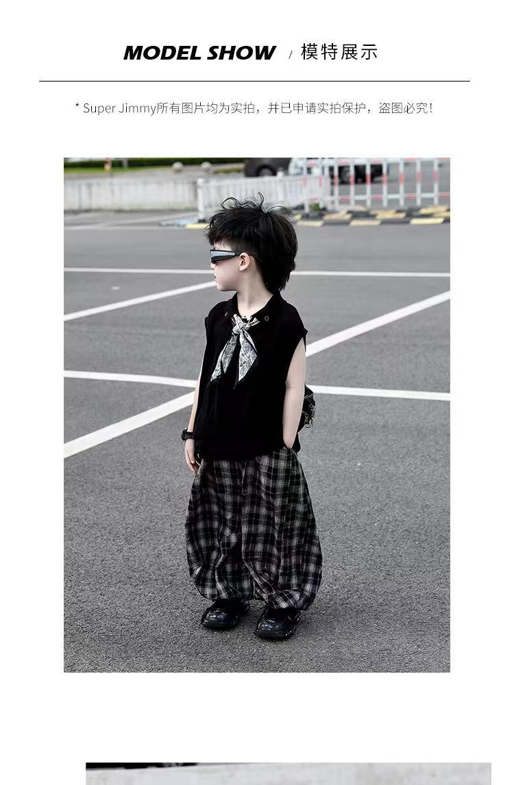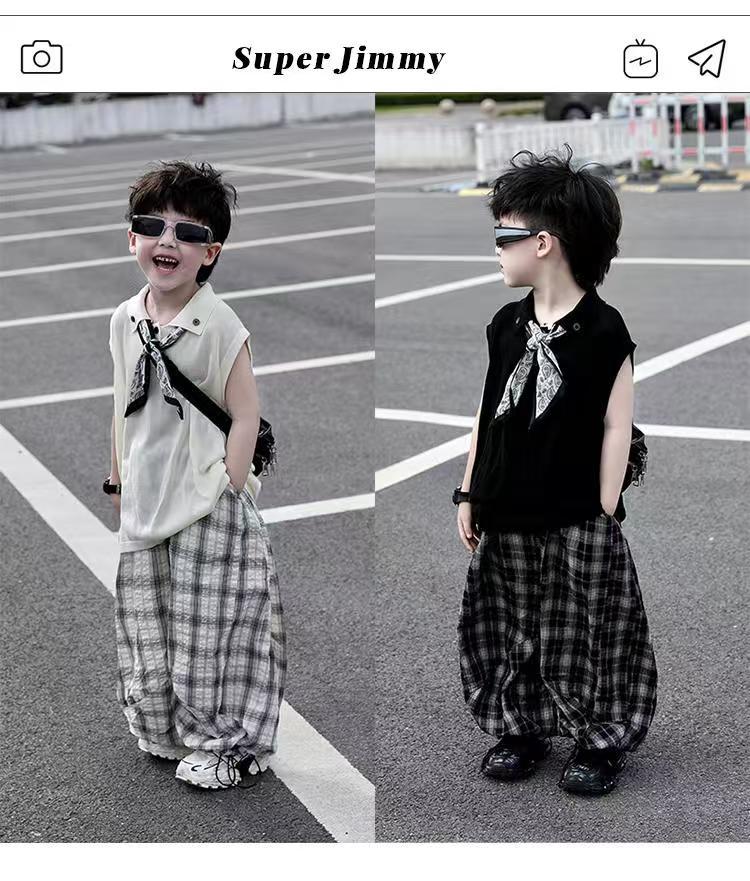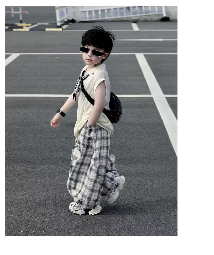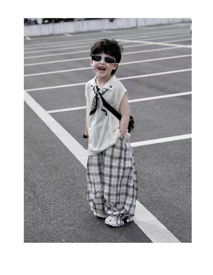 소년 여름 민소매 양복 2025 새로운 여름 어린이 얇은 탑 격자 무늬 바지 서양식 어린 소년 옷스토어 가기