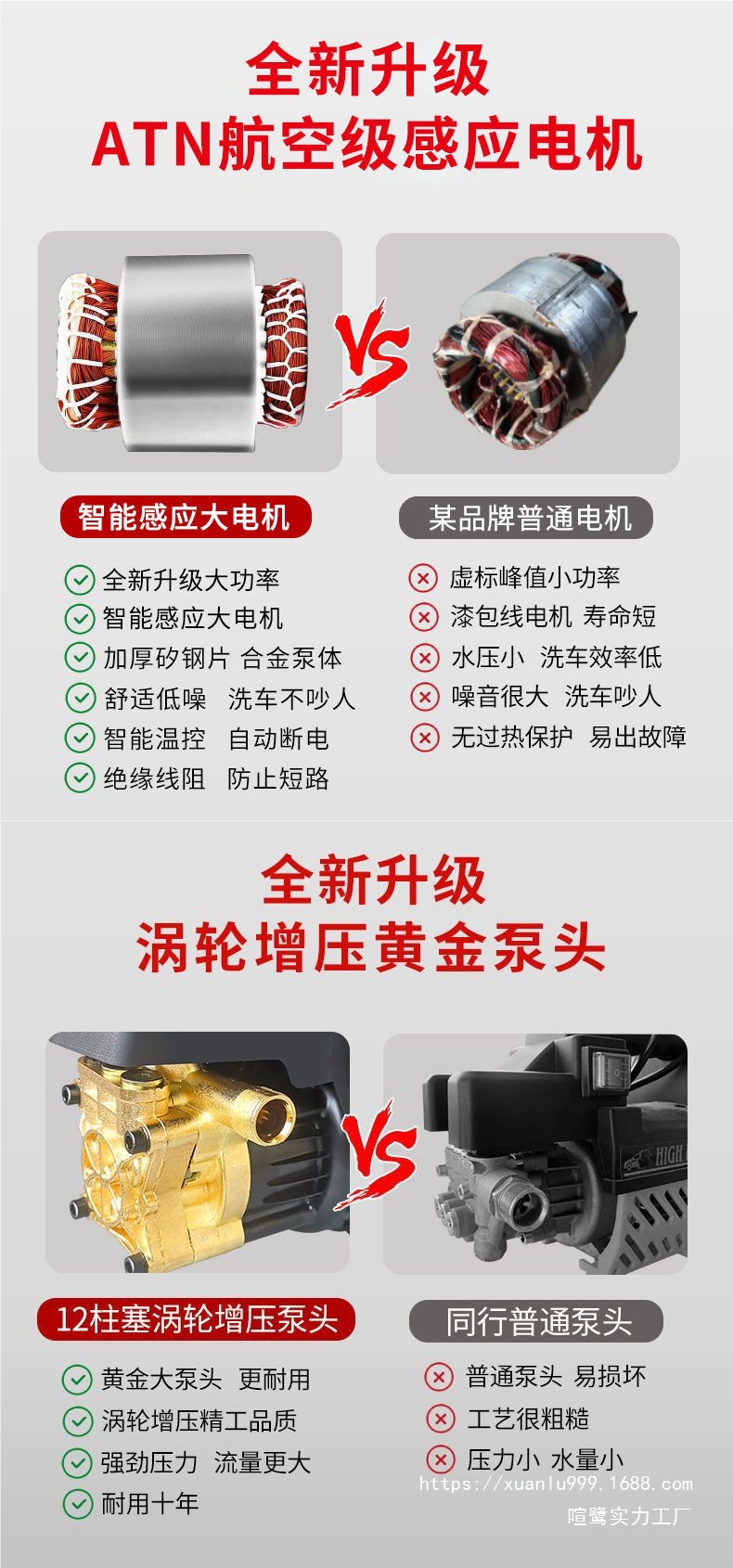 고압 세차기 가정용 청소 기계 자동 고전력 220V 휴대용 브러시 자동차 펌프 물총 세차