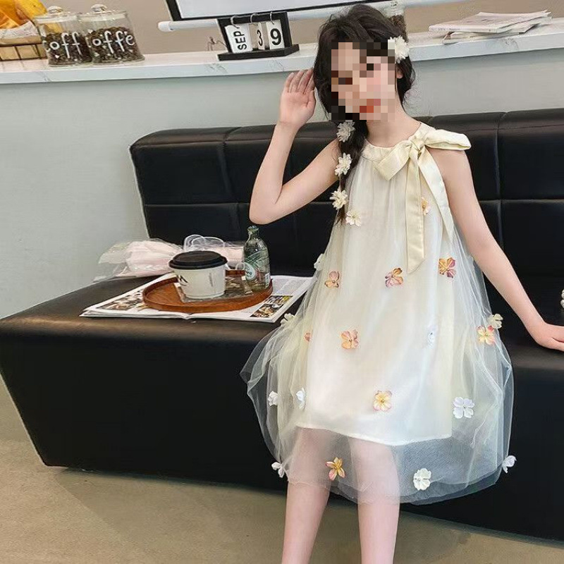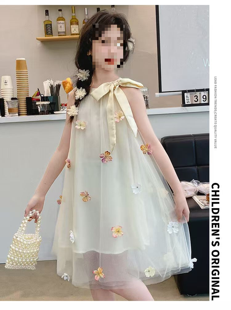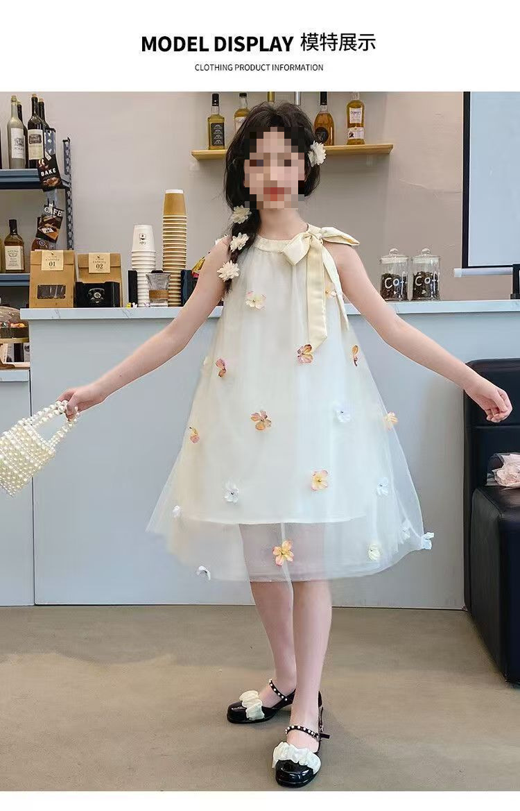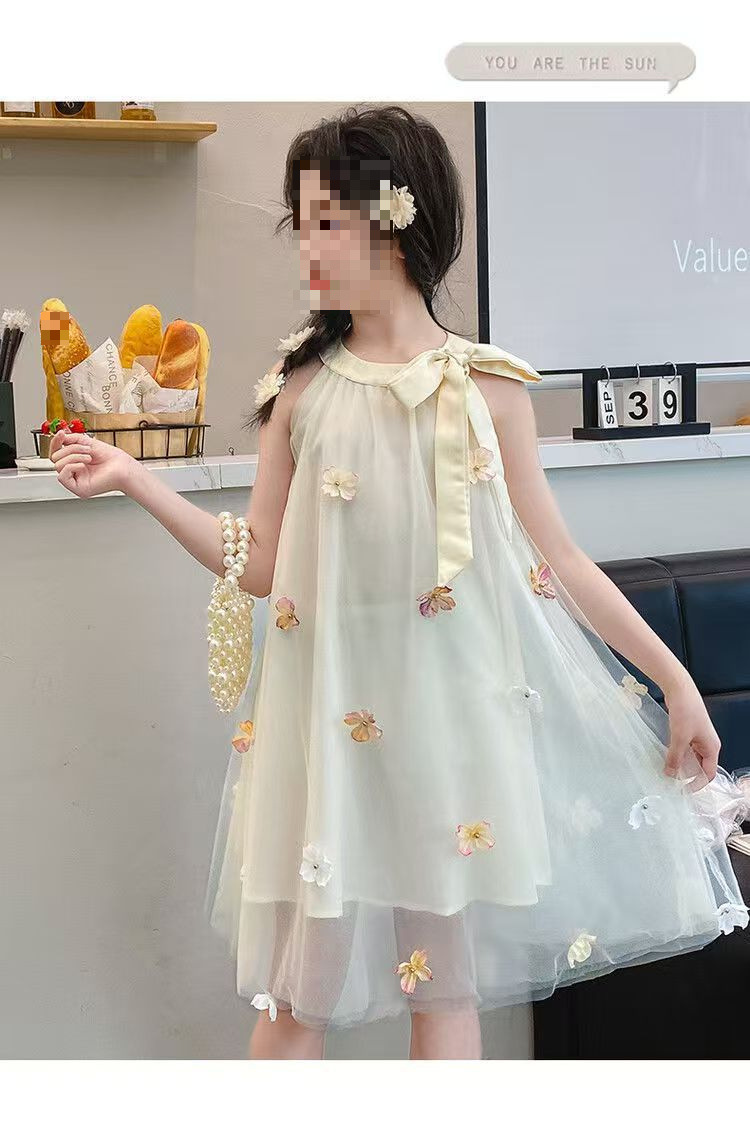 여자 드레스 여름 2025 새로운 여름 드레스 유행 공주 어린이 입체 스커트 꽃 거즈 스커트 큰 어린이를위한스토어 가기