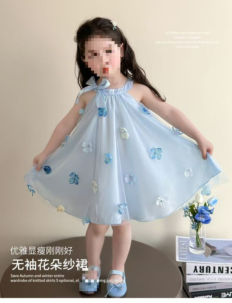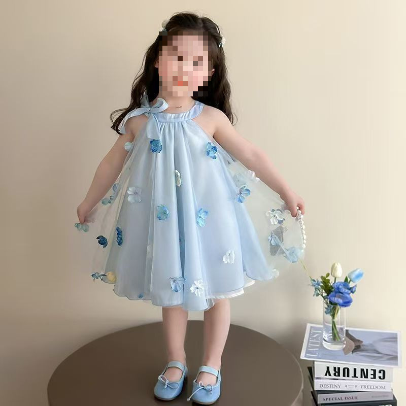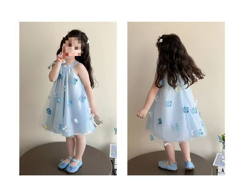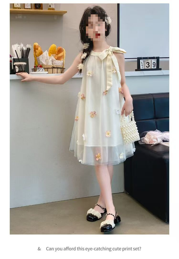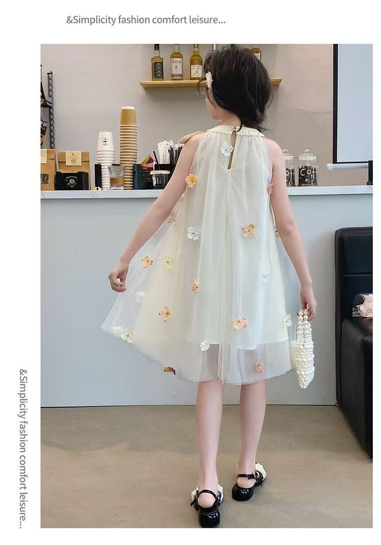 여자 드레스 여름 2025 새로운 여름 드레스 유행 공주 어린이 입체 스커트 꽃 거즈 스커트 큰 어린이를위한스토어 가기