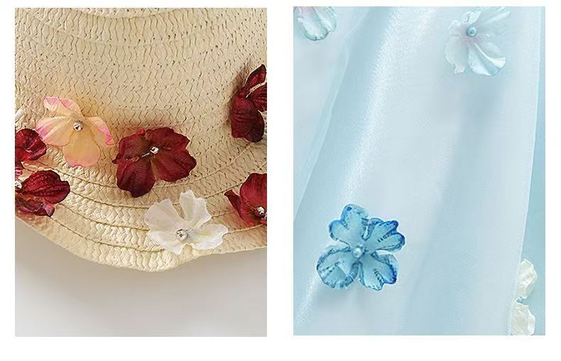 여자 드레스 여름 2025 새로운 여름 드레스 유행 공주 어린이 입체 스커트 꽃 거즈 스커트 큰 어린이를위한