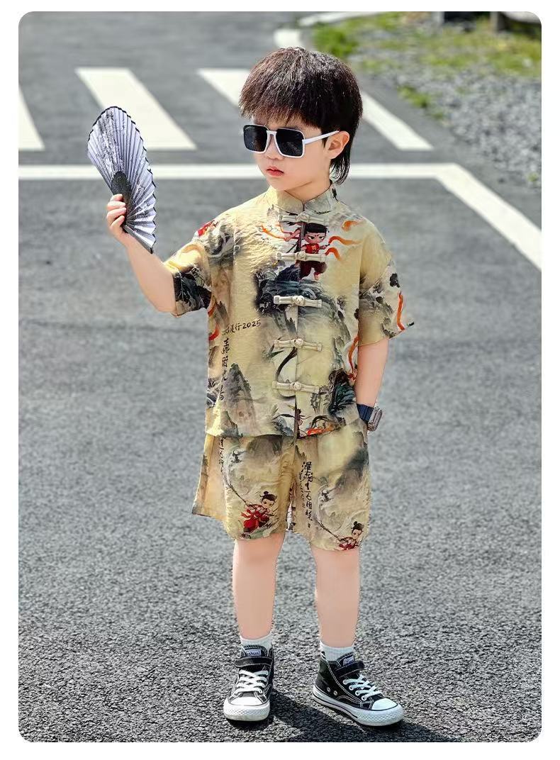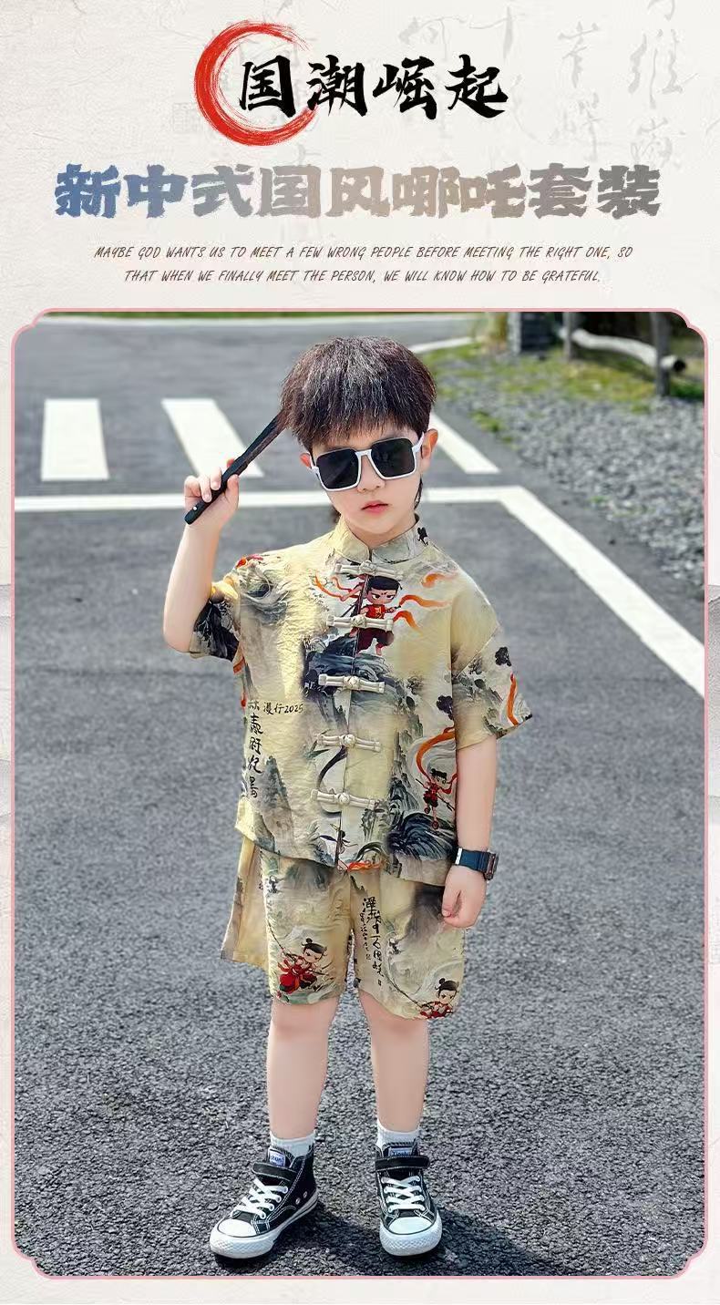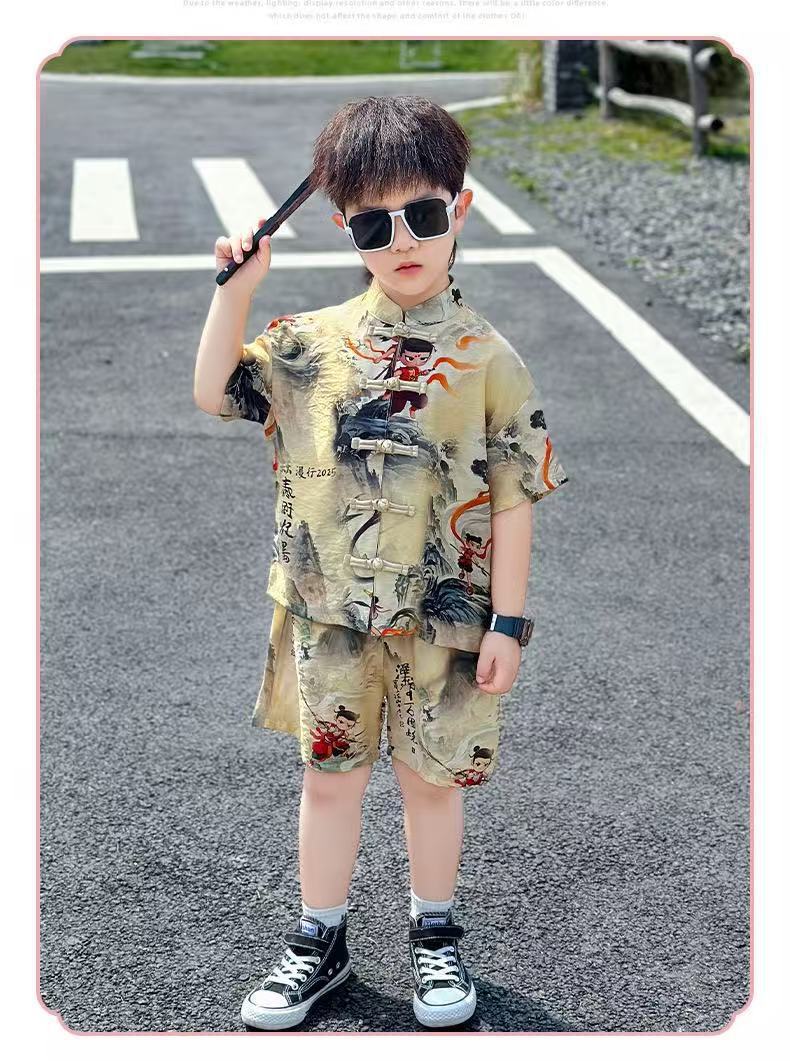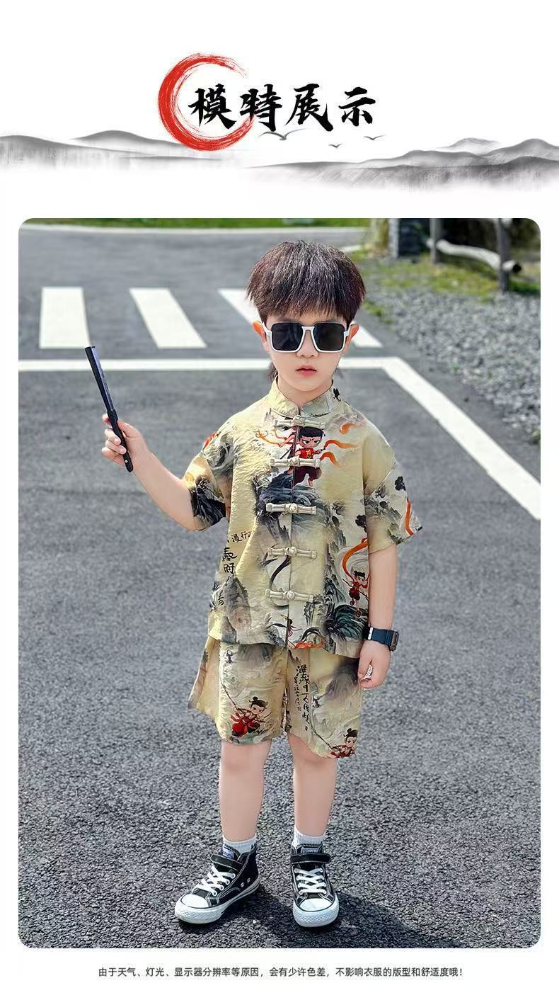 Nata 옷 어린이 2025 새로운 중국 스타일 Nata 정장 소년 Hanfu 여름 옷 중국 스타일 반팔 당나라 정장 아동복스토어 가기