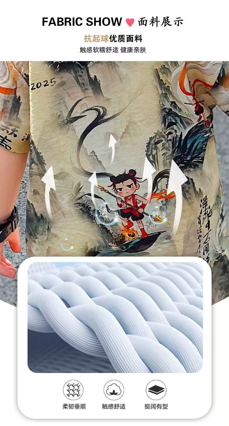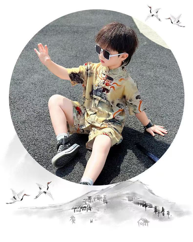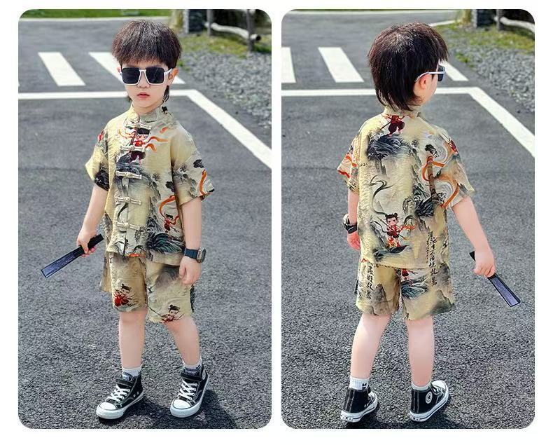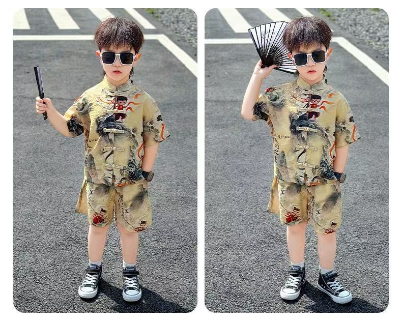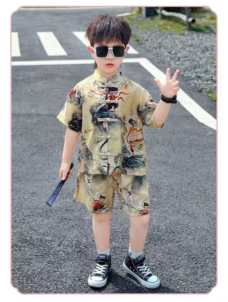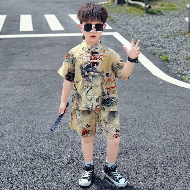 Nata 옷 어린이 2025 새로운 중국 스타일 Nata 정장 소년 Hanfu 여름 옷 중국 스타일 반팔 당나라 정장 아동복스토어 가기