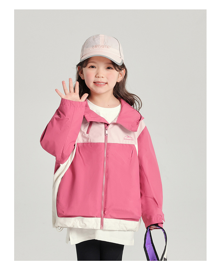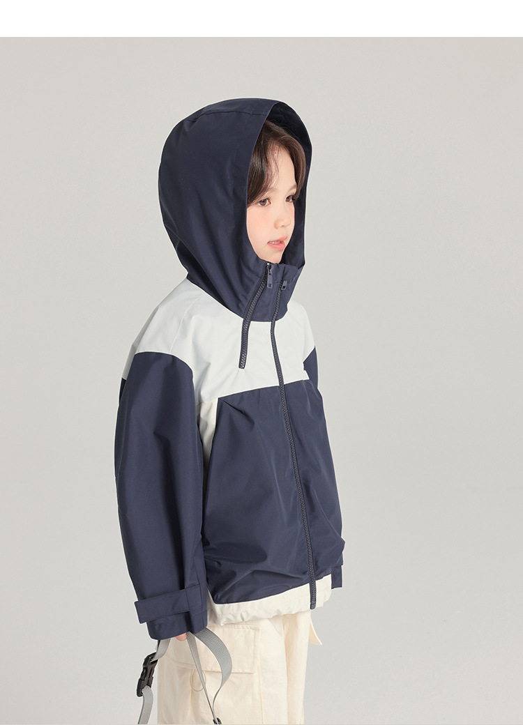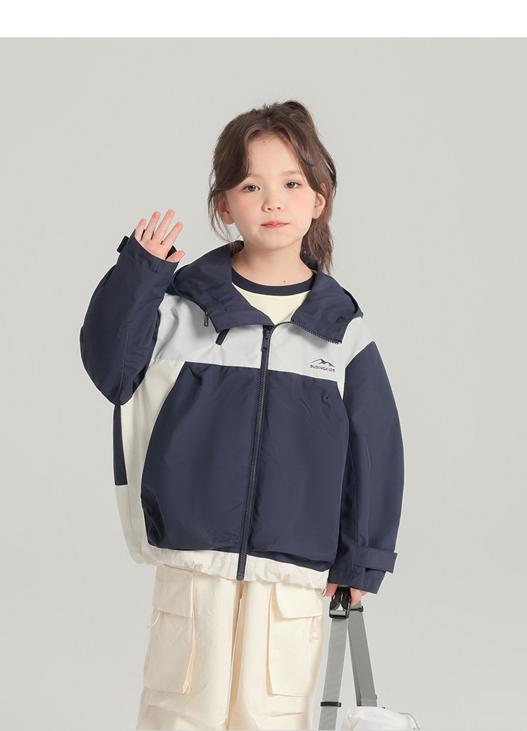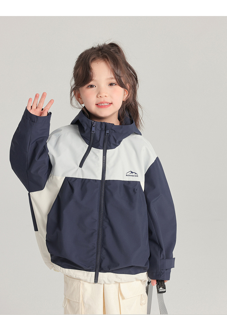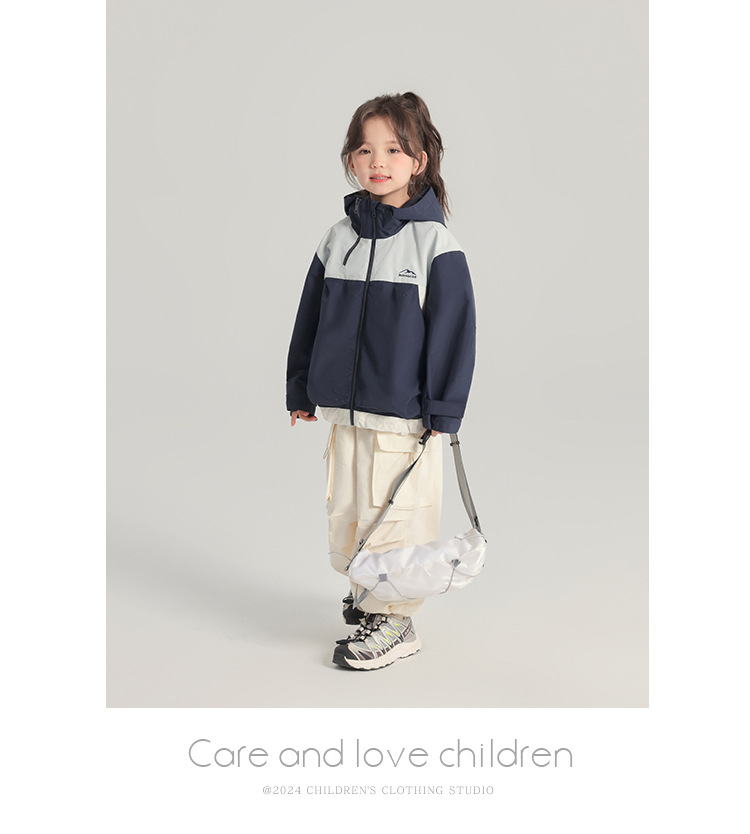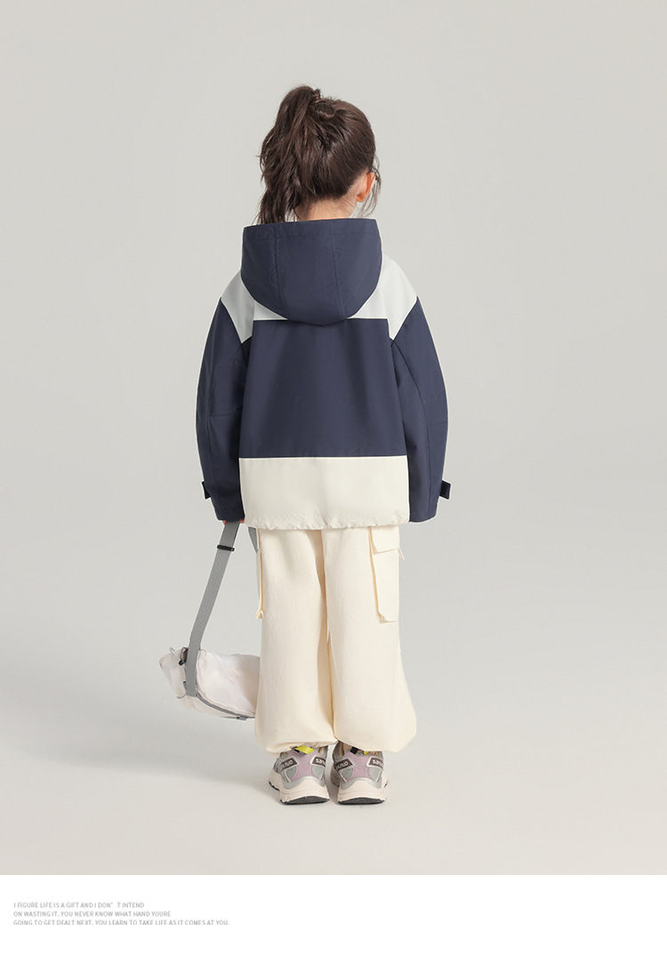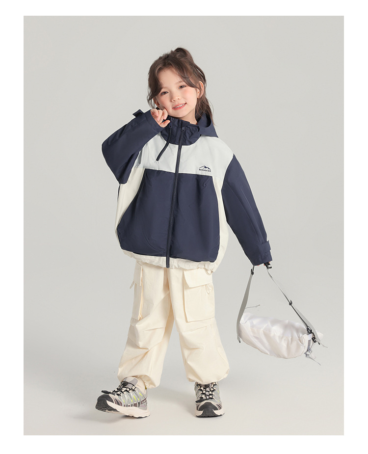 Pudding Haru 여아 코트 봄 신작 남성 및 여성용 컬러 블록 아웃도어 후드 코트
