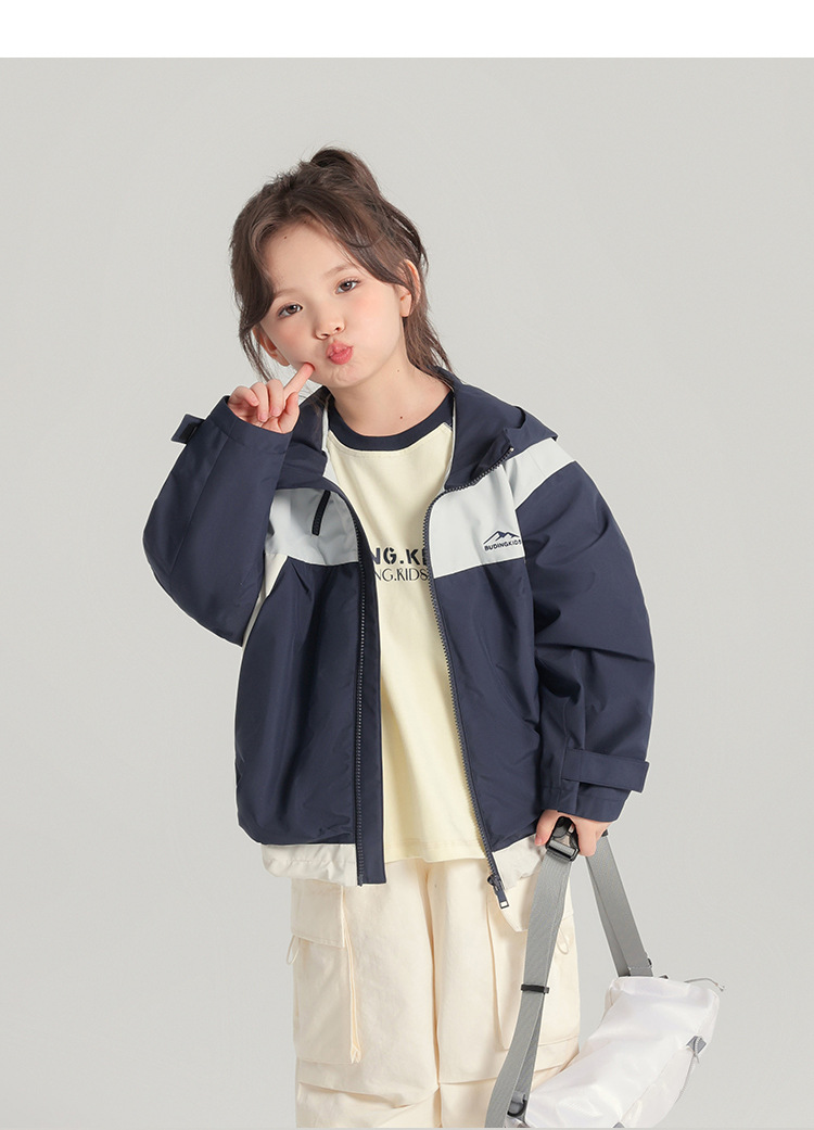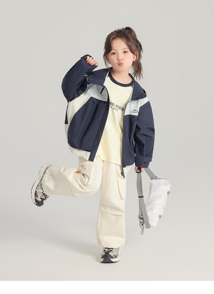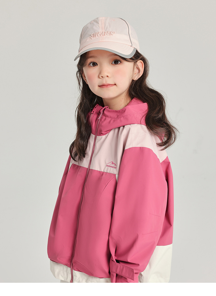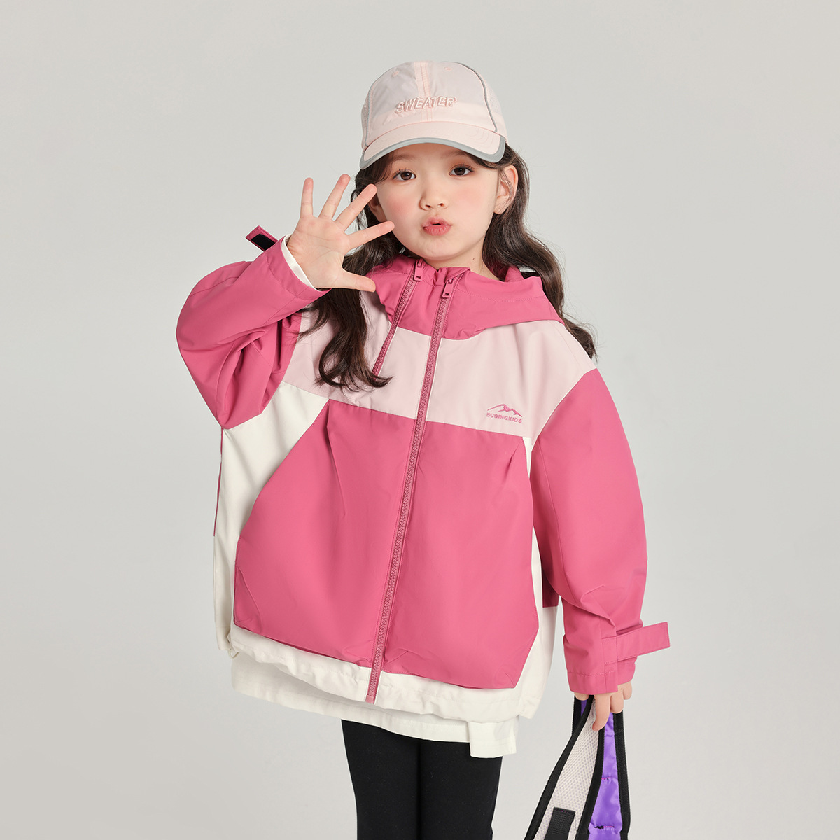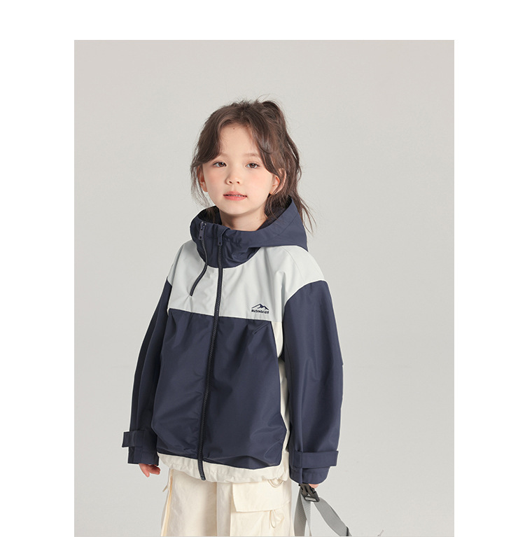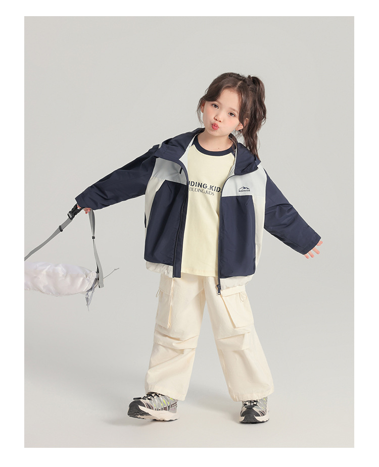 Pudding Haru 여아 코트 봄 신작 남성 및 여성용 컬러 블록 아웃도어 후드 코트
