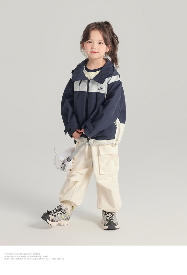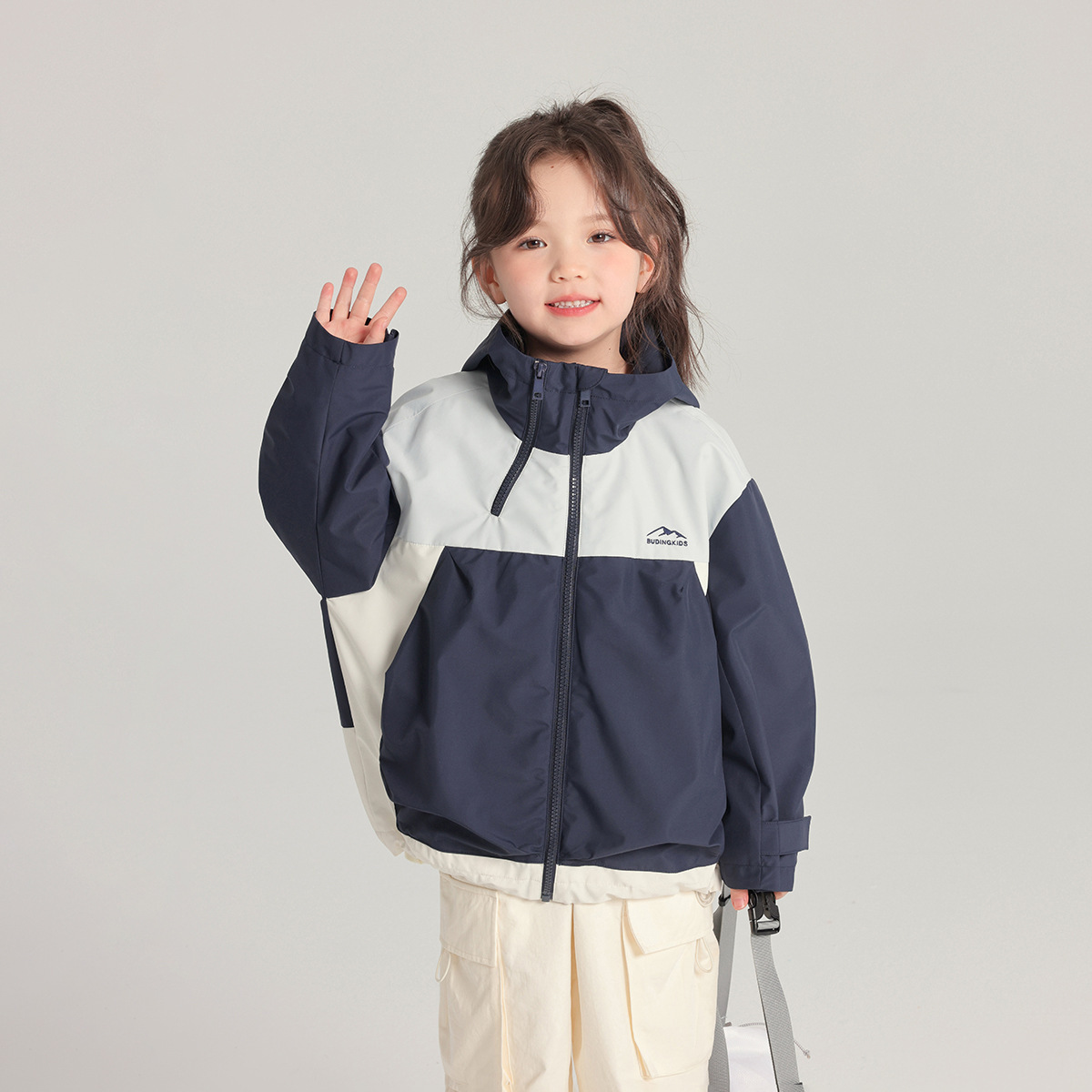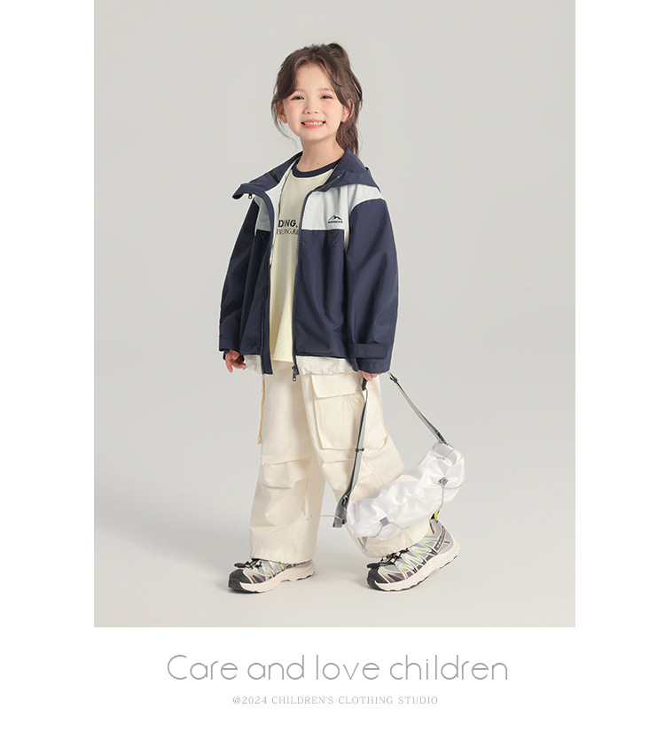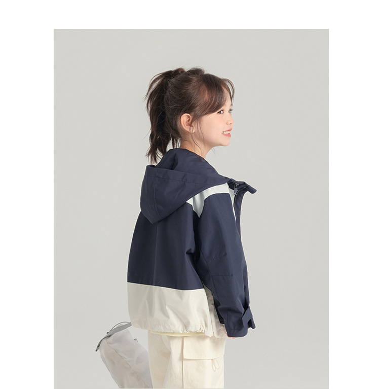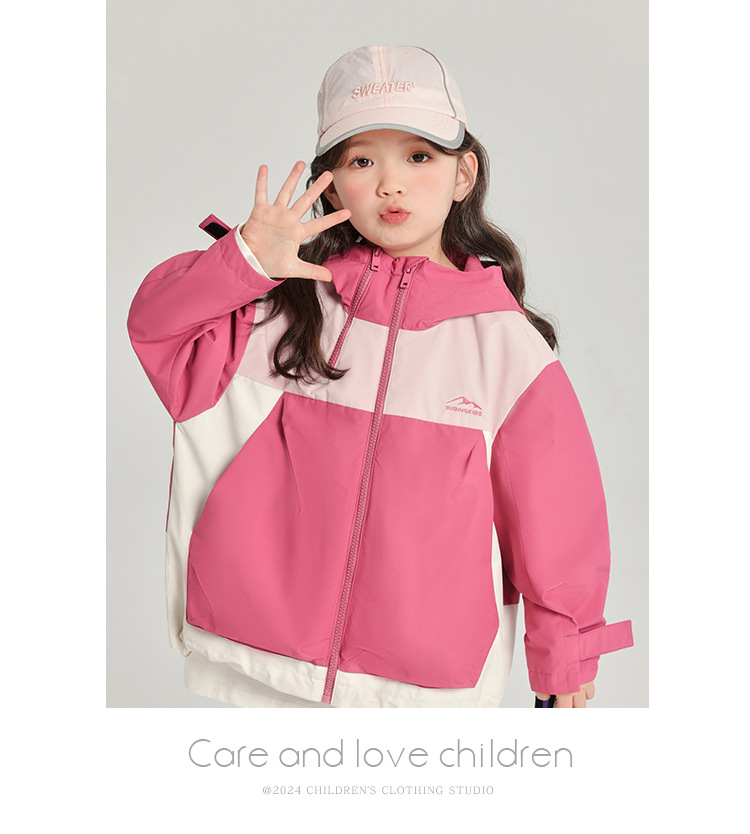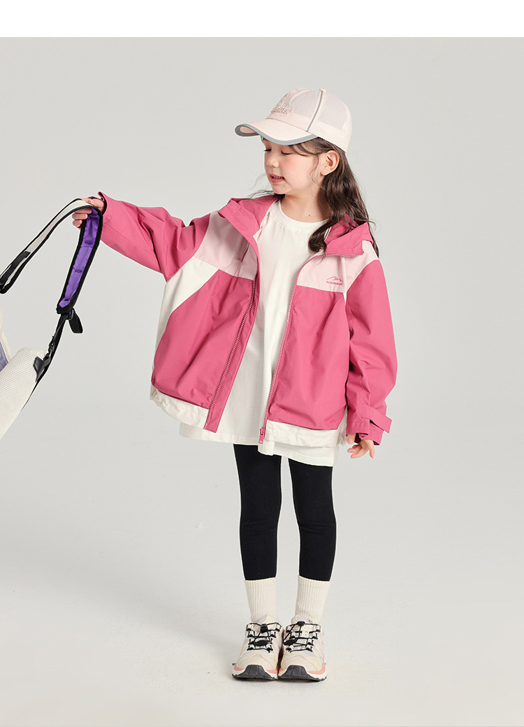 Pudding Haru 여아 코트 봄 신작 남성 및 여성용 컬러 블록 아웃도어 후드 코트