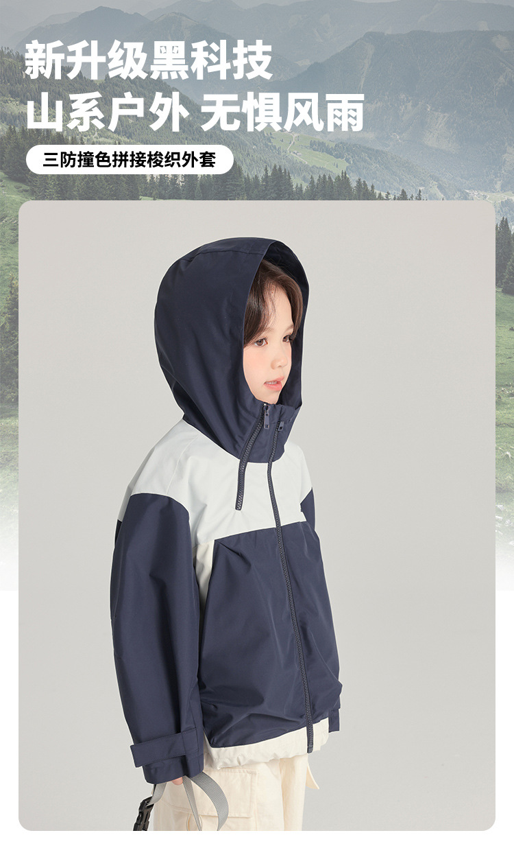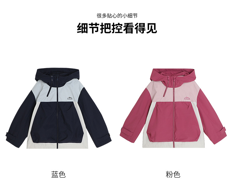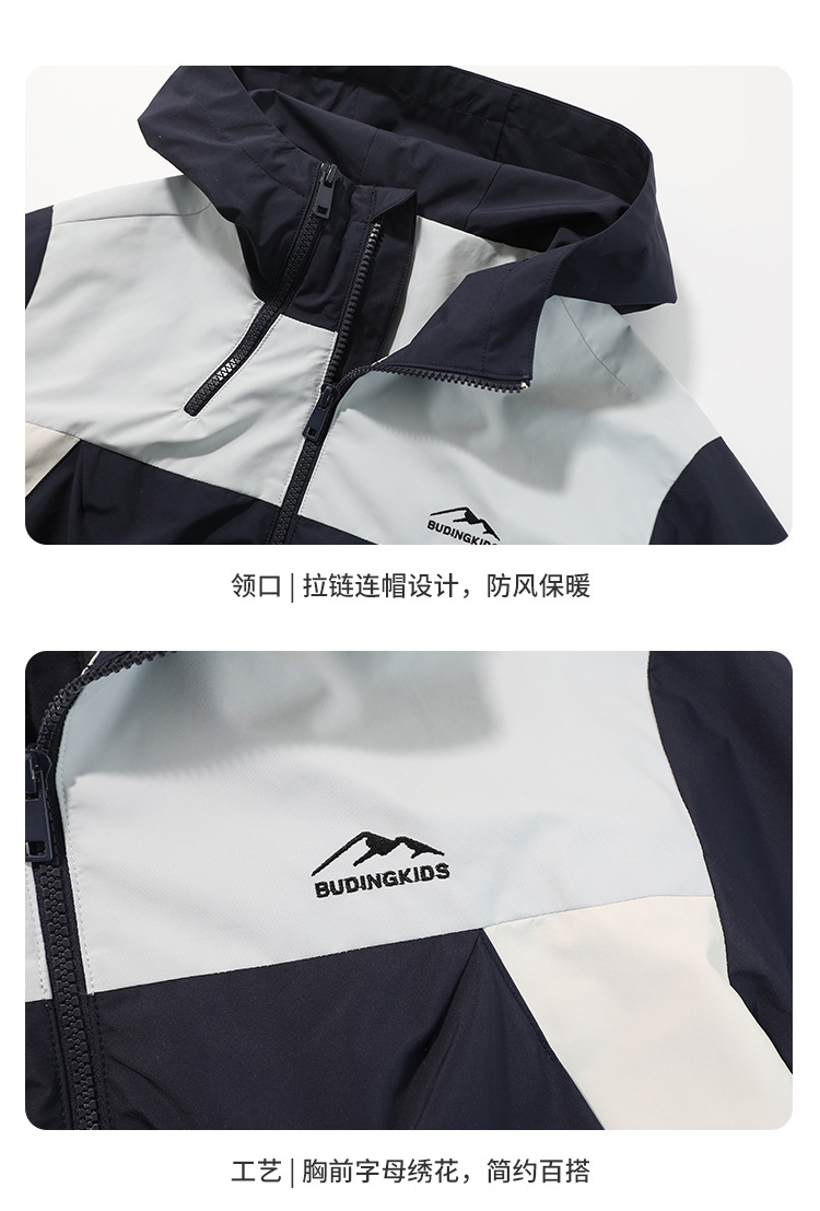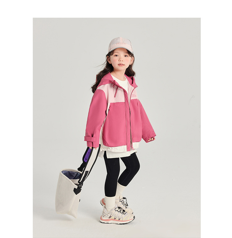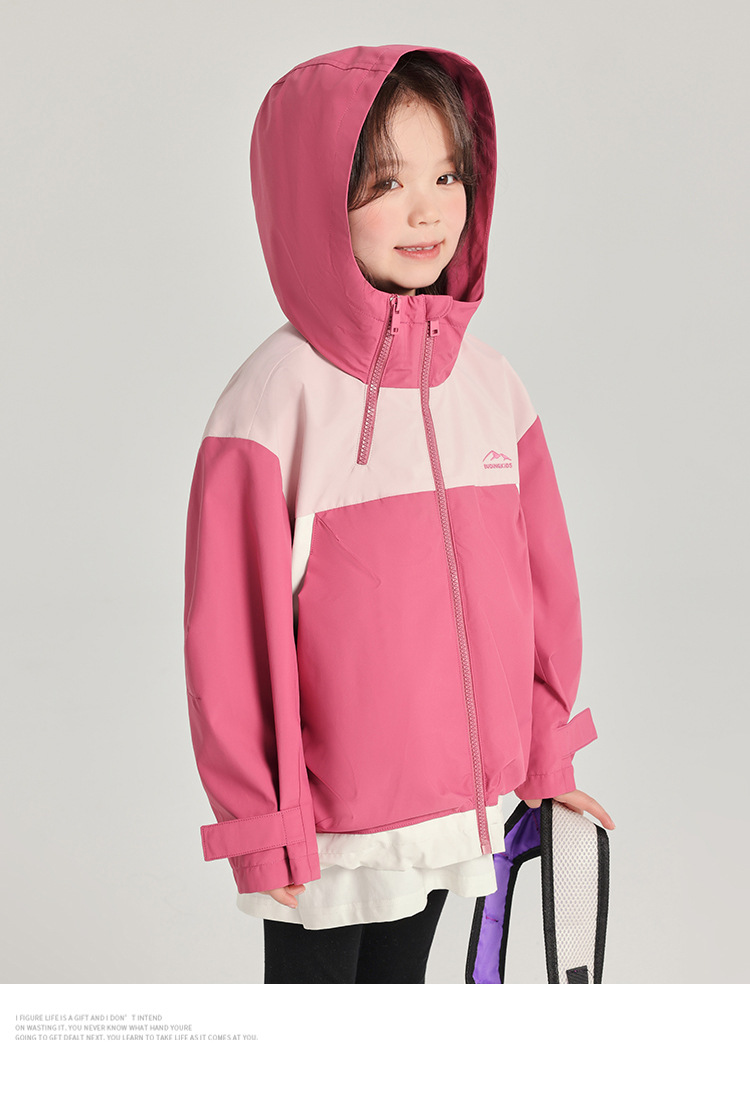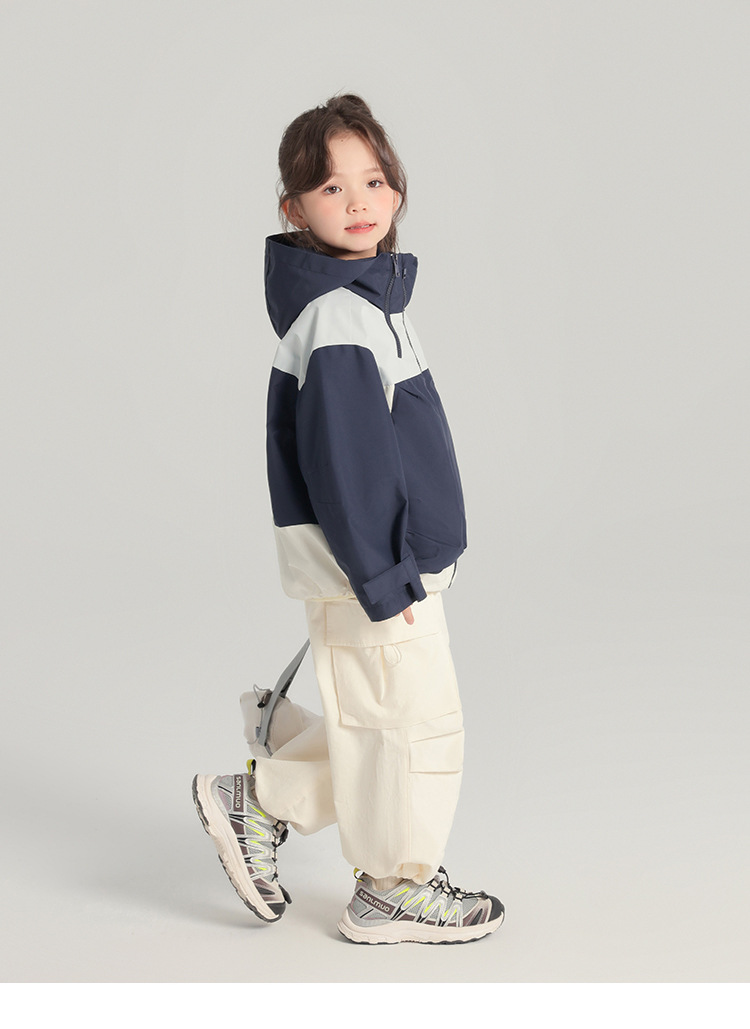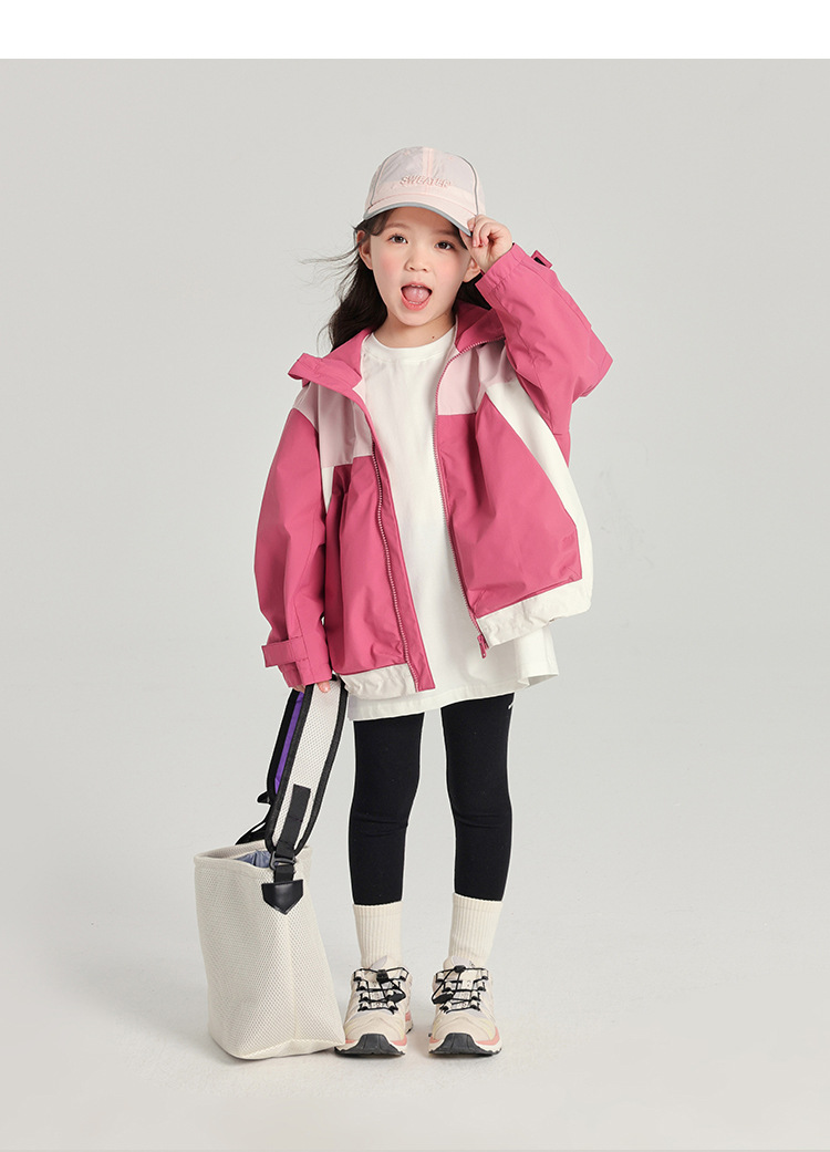 Pudding Haru 여아 코트 봄 신작 남성 및 여성용 컬러 블록 아웃도어 후드 코트