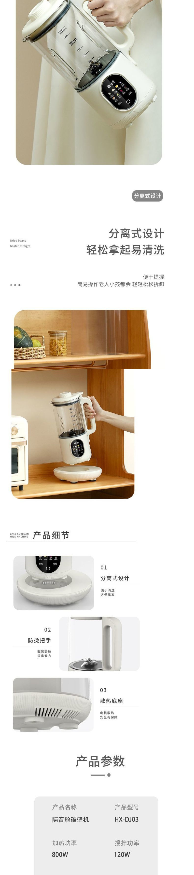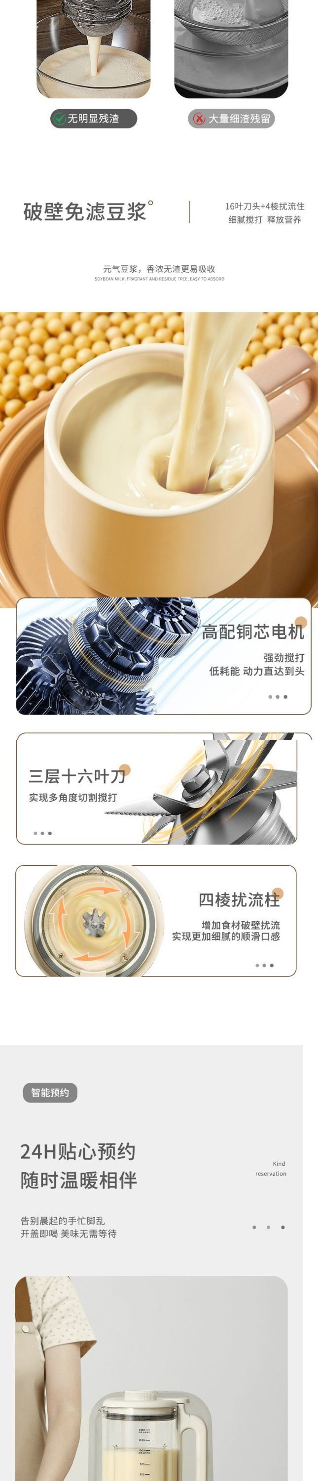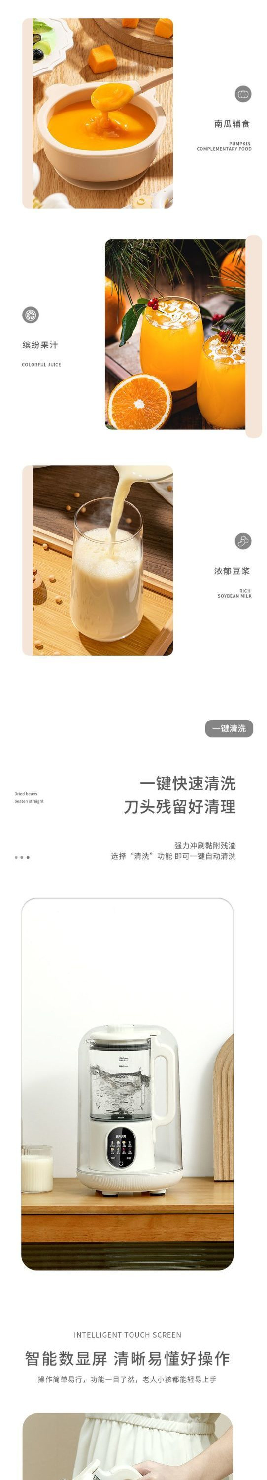 벽파괴기, 저소음, 지능형, 다기능, 소형 가정용 주스 및 식품 보충제, 완전 자동 요리 두유 기계