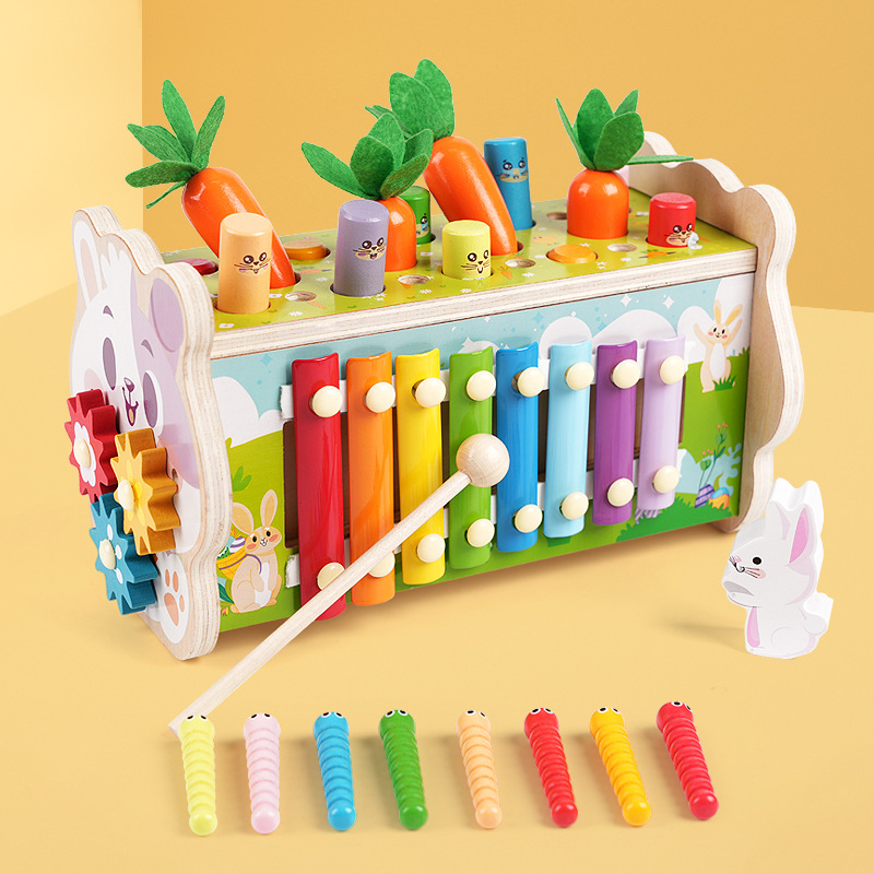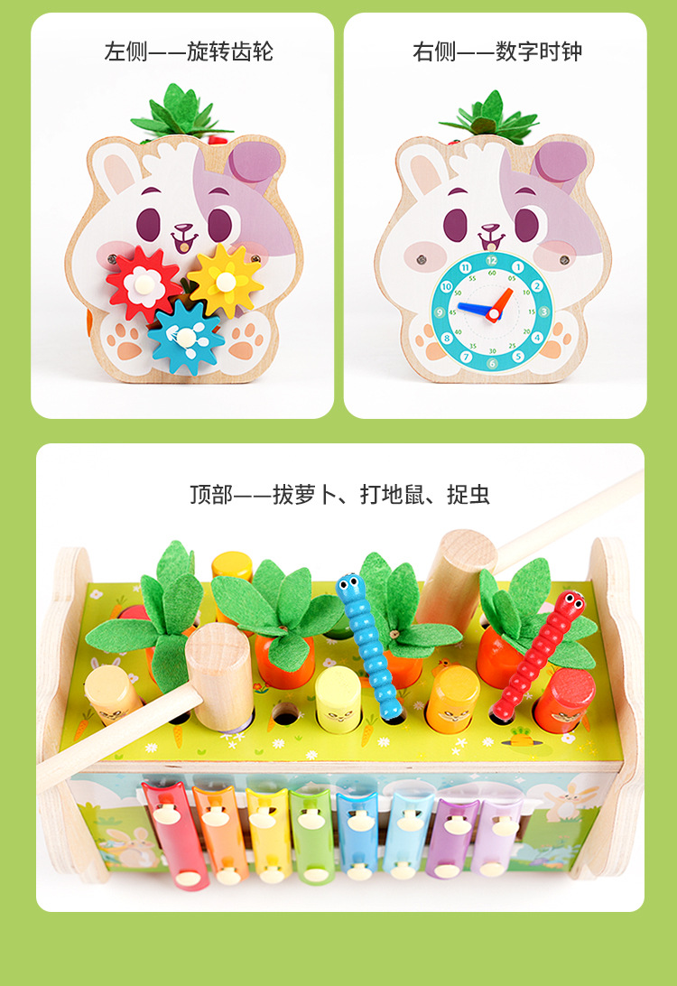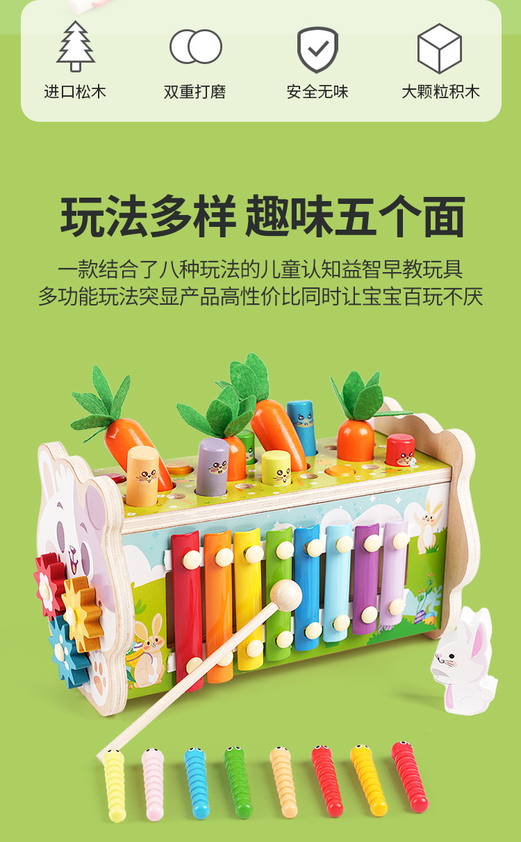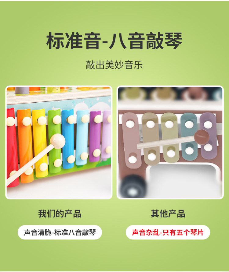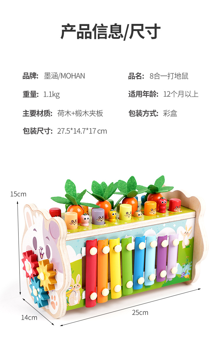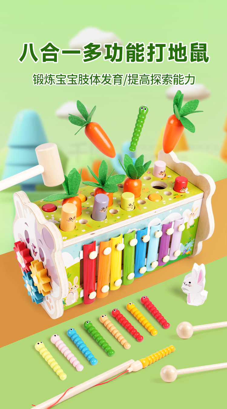 어린이 교육 장난감 8-in-1 두더지 잡기, 다기능 나무 두드리는 피아노 낚시 1-3세 아기 장난감스토어 가기