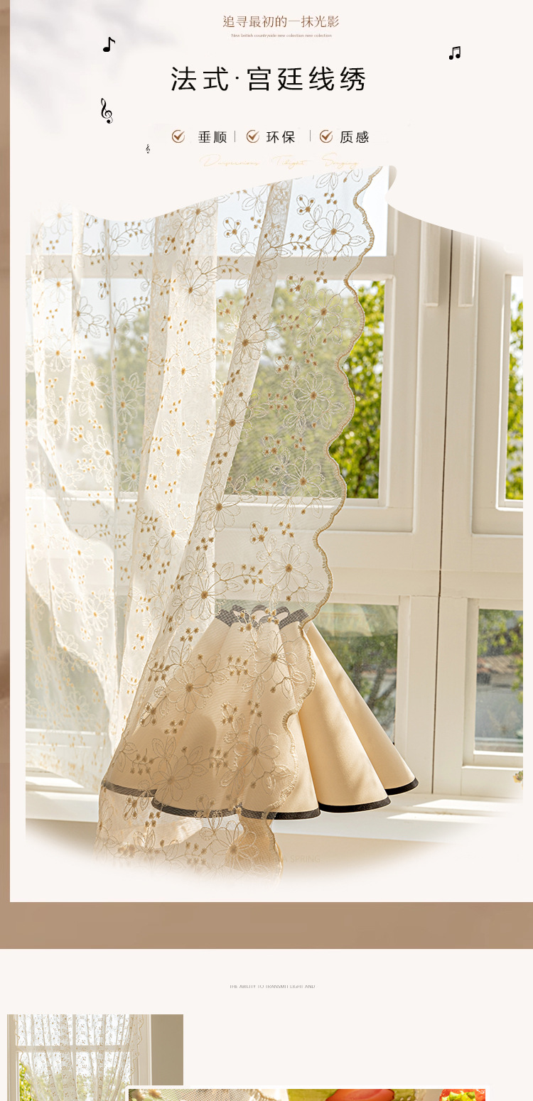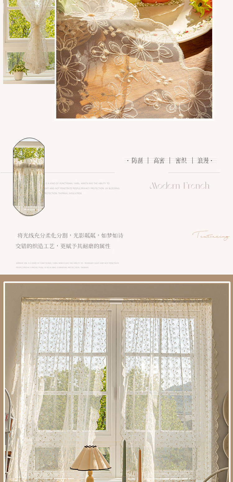 펀칭 없는 거즈커튼, 짧은 커튼, 프렌치 크림색 플로어 창, 작은 창문, 목가적 도어커튼, 칸막이커튼, 레스토랑 커튼스토어 가기