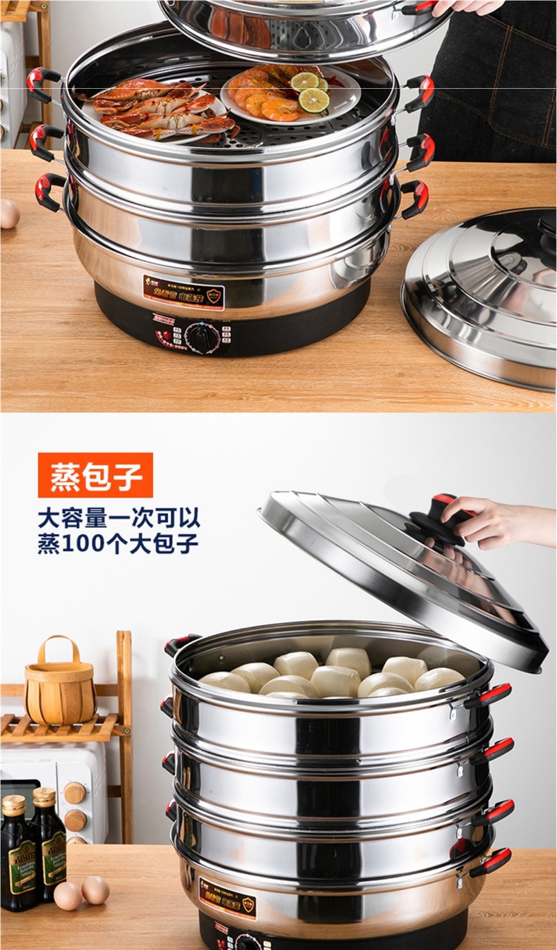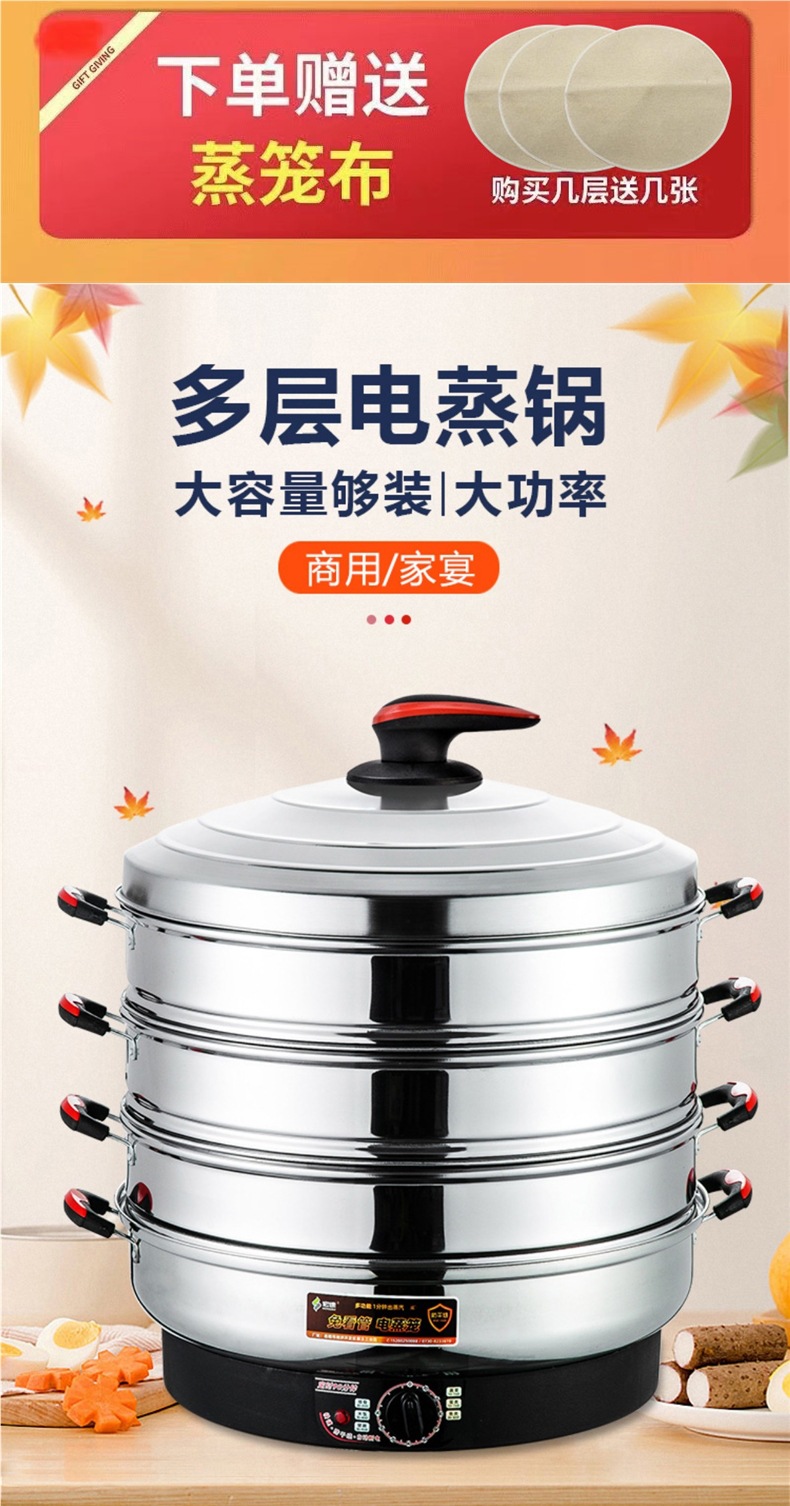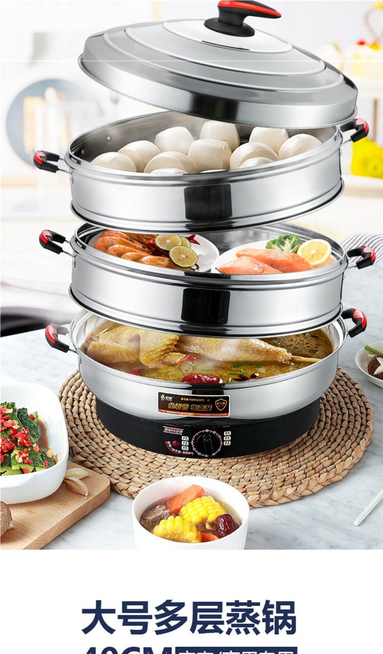 다기능 대용량 전기 찜통 스테인레스 스틸 다층 찜기 가정용 및 상업용 47CM스토어 가기