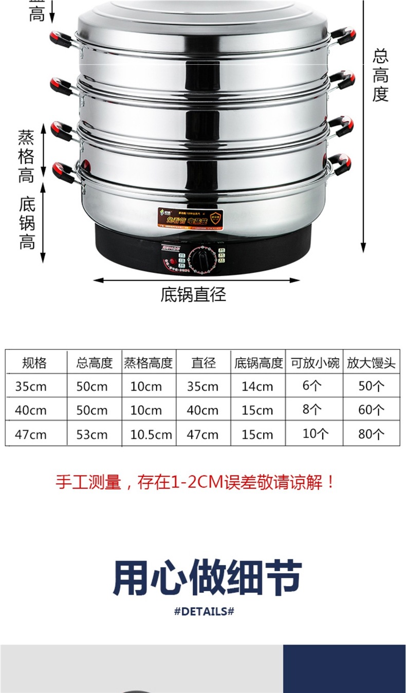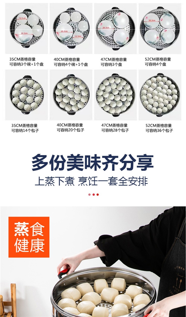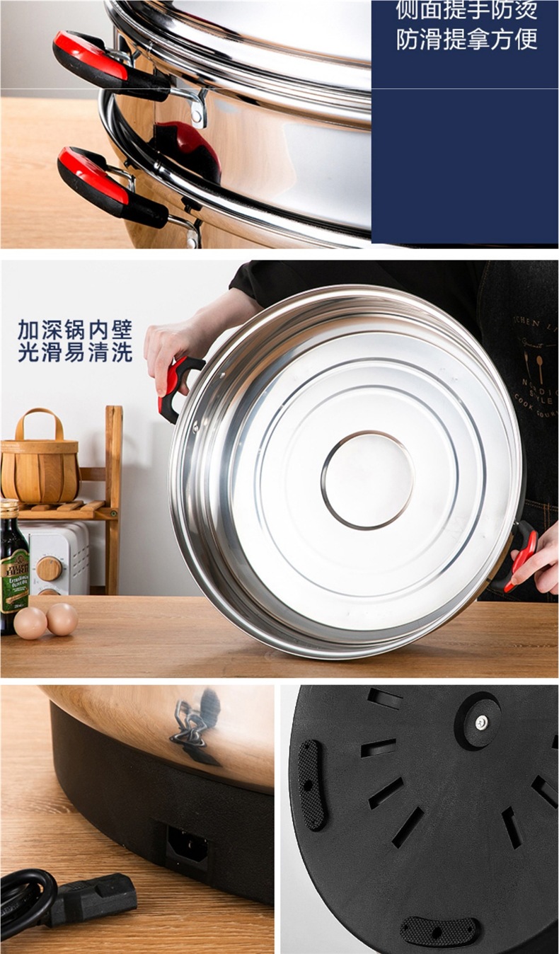 다기능 대용량 전기 찜통 스테인레스 스틸 다층 찜기 가정용 및 상업용 47CM스토어 가기