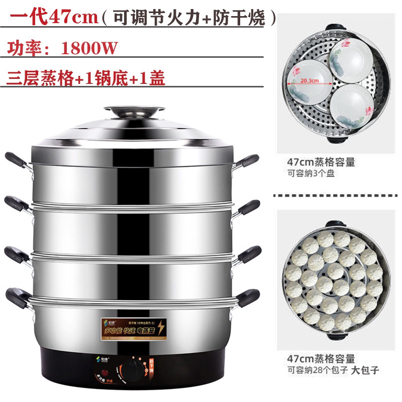 다기능 대용량 전기 찜통 스테인레스 스틸 다층 찜기 가정용 및 상업용 47CM