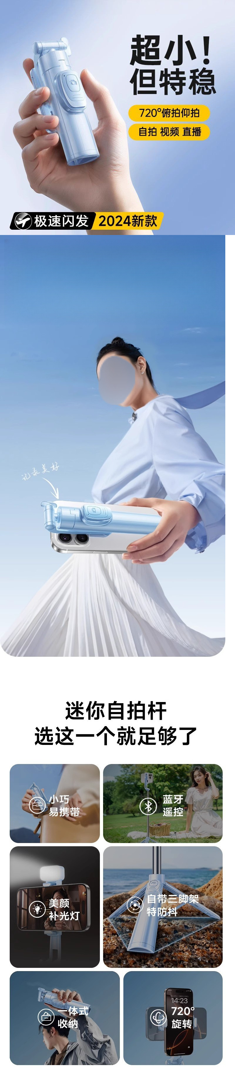 2025 인터넷 연예인 슈퍼 미니 셀카봉 여행 휴대용 바닥 삼각대 휴대폰 사진 유물 360 회전스토어 가기