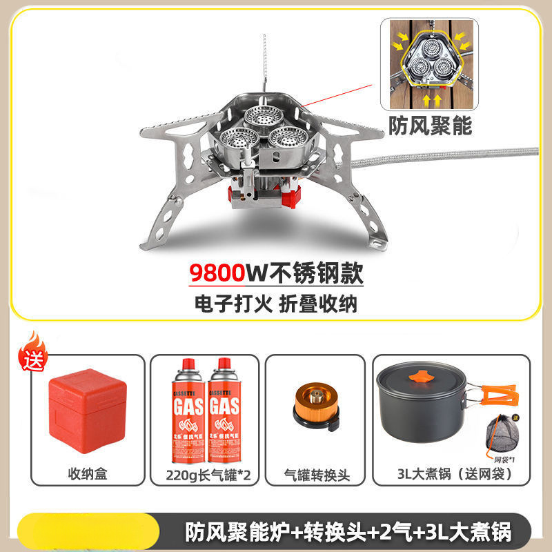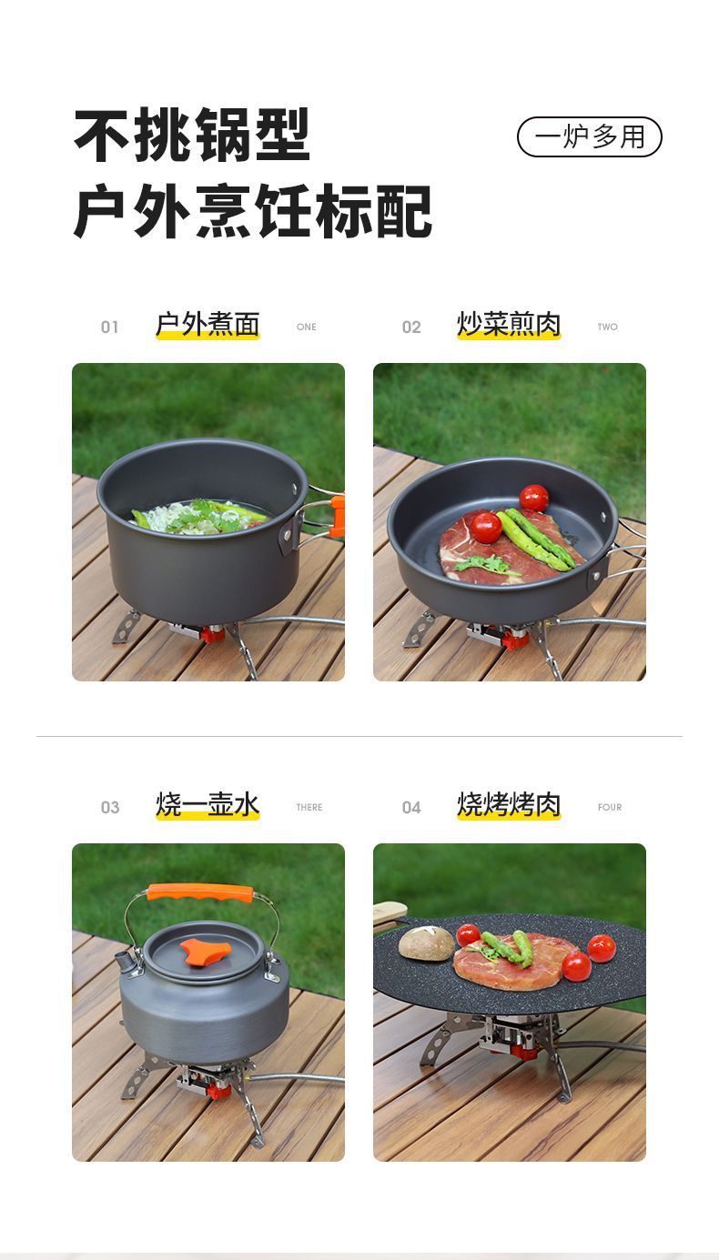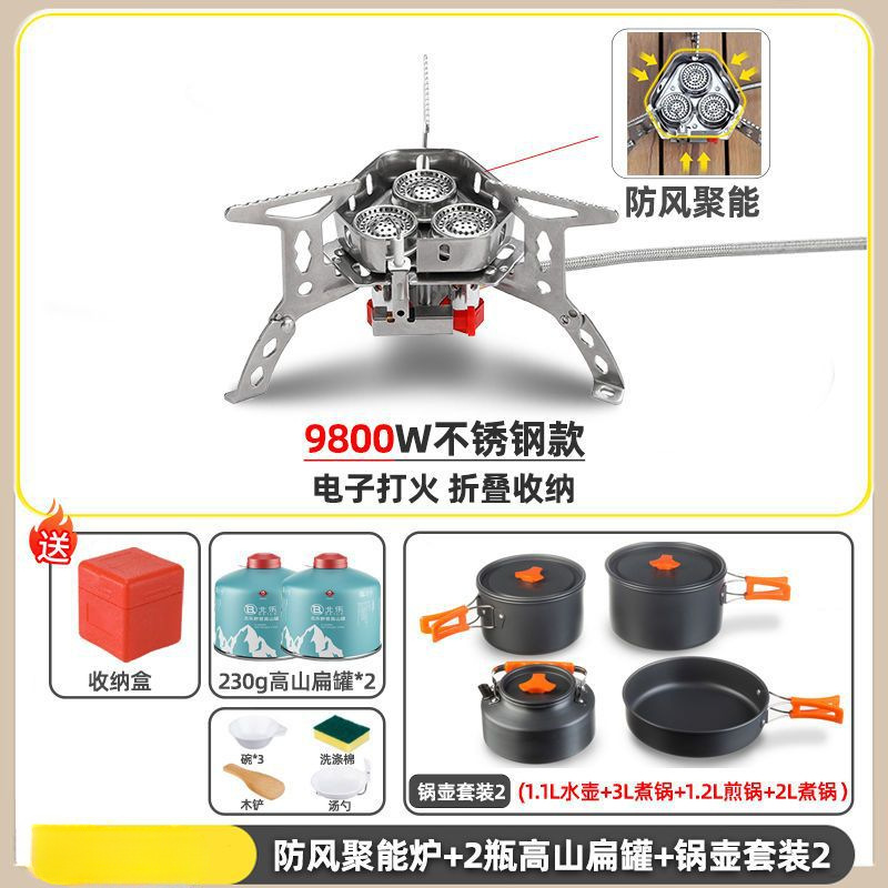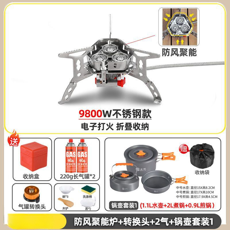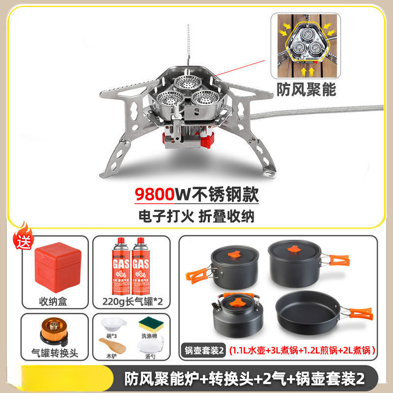 • ] 12800W 동난로 [물이 끓는 데 단 1분 소요 - [방풍 에너지 수집난로] + 변환헤드 + 가스 2개 + 냄비와 주전자 세트 2