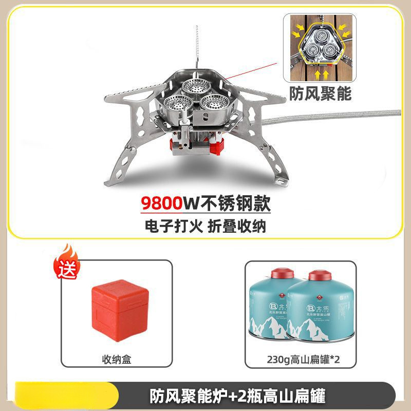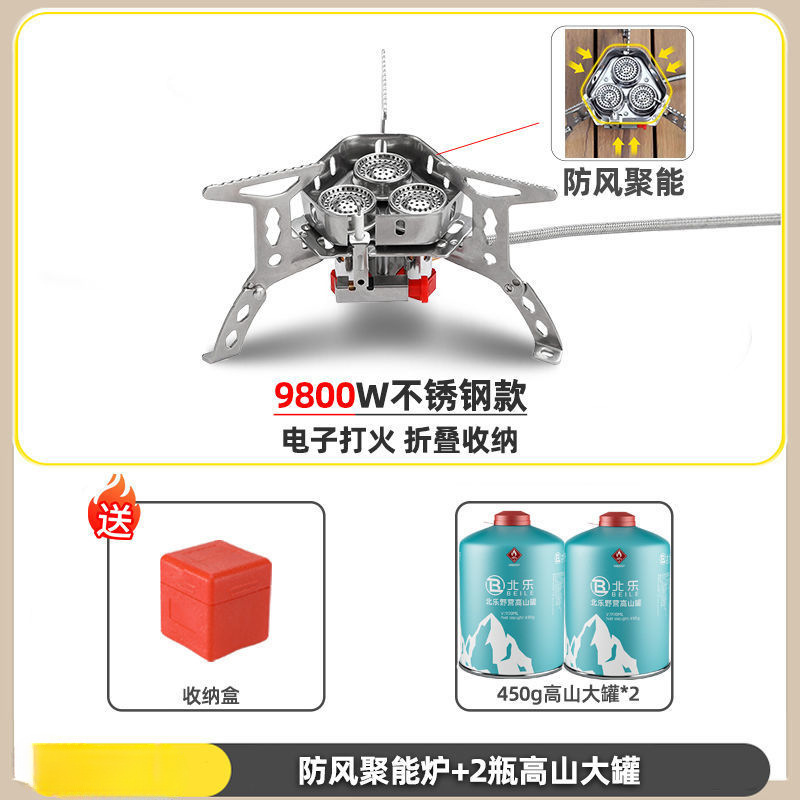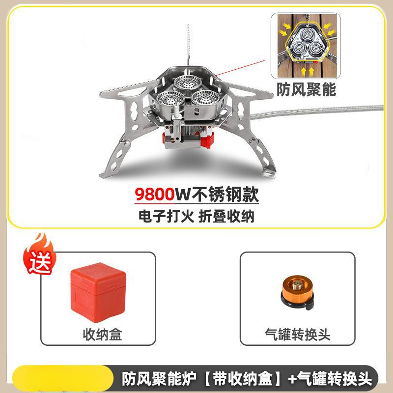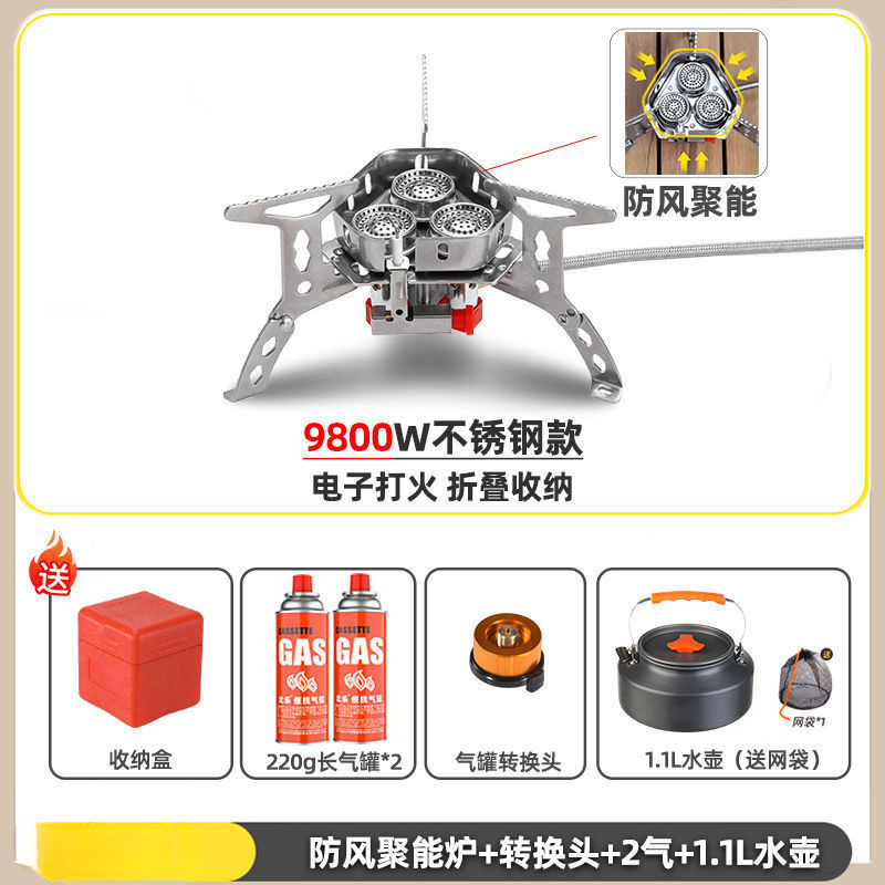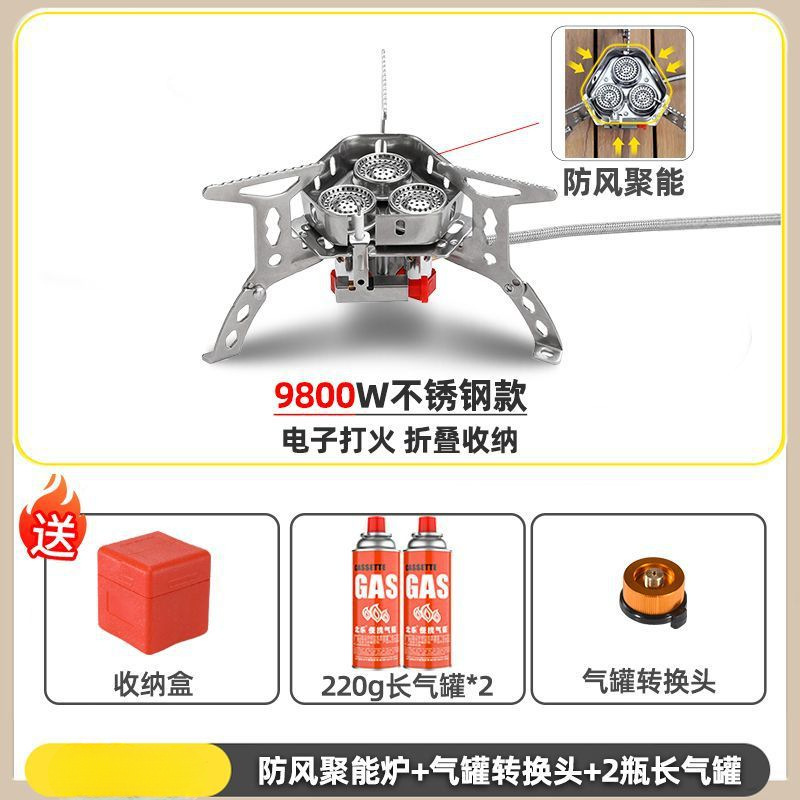 • ] 9800W 강철버너 [물이 끓는 데 단 3분 소요 - [방풍 에너지 수집로] + 가스탱크 변환 헤드 + 긴 가스탱크 2병