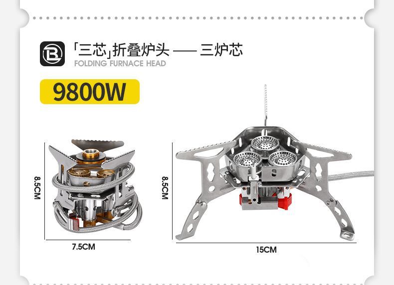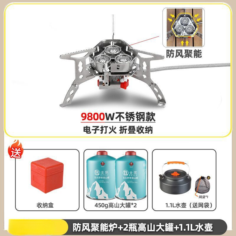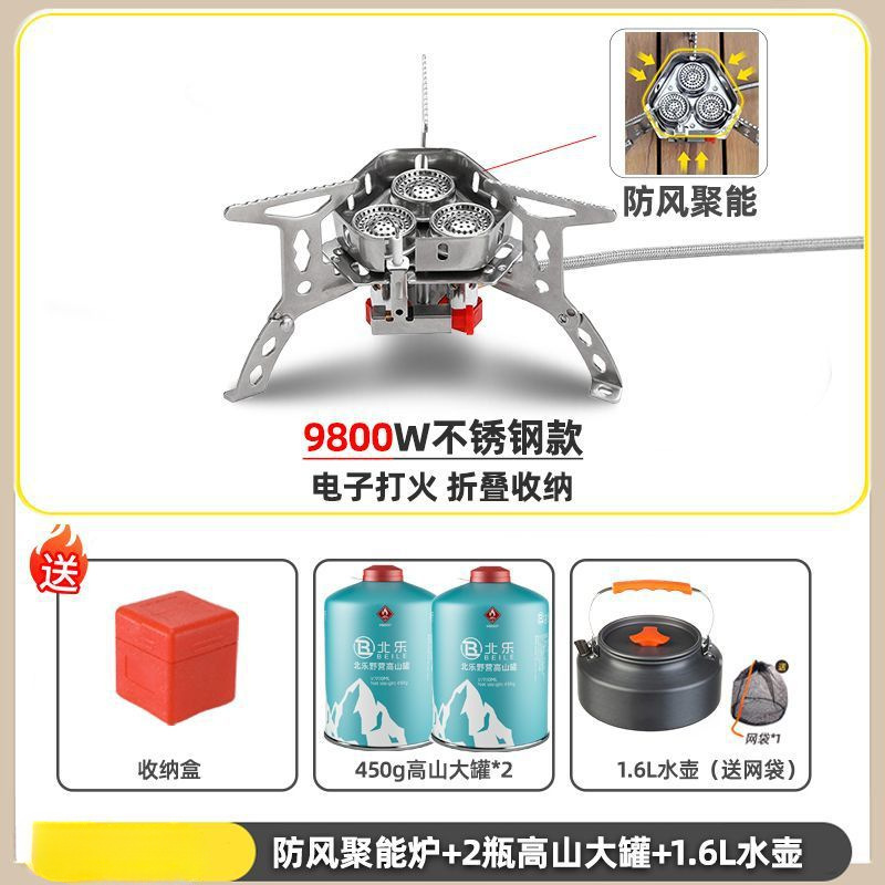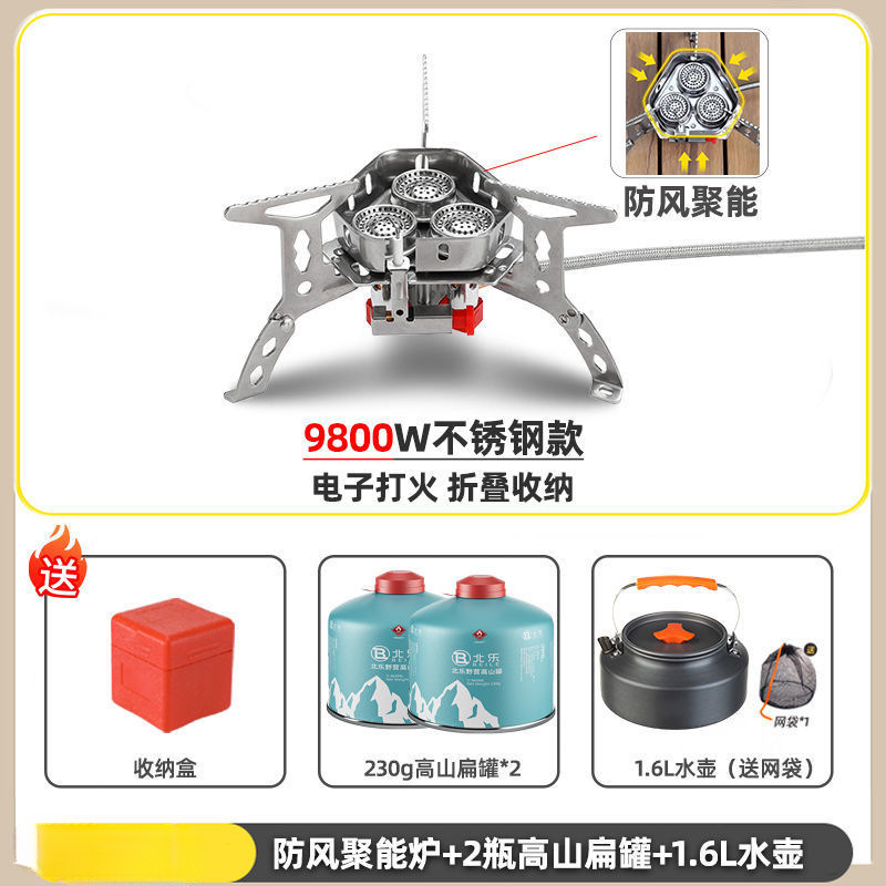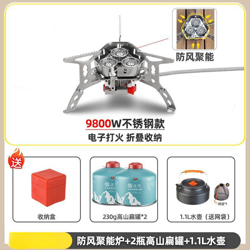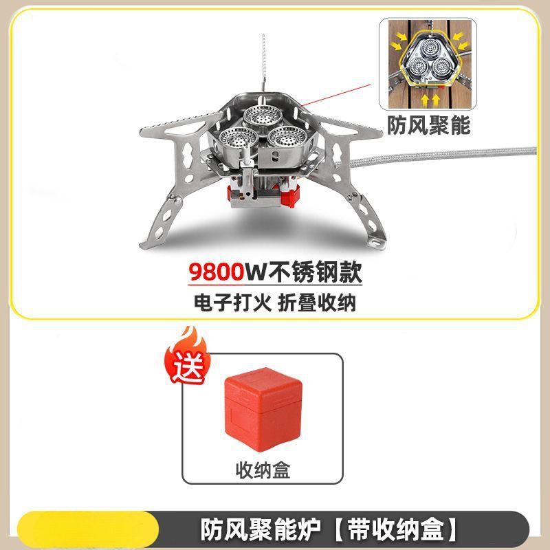• ] 9800W 강철버너 [물이 끓는 데 단 3분 소요 - [방풍 에너지 수집로] + 가스탱크 변환 헤드 + 긴 가스탱크 2병