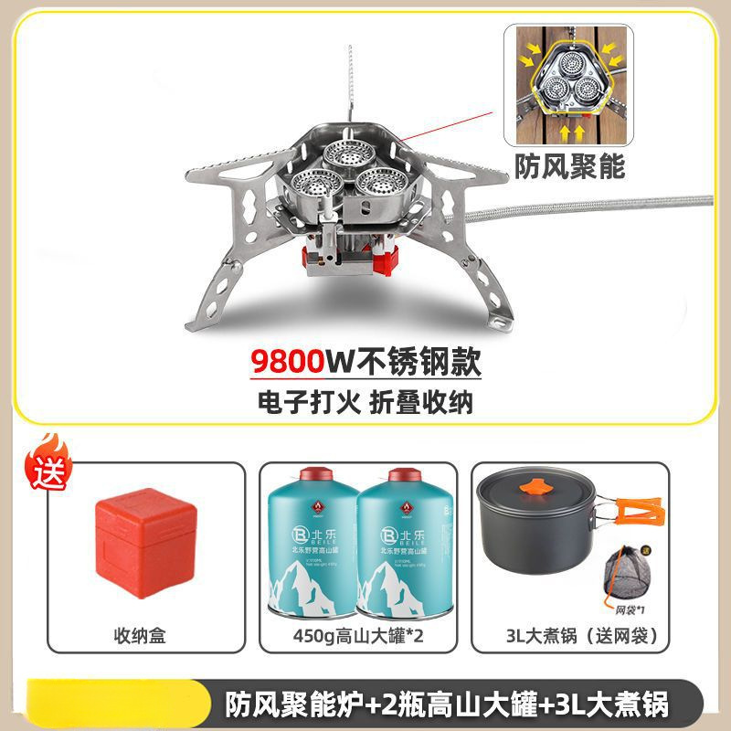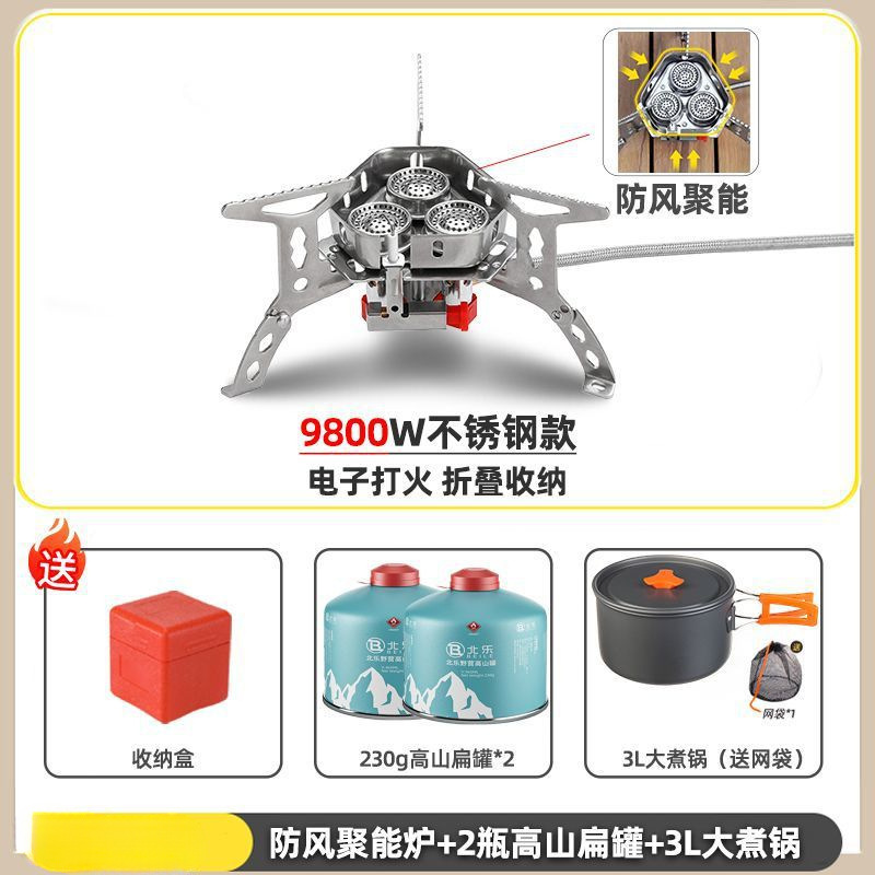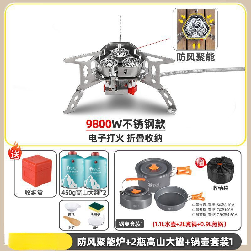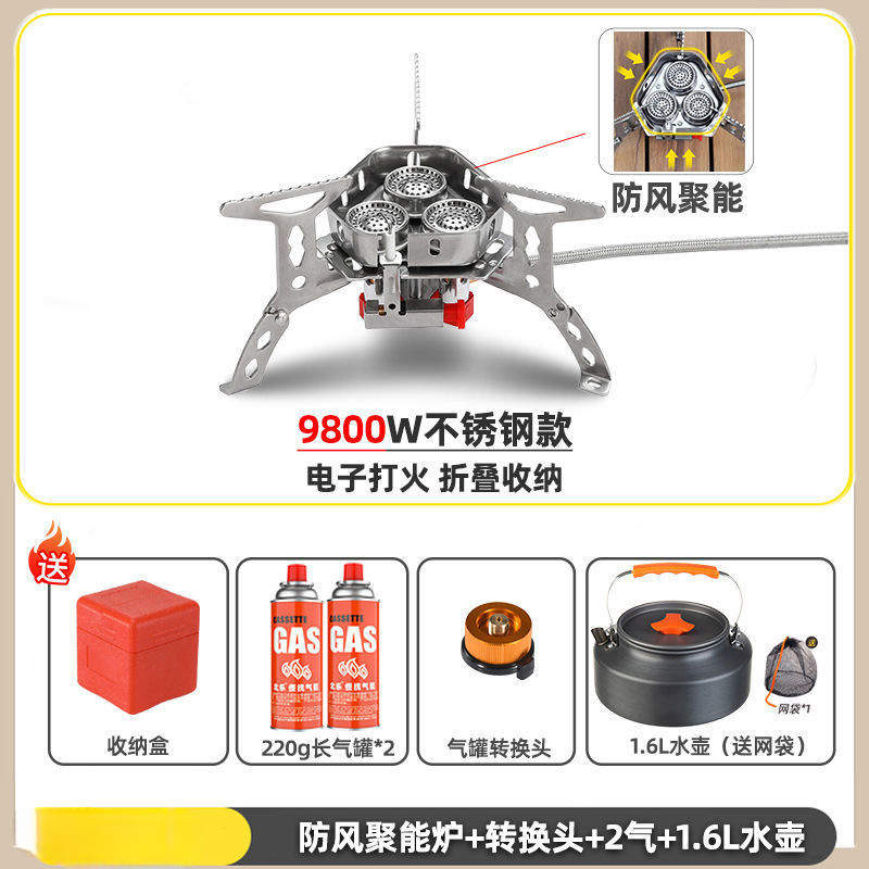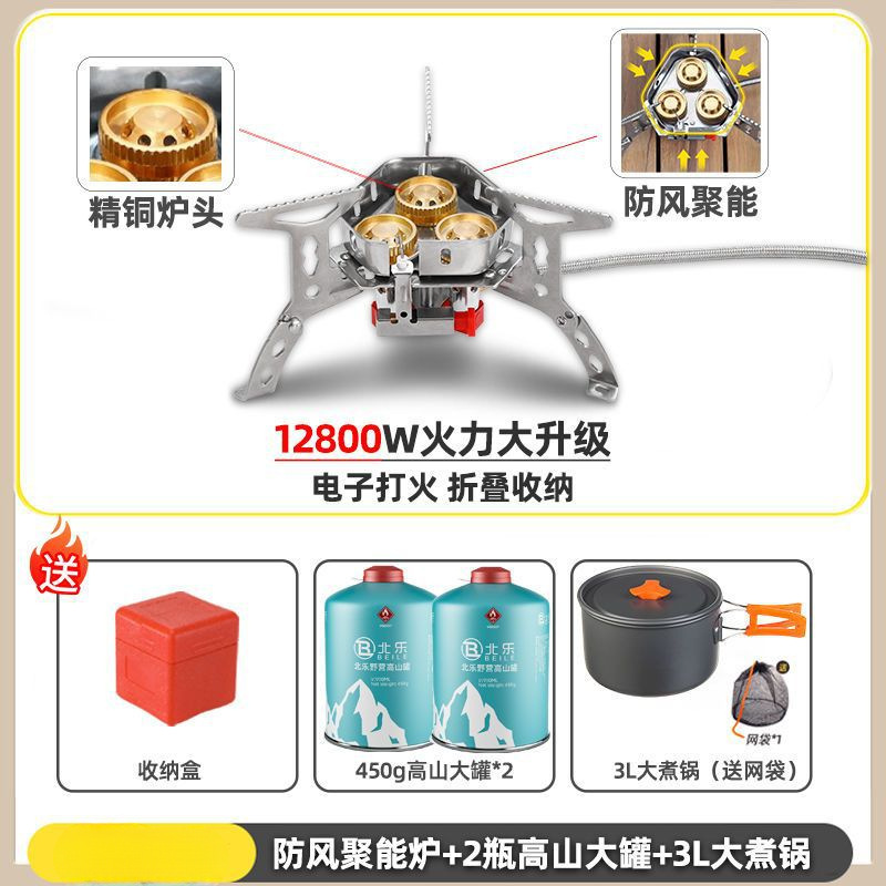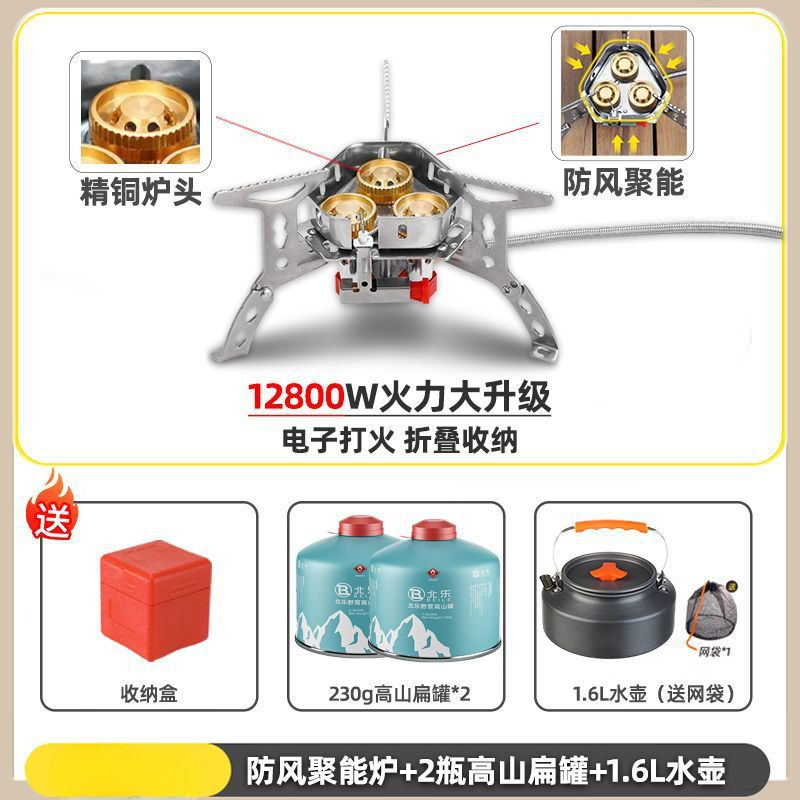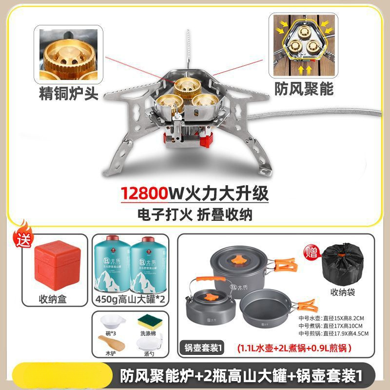 • ] 12800W 동난로 [물이 끓는 데 단 1분 소요 - [방풍 에너지 수집난로] + 변환헤드 + 가스 2개 + 냄비와 주전자 세트 1