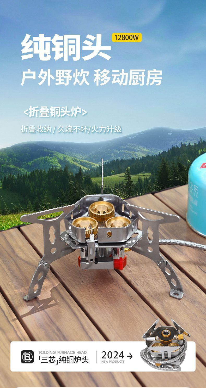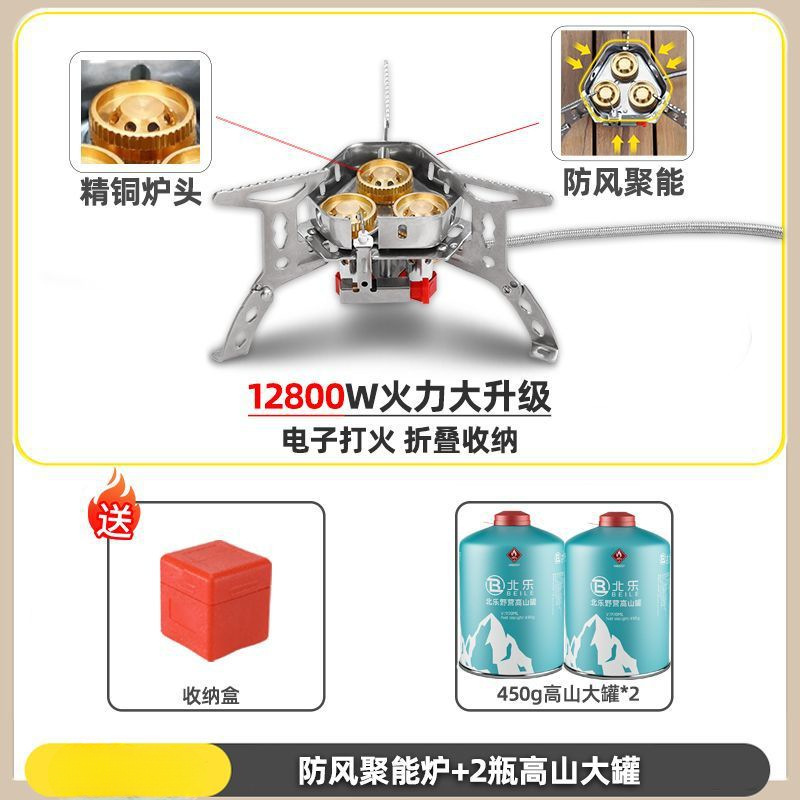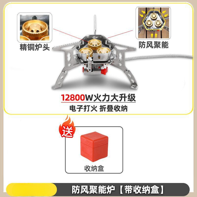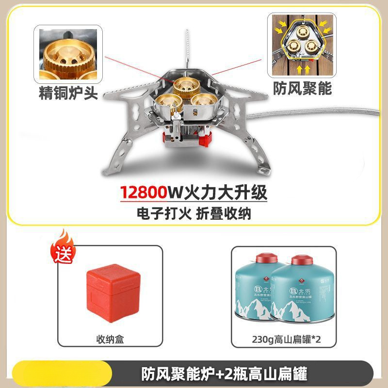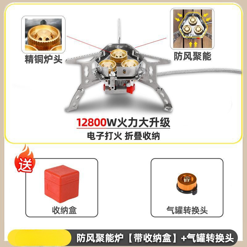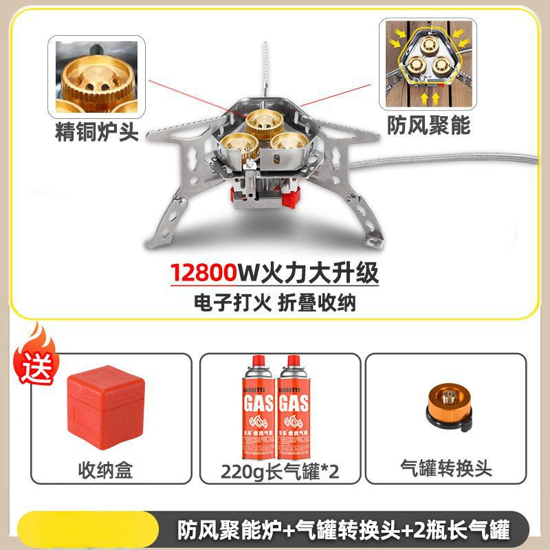 • ] 12800W 동난로 [물이 끓는 데 단 1분 소요 - [방풍 에너지 수집난로] + 가스탱크 변환헤드 + 긴 가스탱크 2병