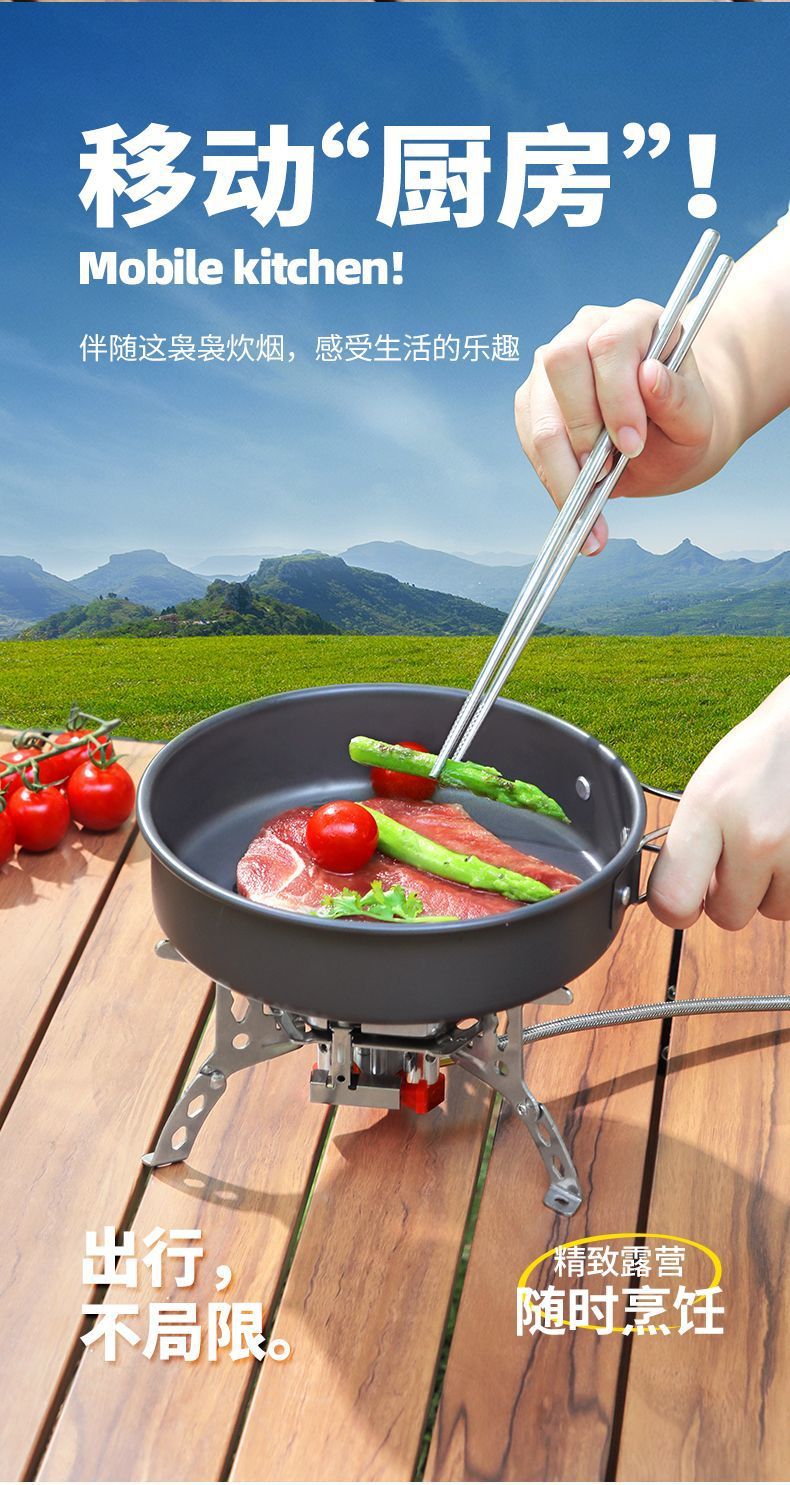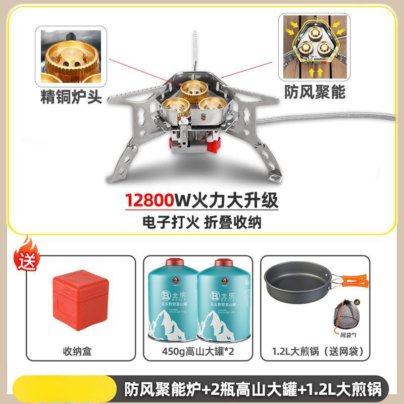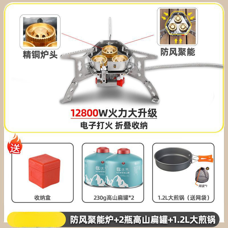 • ] 12800W 동난로 [물이 끓는 데 단 1분 소요 - [방풍 에너지 수집난로] + 변환헤드 + 가스 2개 + 프라이팬 1.2개