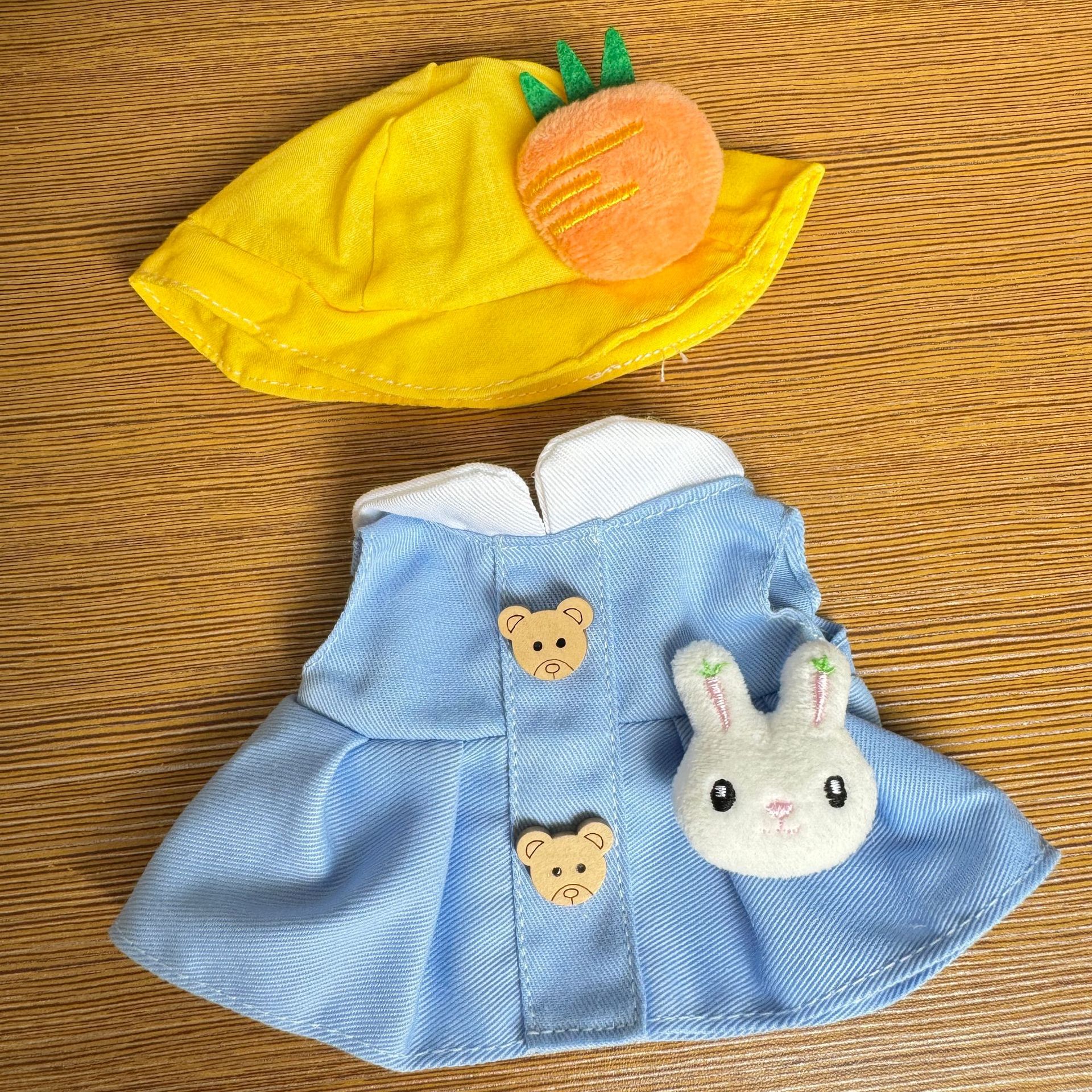 • 펜던트 주름진 노란색 스커트 + 파란색 토끼 모자