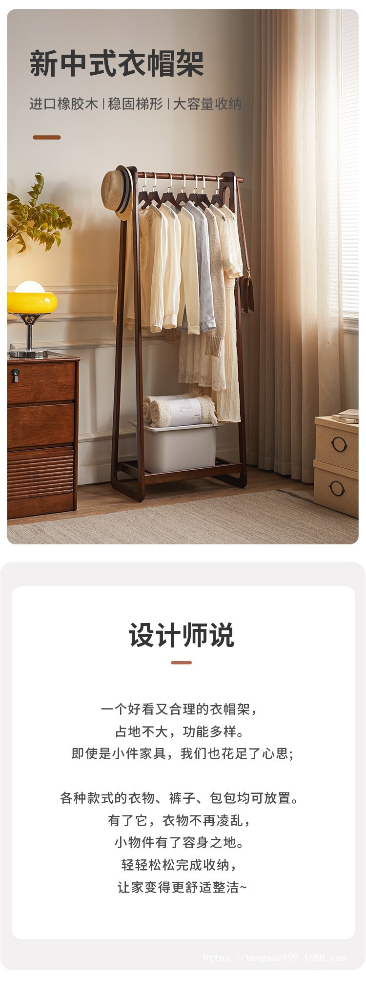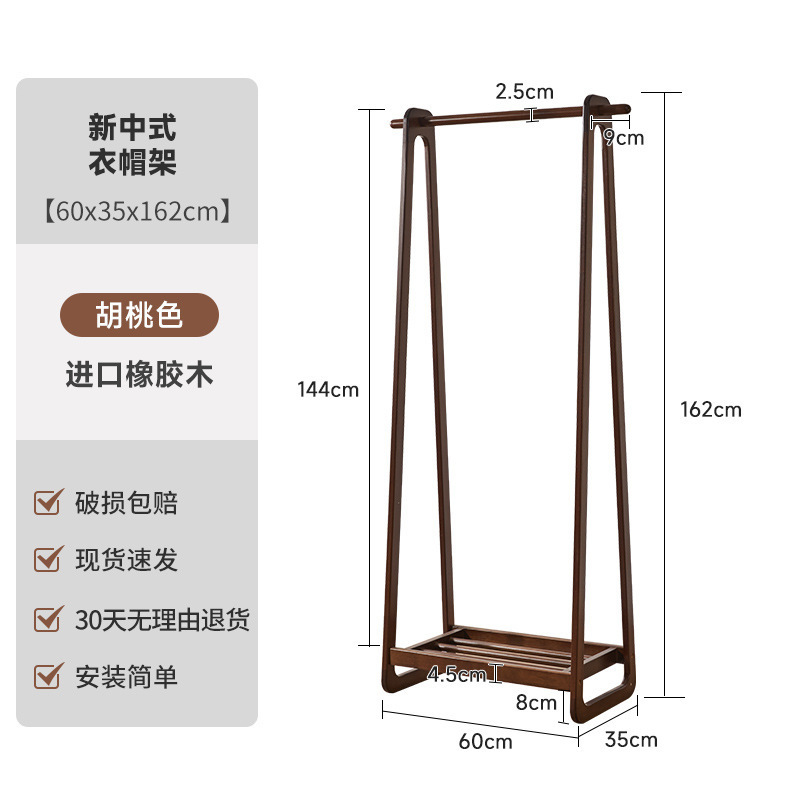 • 고무 나무 새로운 중국 스타일 바닥 스탠딩 코트 랙 호두 색상 80cm