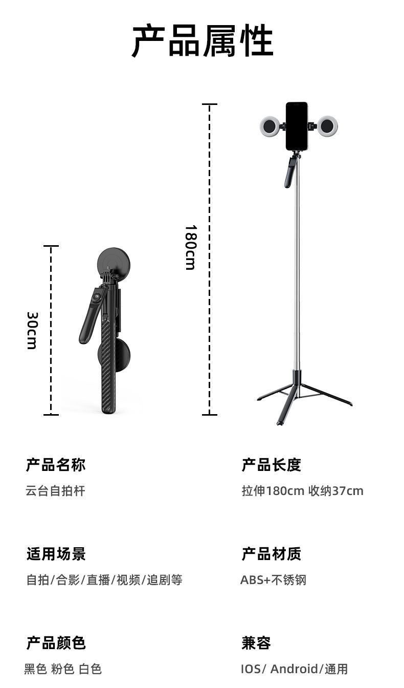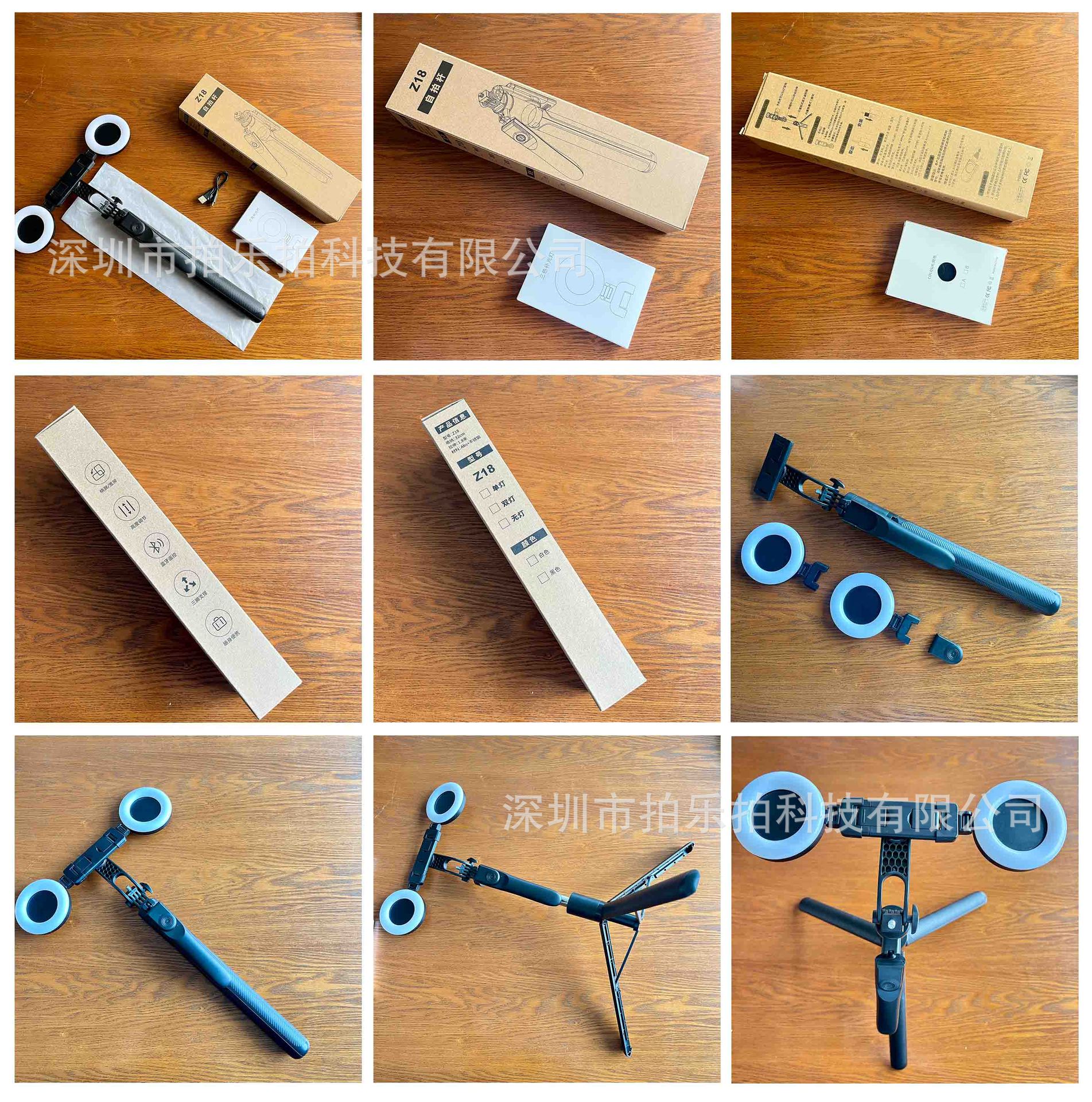 • Z18-싱글 라이트-블랙 [1.8m + 안정적인 촬영 핸들 + 배터리 리모콘 + 대형 원형 조명 1개]