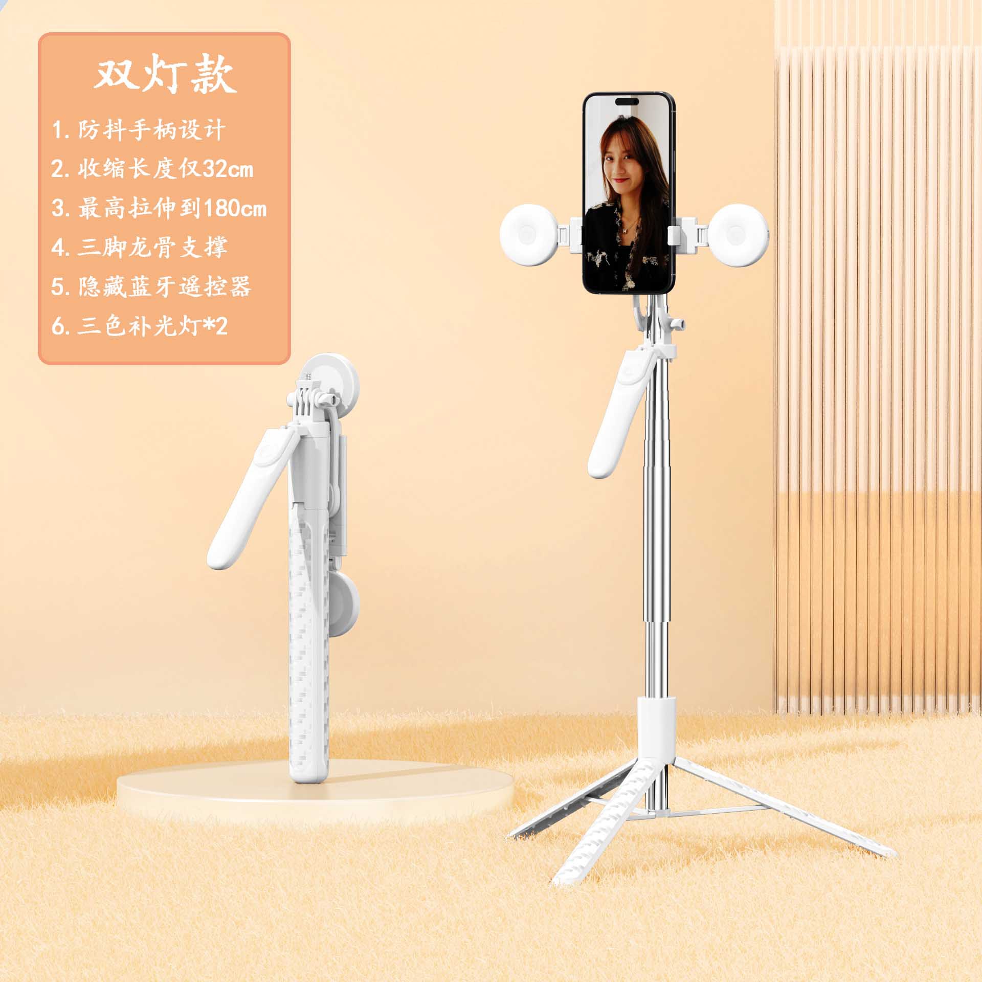 • Z18-더블 라이트-화이트 [ 1.8m + 안정적인 촬영 핸들 + 배터리 리모콘 + 대형 원형 조명 2개]
