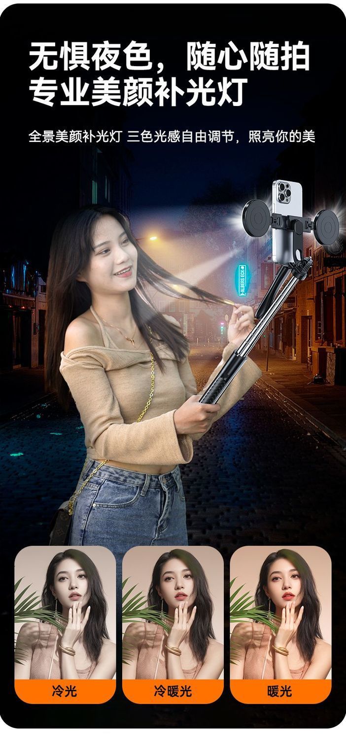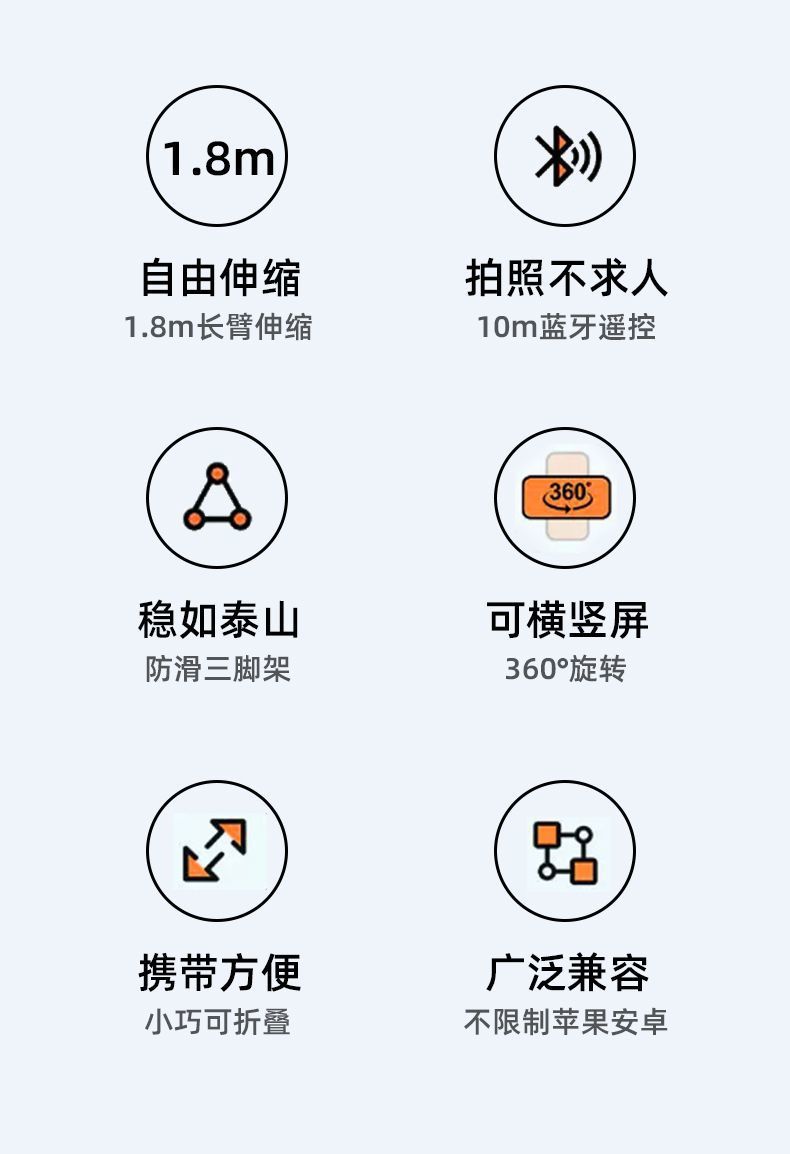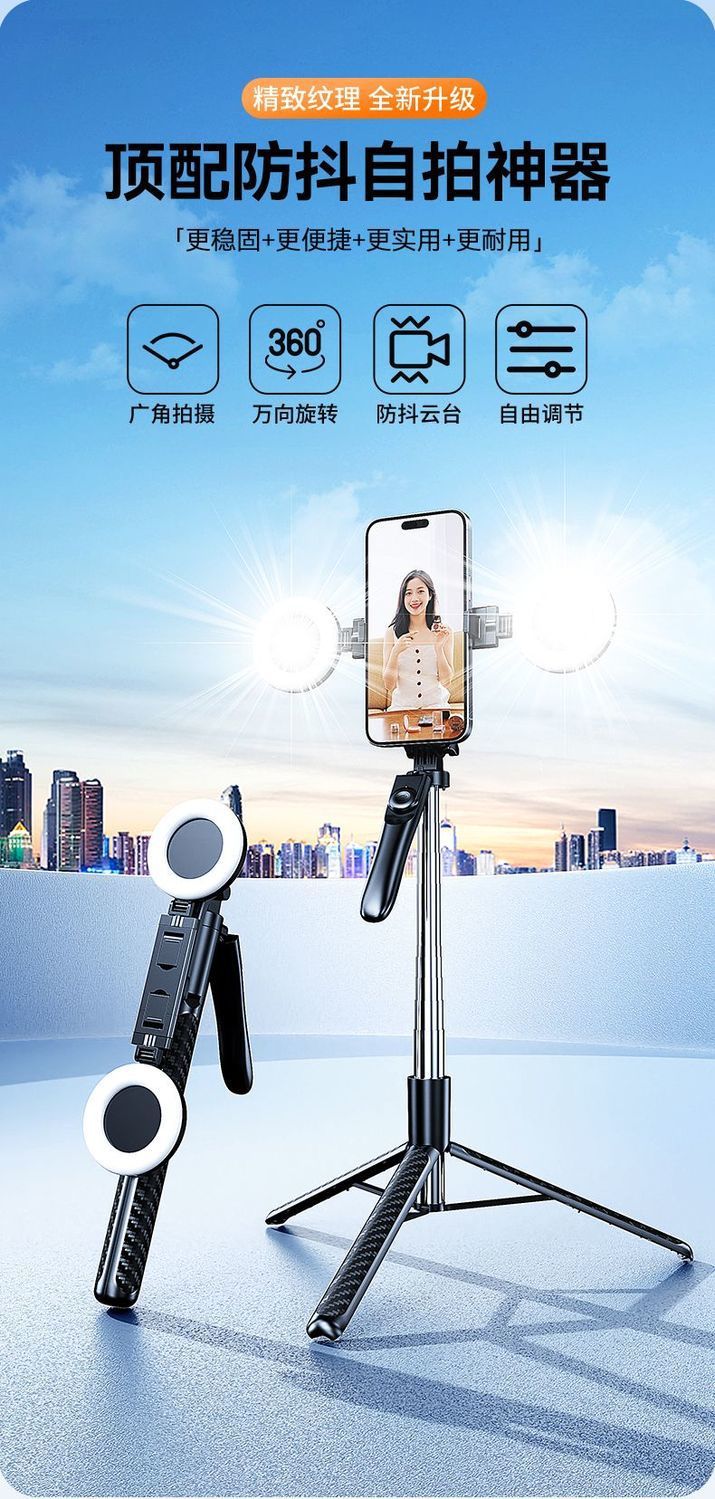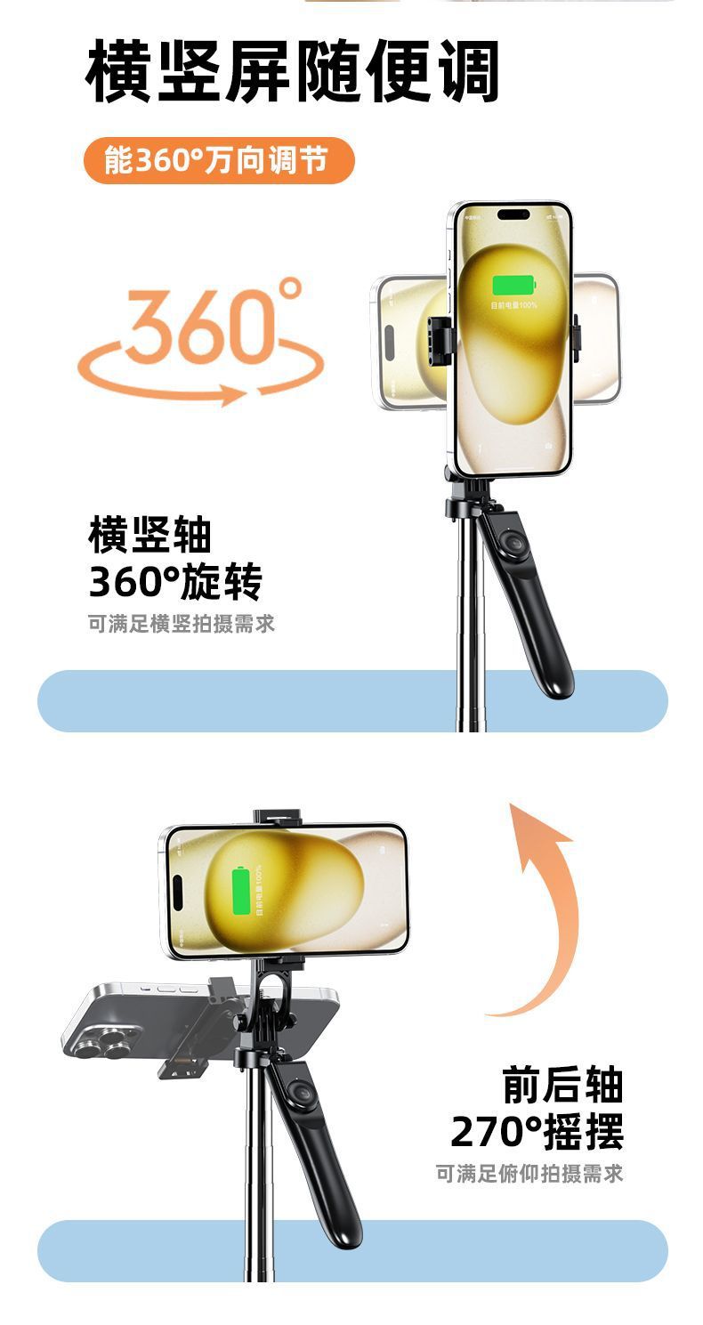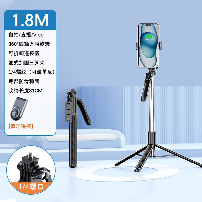2025 확장형 신형 1.8mZ18 휴대폰 블루투스 셀카봉(안정적인 손잡이 360 포함) ° 회전식 휴대폰 홀더