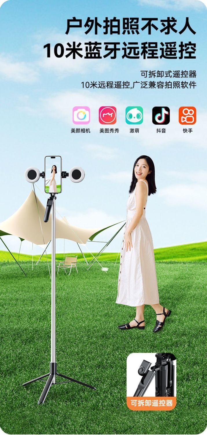 • Z18-단일 조명-흰색 [1.8m + 안정적인 촬영 핸들 + 배터리 리모콘 + 대형 원형 조명 1개]