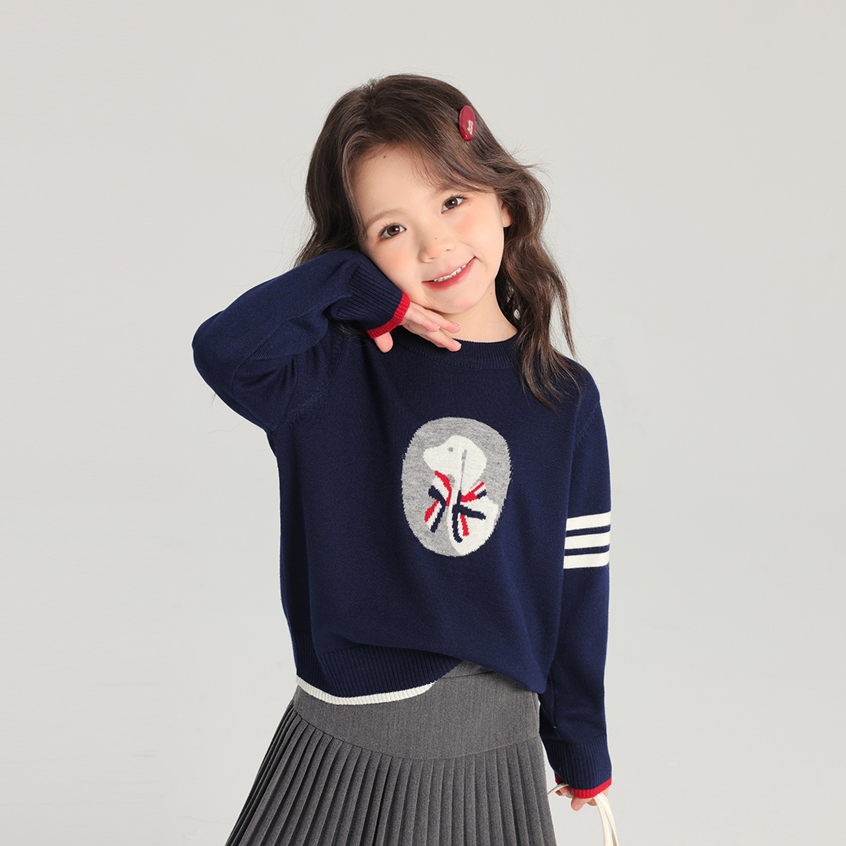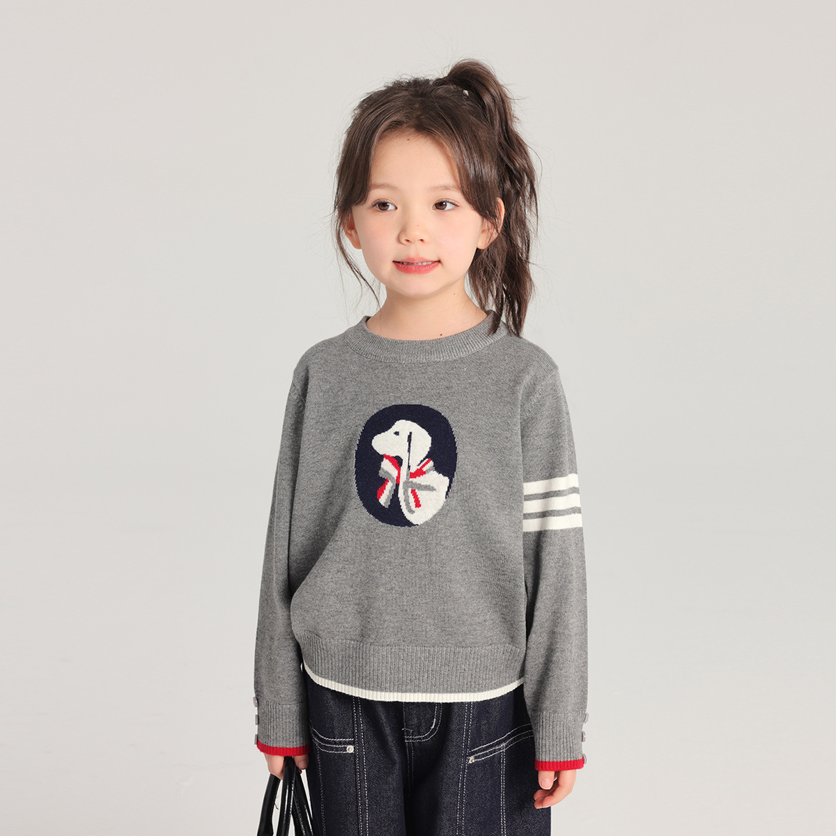 Momojia 소녀 스웨터 2025 새로운 스타일 아기 소녀 라운드 넥 만화 탑 대학 스타일 패션 니트 강아지 스웨터