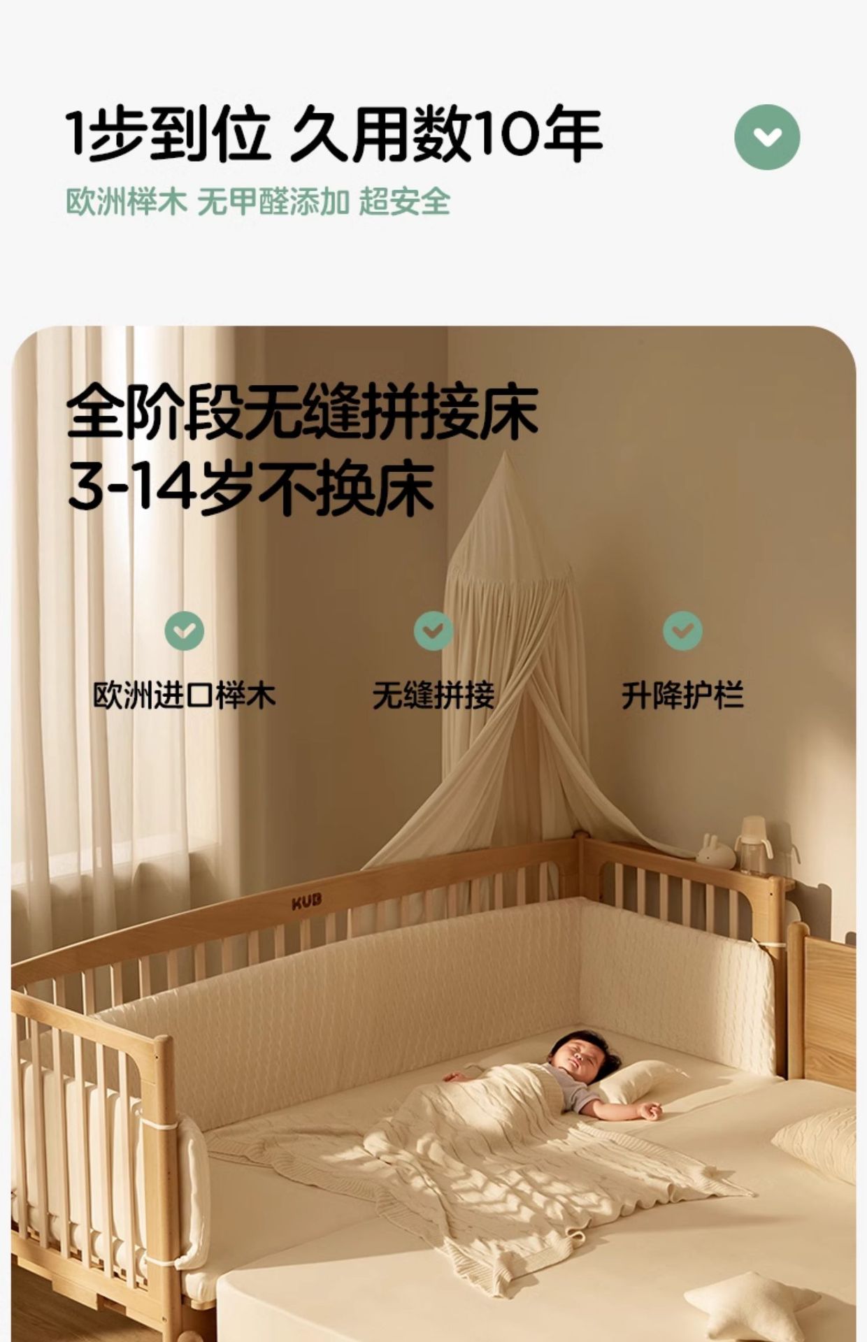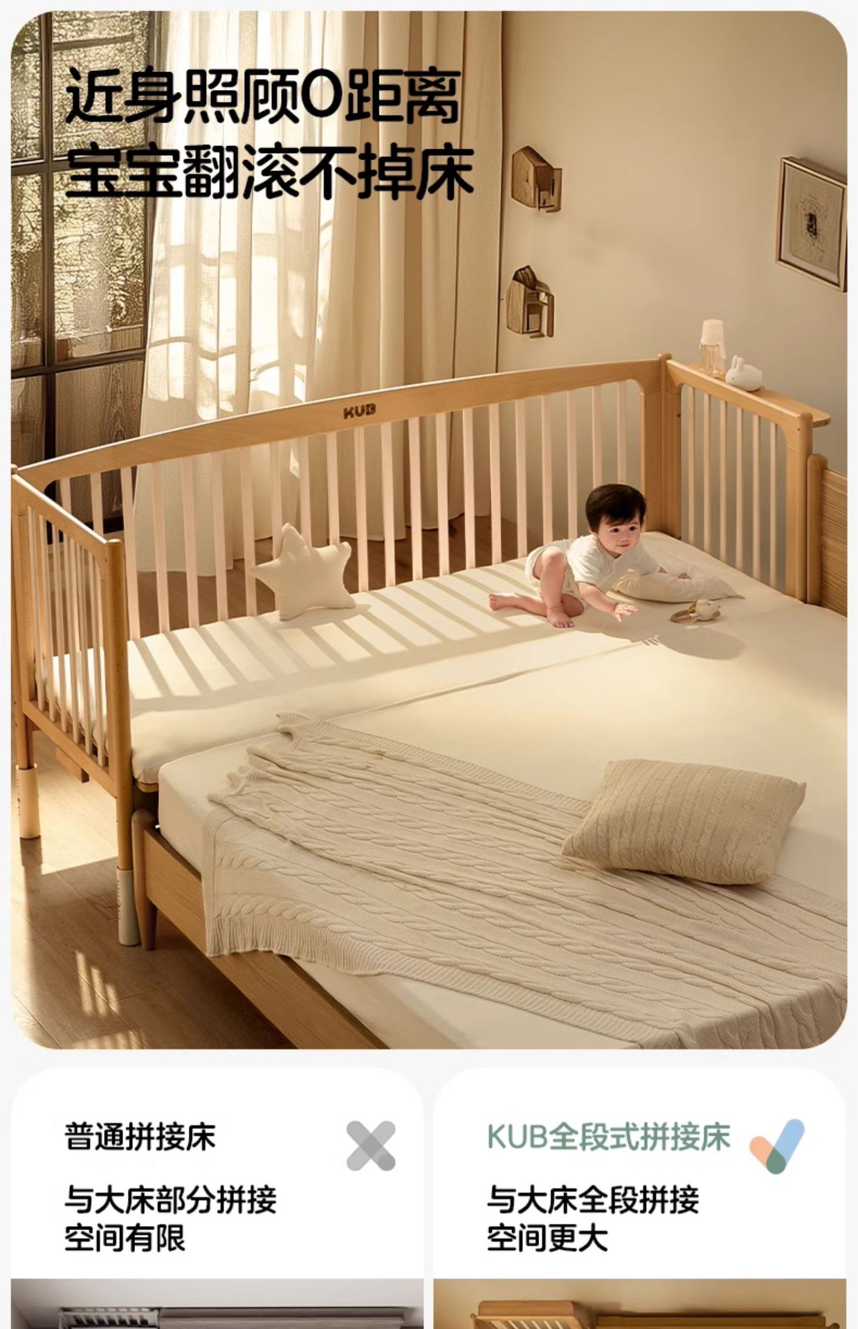 KUB 베이비 접합 침대 어린이 확장 침대 옆 침대 원활하게 대형 침대에 연결 단단한 나무 아기 어린이 침대스토어 가기