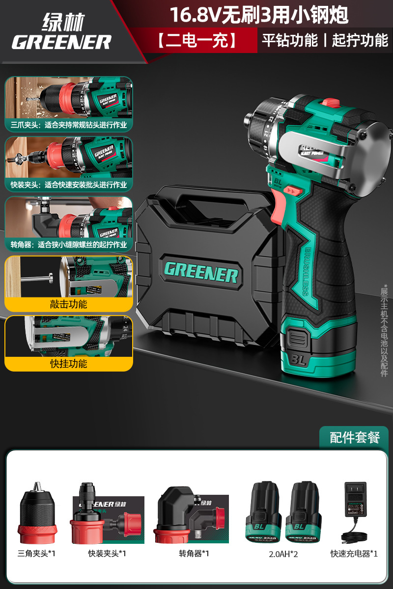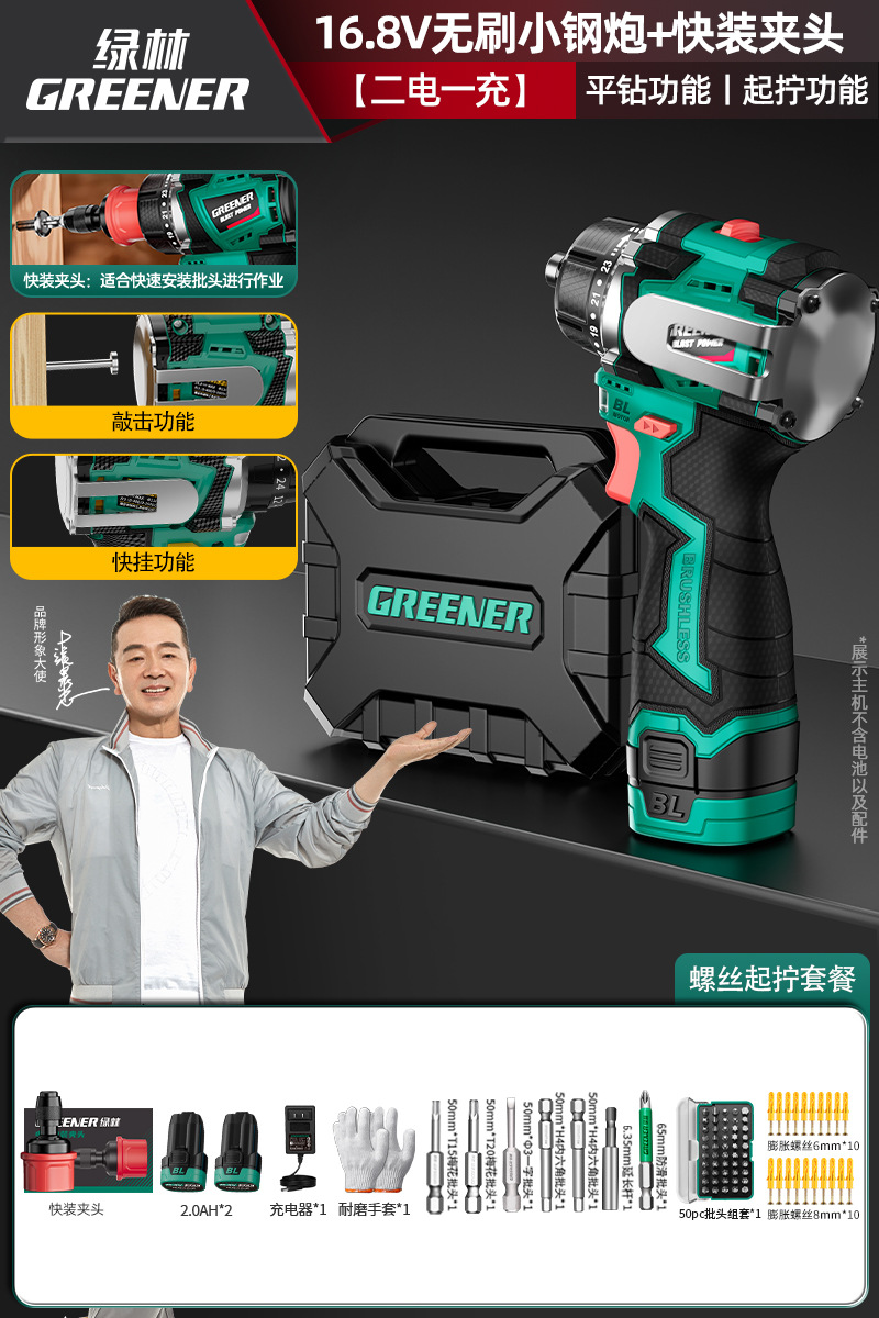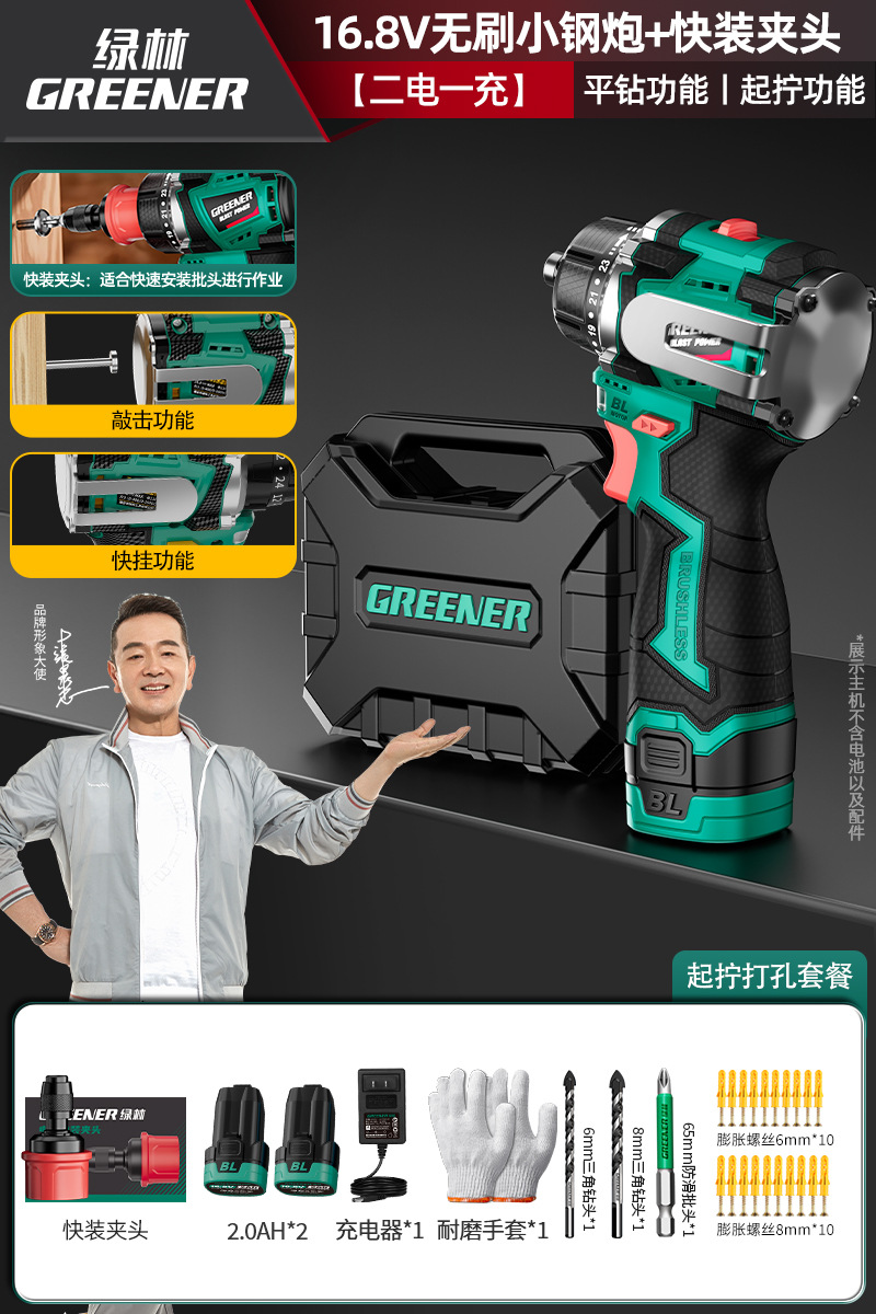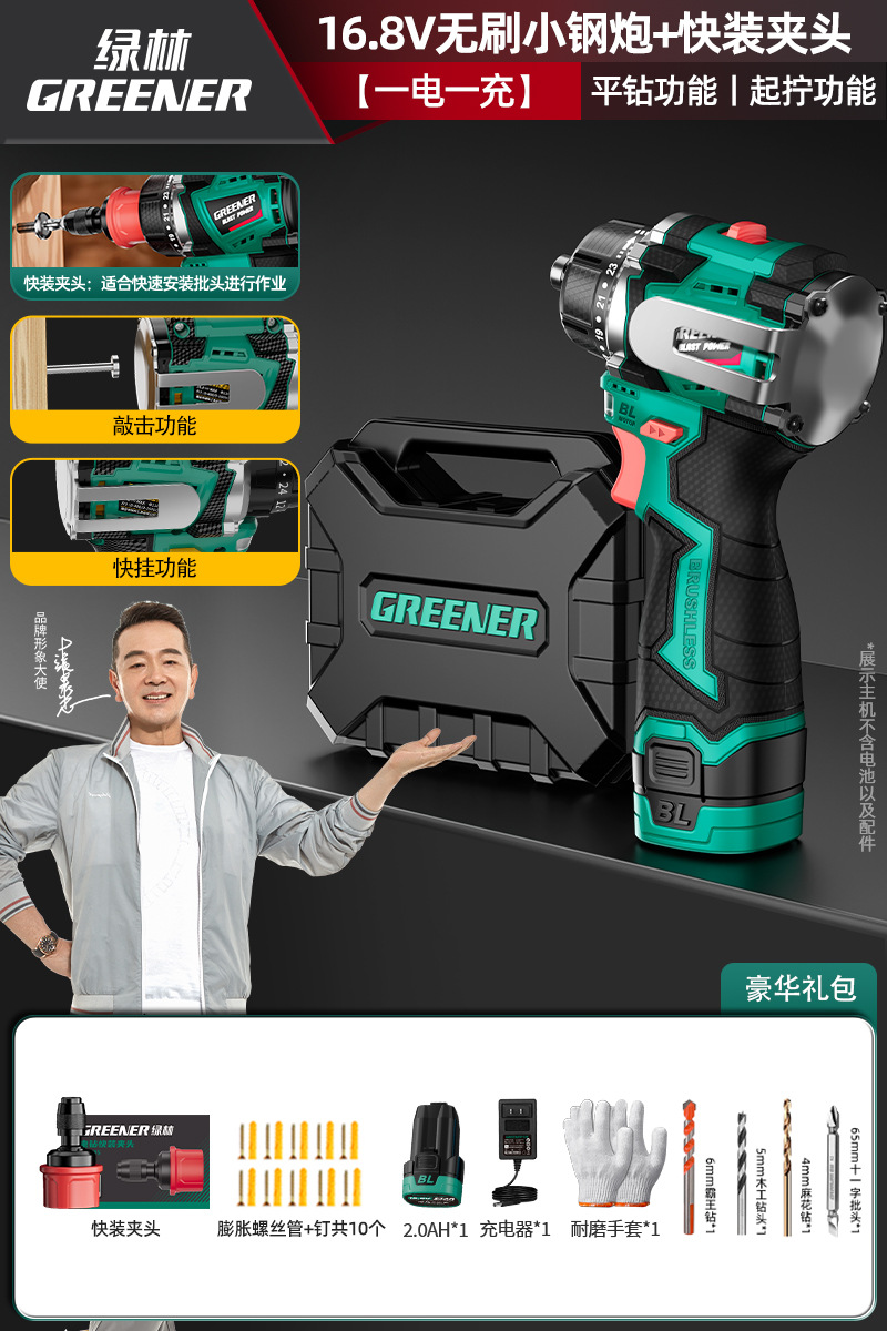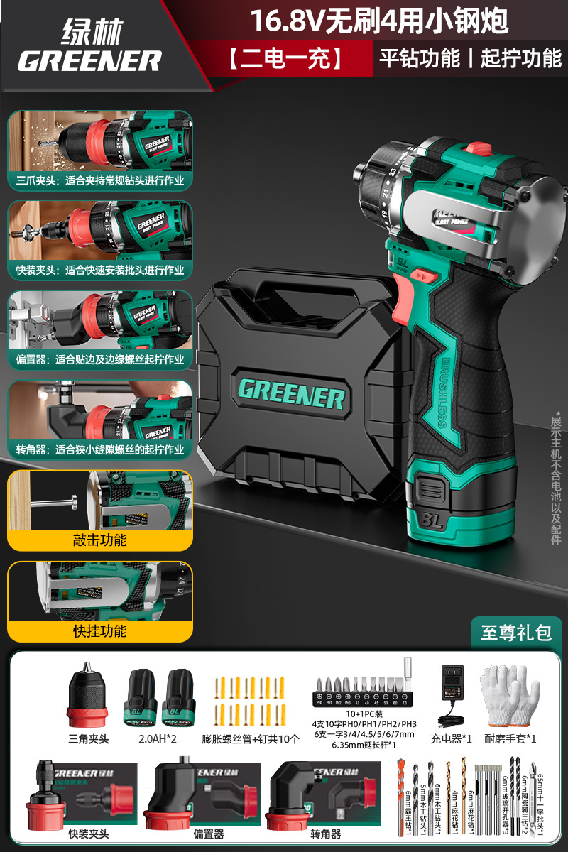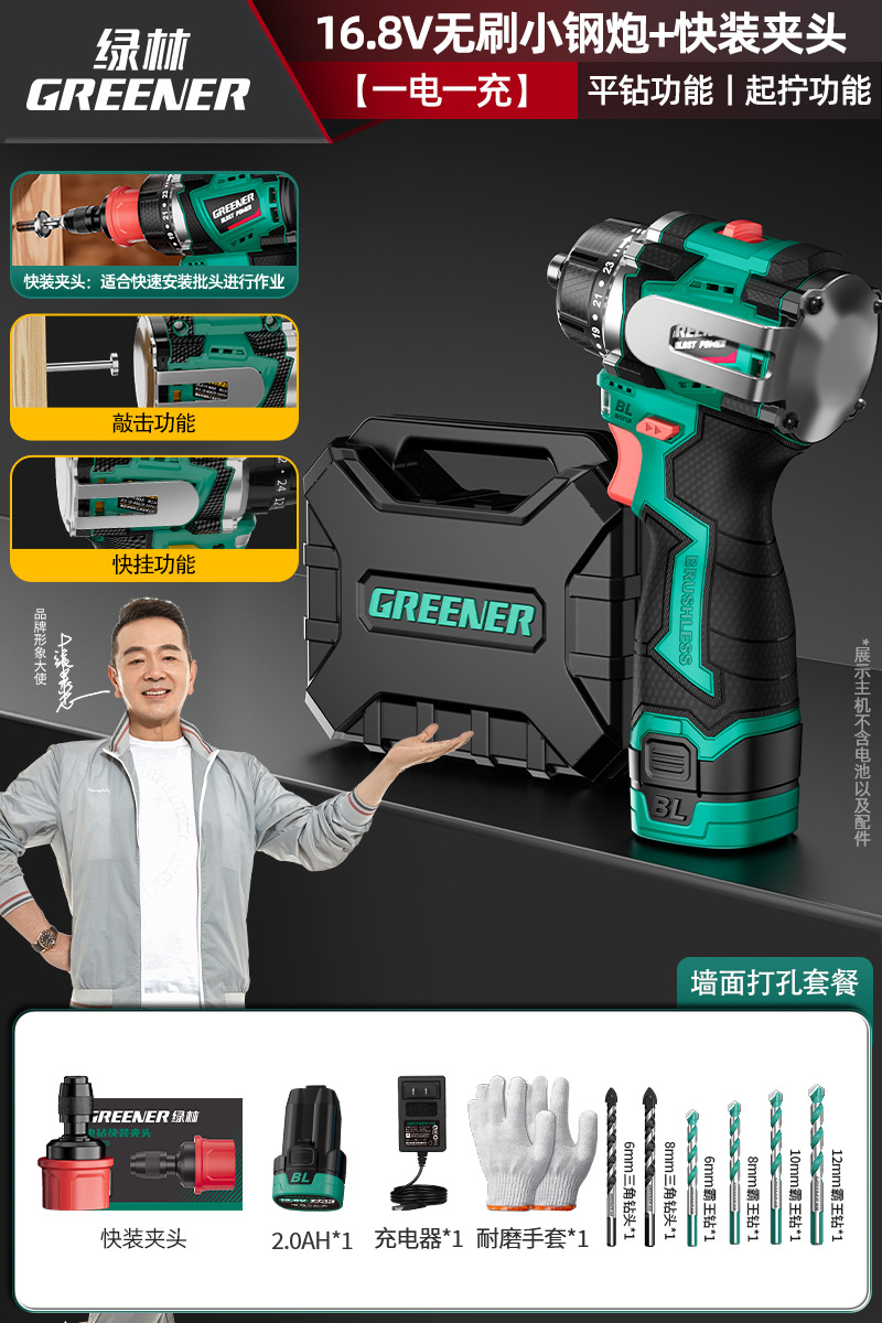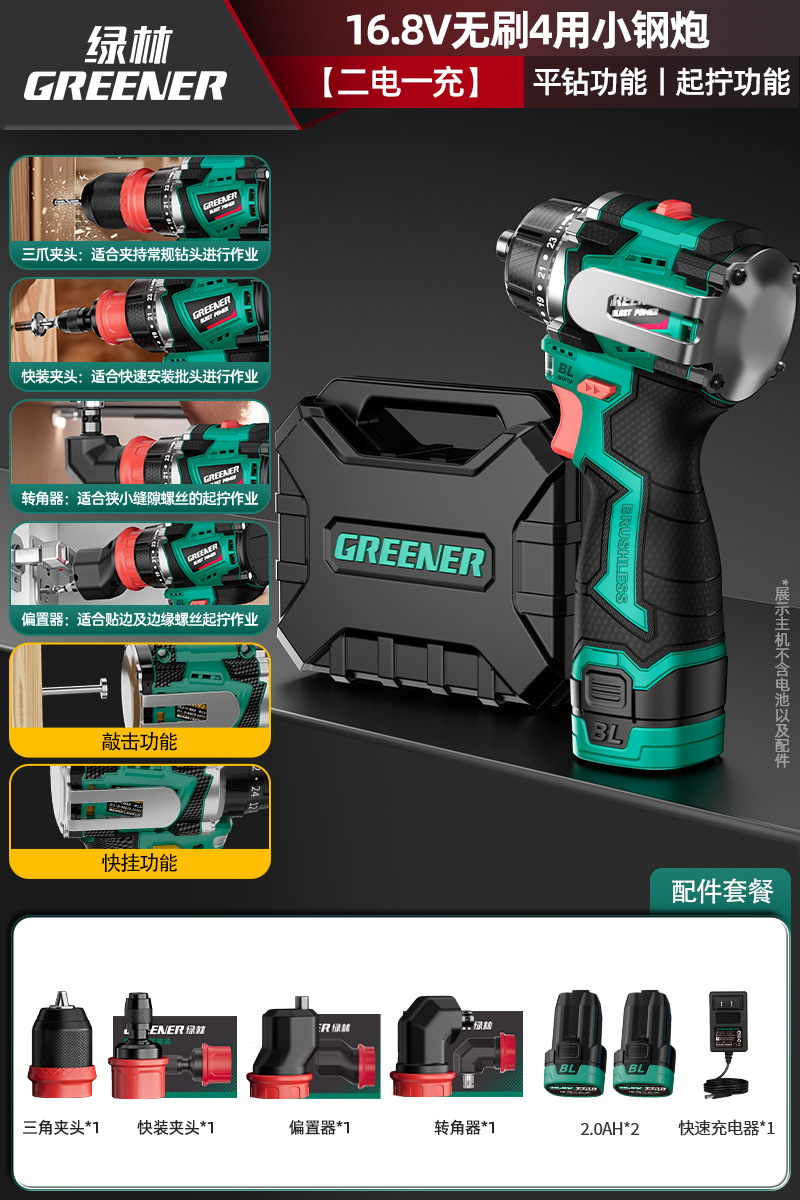 Green Forest 4-Use 소형 강철 총 4헤드 전기 드릴 가정용 브러시리스 리튬 전기 권총 드릴 다기능 벽 파기 퀵 체인지 척스토어 가기