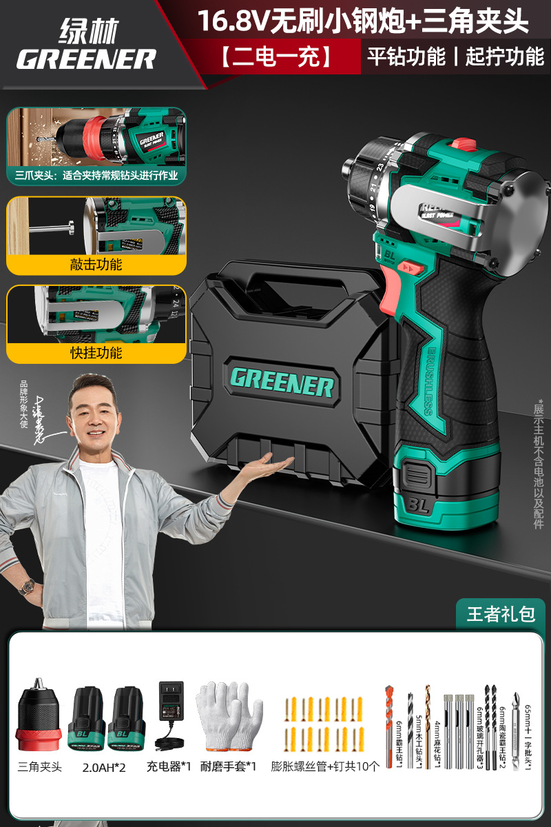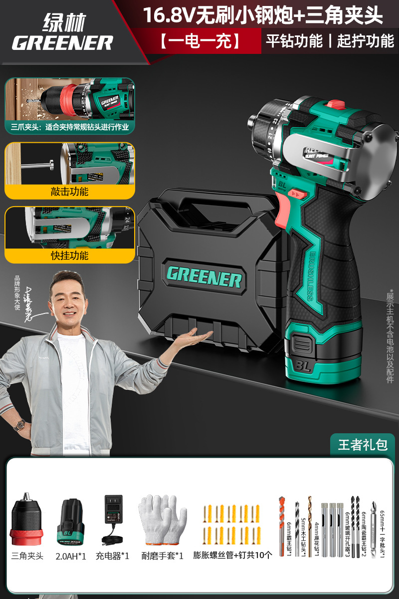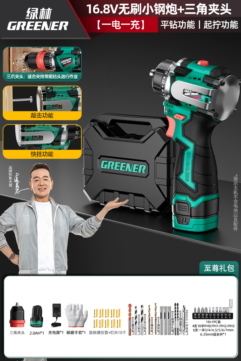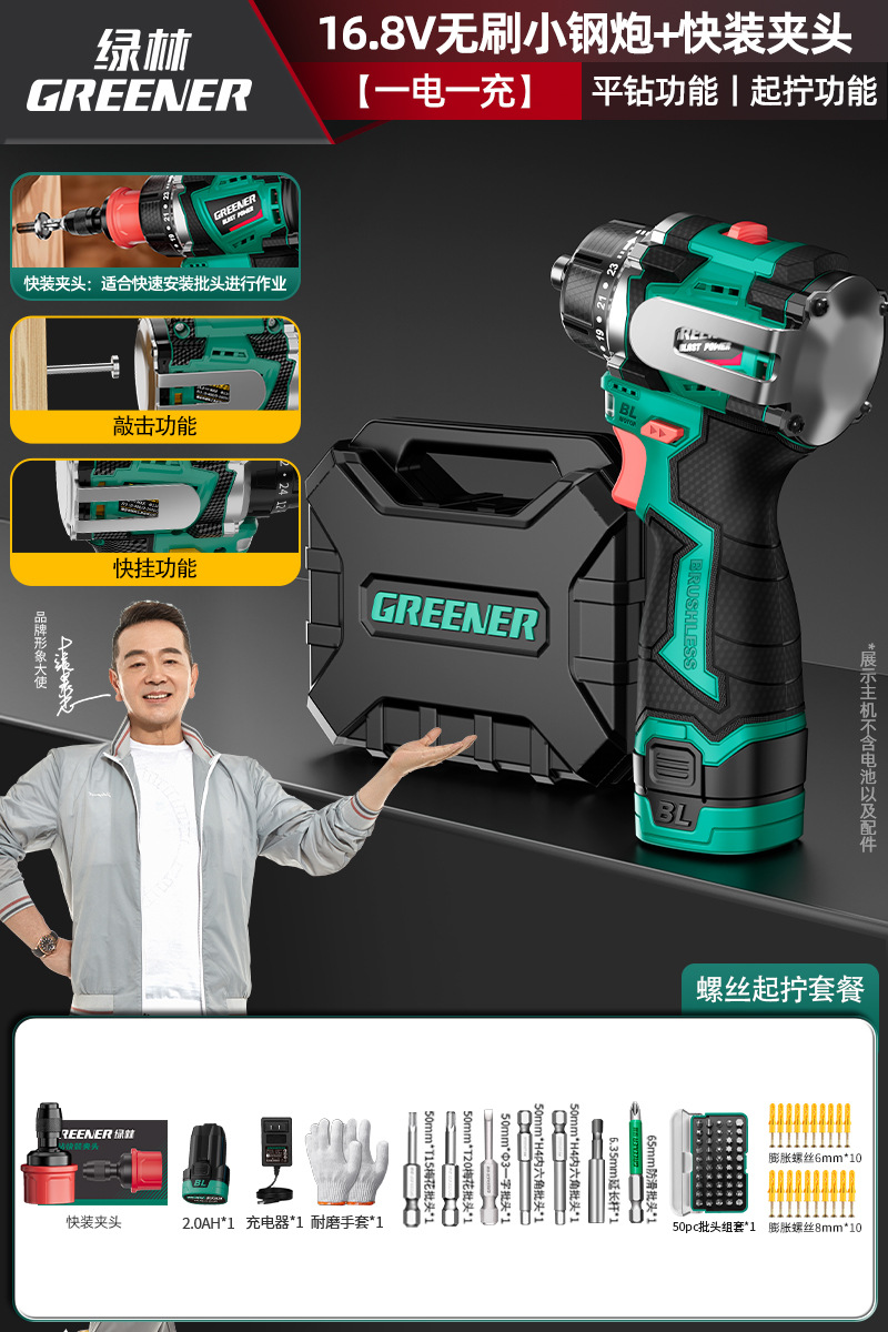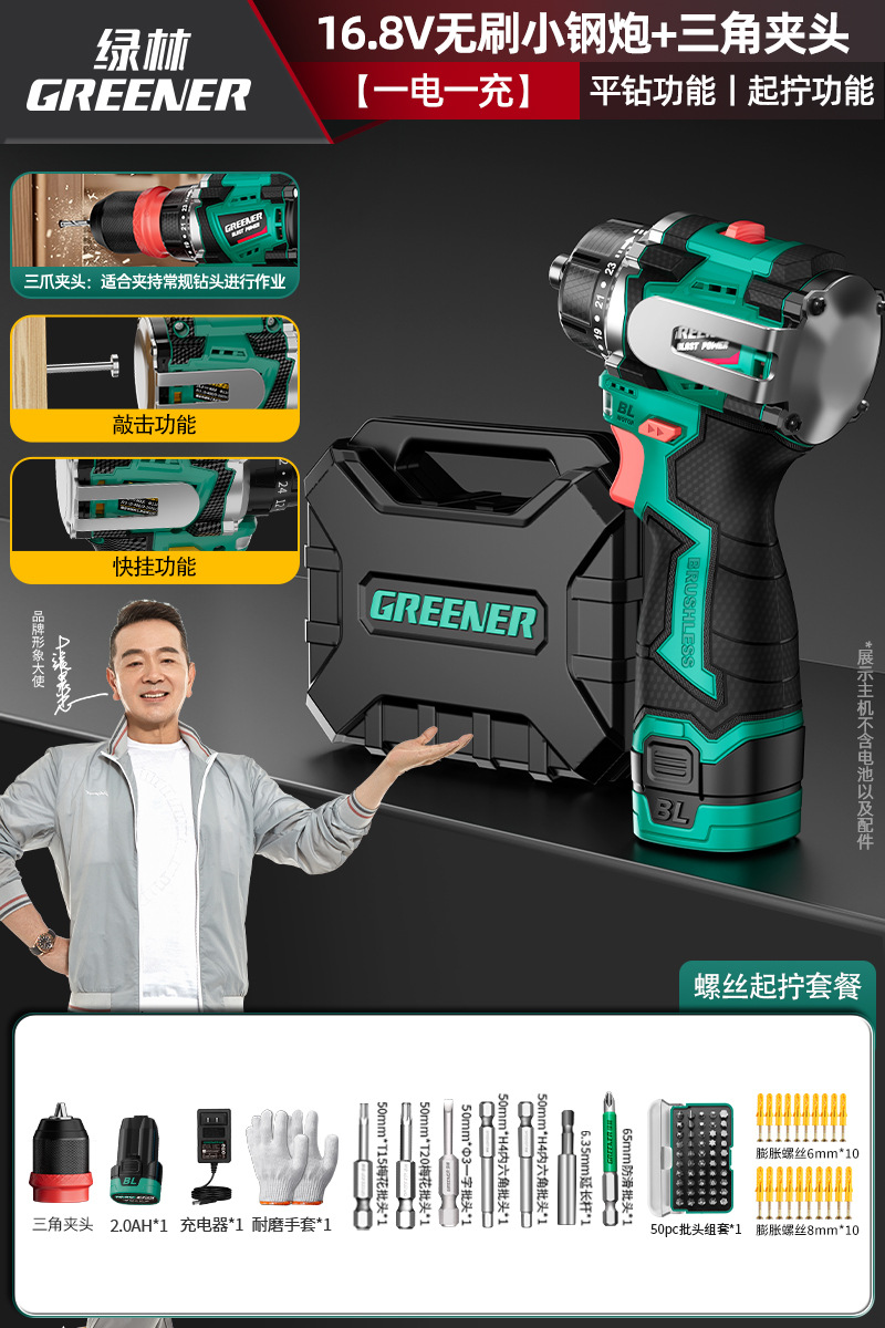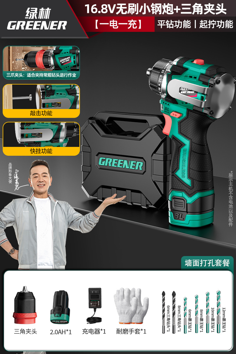 Green Forest 4-Use 소형 강철 총 4헤드 전기 드릴 가정용 브러시리스 리튬 전기 권총 드릴 다기능 벽 파기 퀵 체인지 척스토어 가기