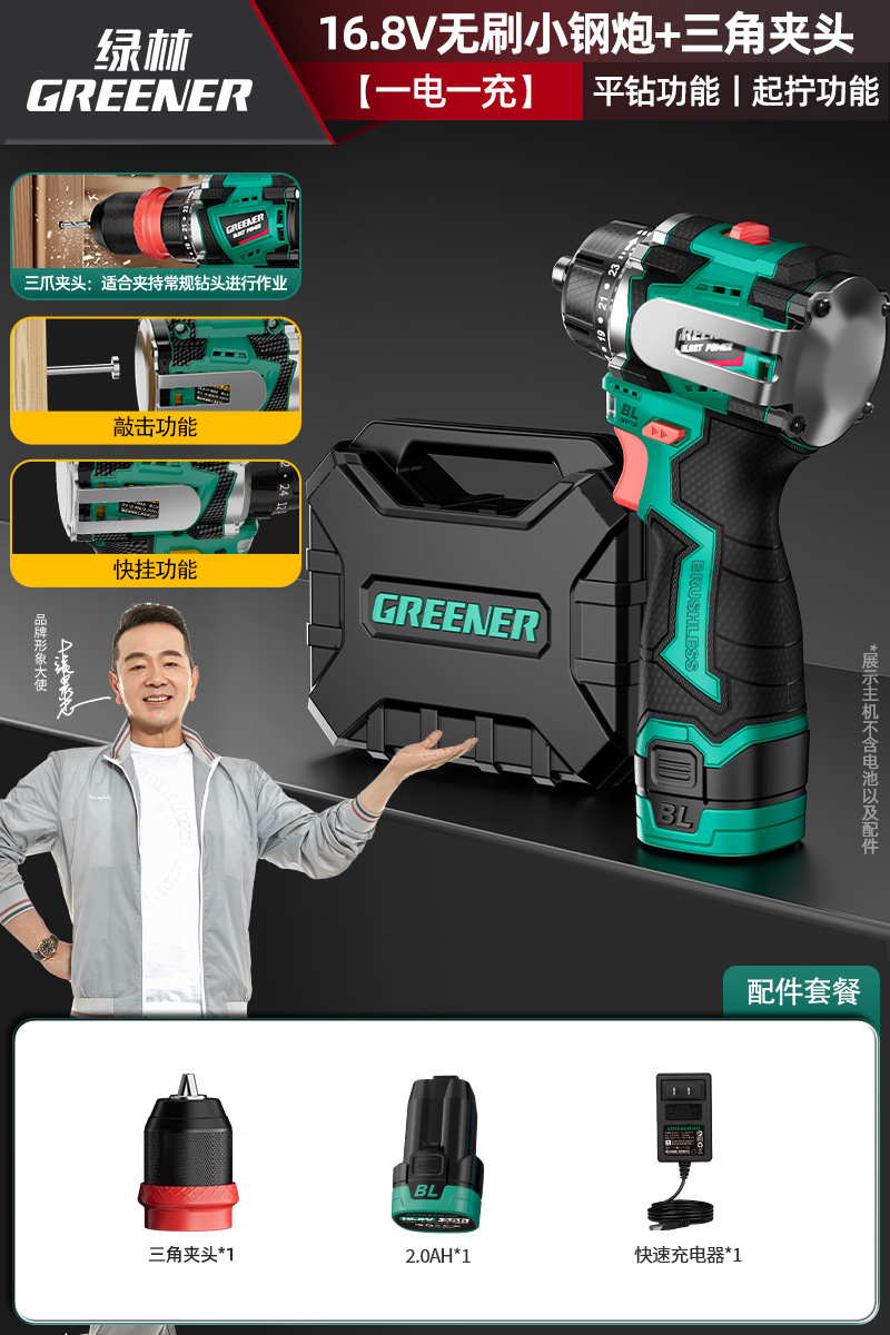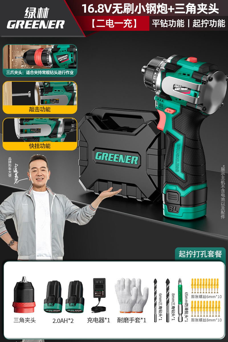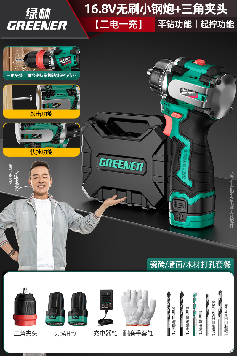 Green Forest 4-Use 소형 강철 총 4헤드 전기 드릴 가정용 브러시리스 리튬 전기 권총 드릴 다기능 벽 파기 퀵 체인지 척