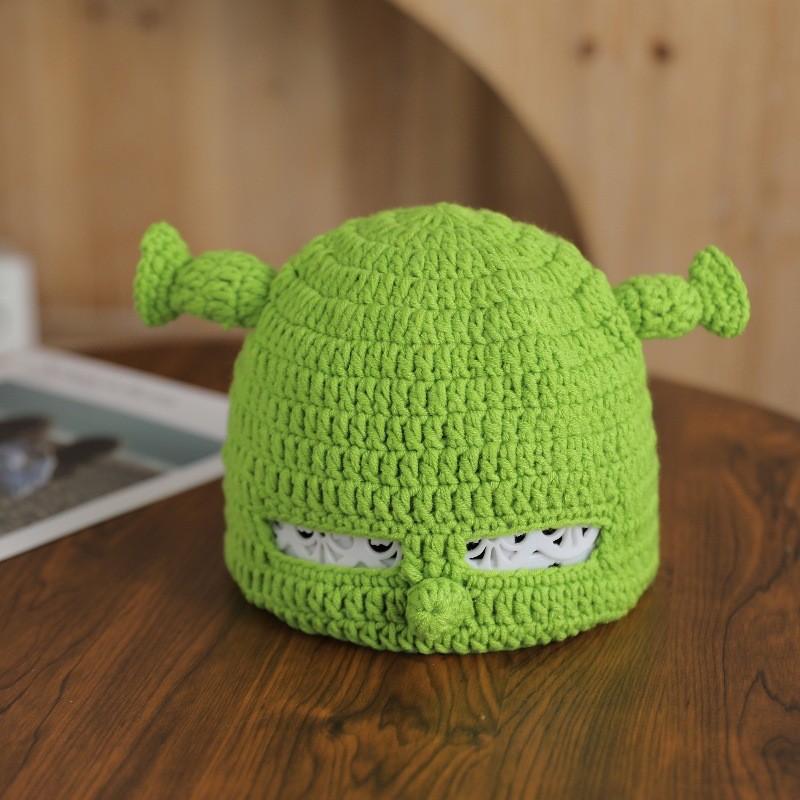 슈렉 니트 모자, 매우 귀엽고, 젊고, 친구들과 같은 스타일의 모직 모자, 녹색 모자, 트렌디한 핫 아이템