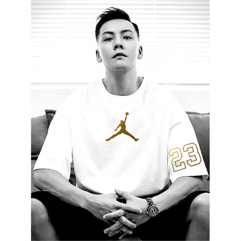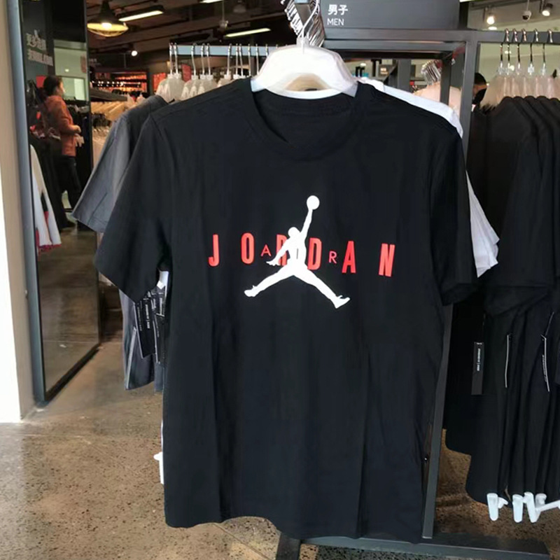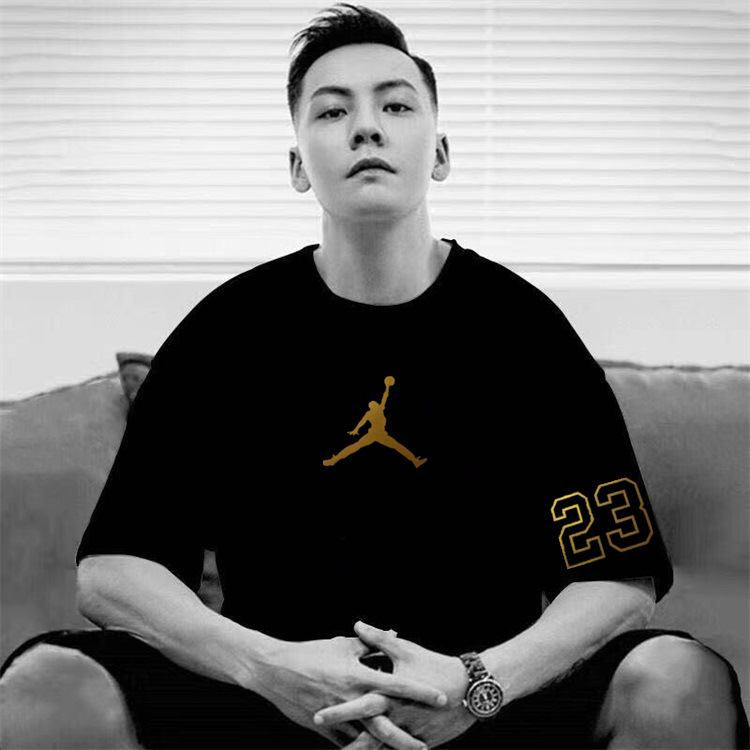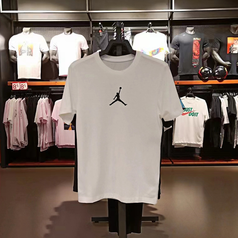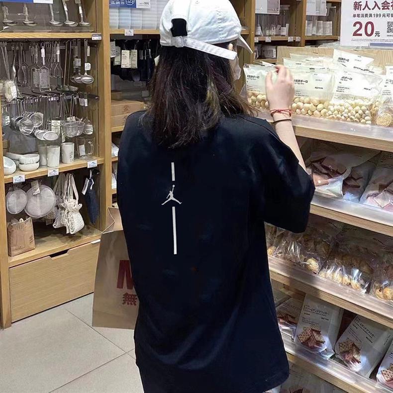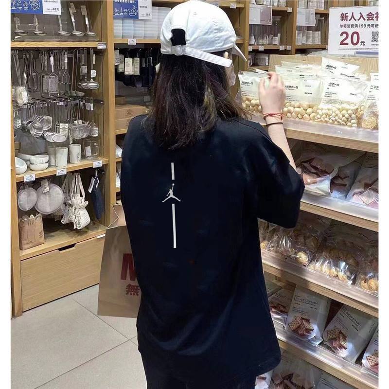 2025 여름 신작 AJ 반팔 티셔츠 남성용 핫 스탬핑 플라잉 맨 화이트 커플 루즈 퓨어 코튼 헤비 베이스 트렌드스토어 가기