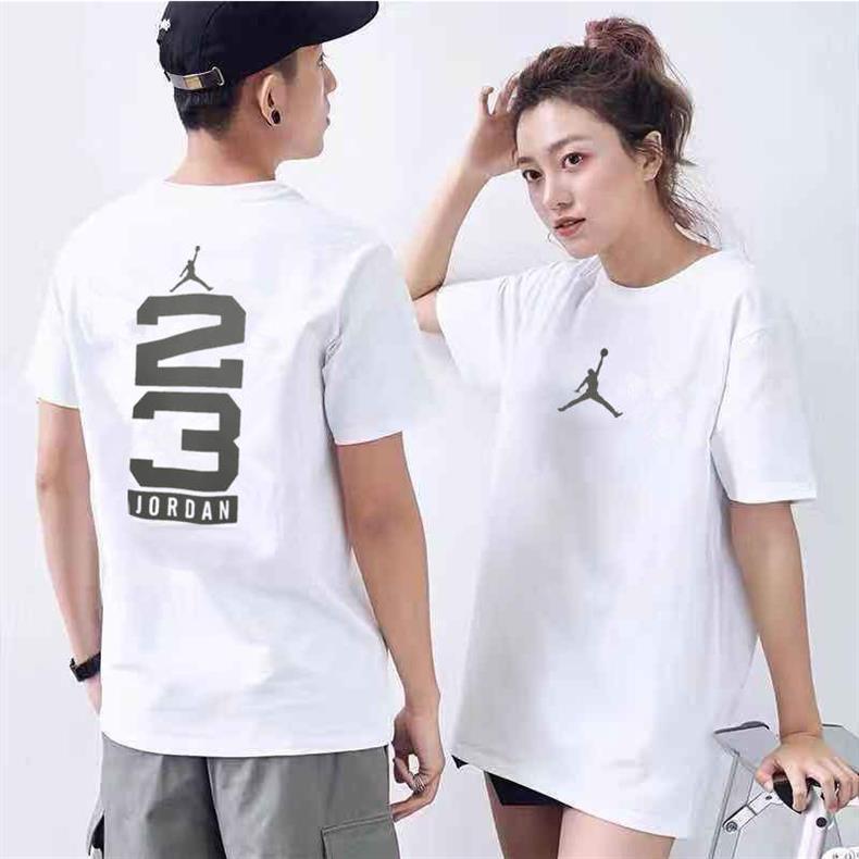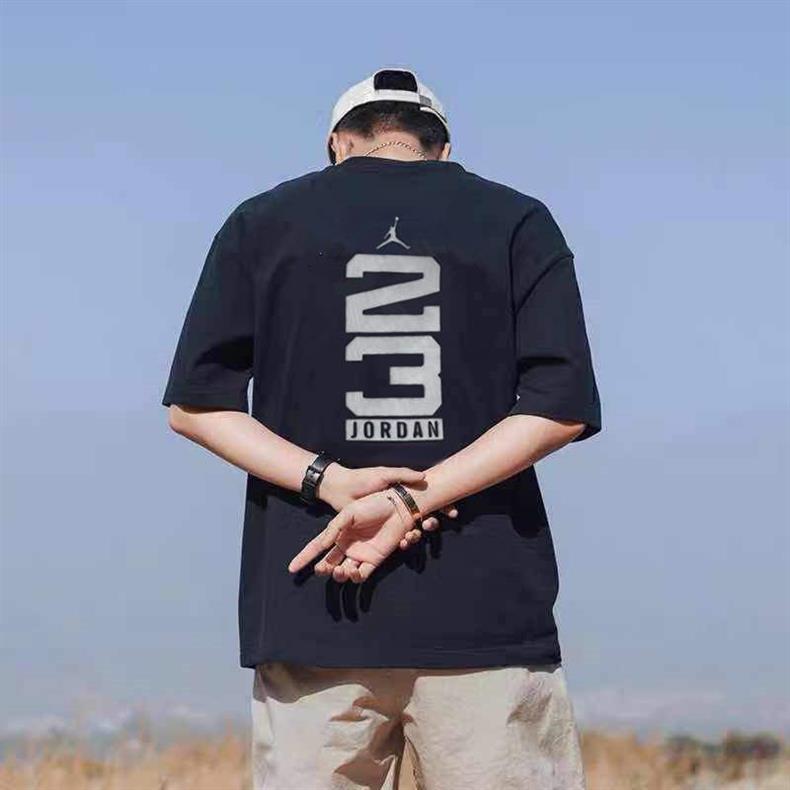 2025 여름 신작 AJ 반팔 티셔츠 남성용 핫 스탬핑 플라잉 맨 화이트 커플 루즈 퓨어 코튼 헤비 베이스 트렌드